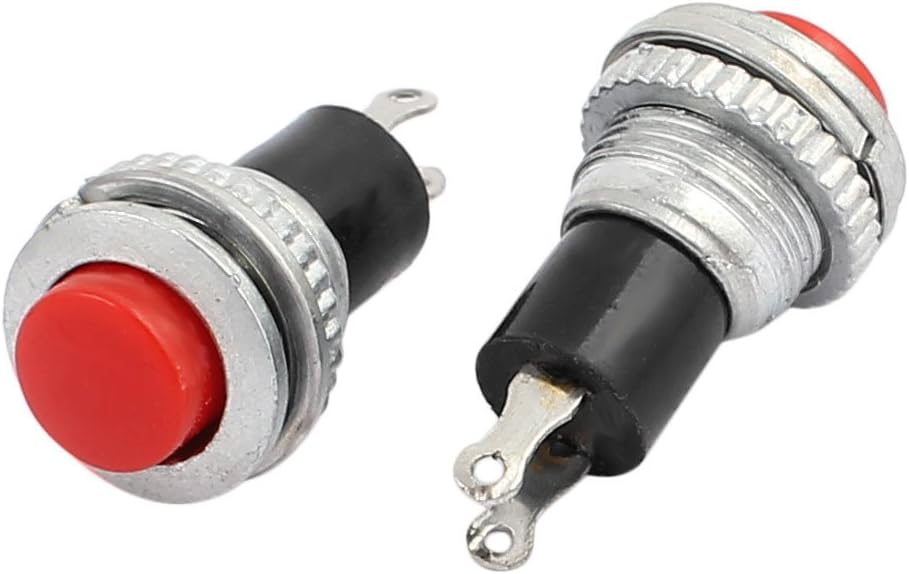 Pole and Throw: SPST; Tipo di Oysteration: Momentary; Dimensioni totali: 13 x 25mm / 0.47' 'x 0.67' '(D * L) Nome prodotto: Interruttore a pulsante; Paese di produzione: CINA; Materiale: metallo, plastica, parti elettriche Peso netto: 16 g; Contenuto della confezione: 5 pezzi x Interruttore a pulsante; Quantità terminale: 2 Tipo di montaggio: montaggio a incasso, dimensioni di montaggio: 10mm / 0,39' ' Colore principale: rosso, ner_o, batteria inclusa: no (RI75511826X33673945F)
