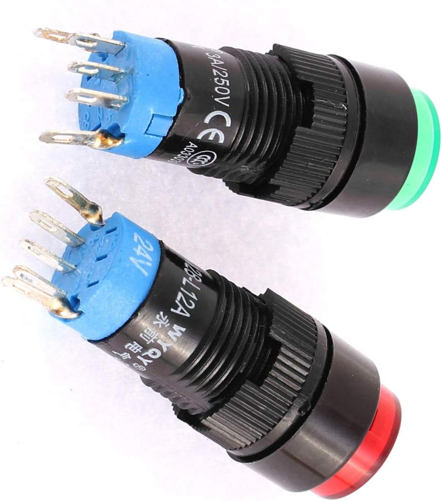 Pole and Throw: SPDT; Tipo di Oysteration: Momentary; Dimensioni totali: 32 x 14mm / 1.2' 'x 0.55' '(L * D); Nome prodotto: Push Button Switch Paese di produzione: CINA; Materiale: metallo, plastica; peso netto: 8 g; contenuto della confezione: 2 x interruttore a pulsante Quantità terminale: 5; Tipo di contatto: NA + NC; Potenza nominale: AC 250 V 3 A; Tipo di lampada: LED Tensione: DC24V; Colore LED: Arancione, Rosso; Materiale custodia 'interruttore: Plastica; Tipo di montaggio: Montaggio a incasso Dimensioni di montaggio: 12mm; Modello: LA128-L12A; Colore principale: rosso, ner_o, tono argento (SJ11319606Y95427020G)