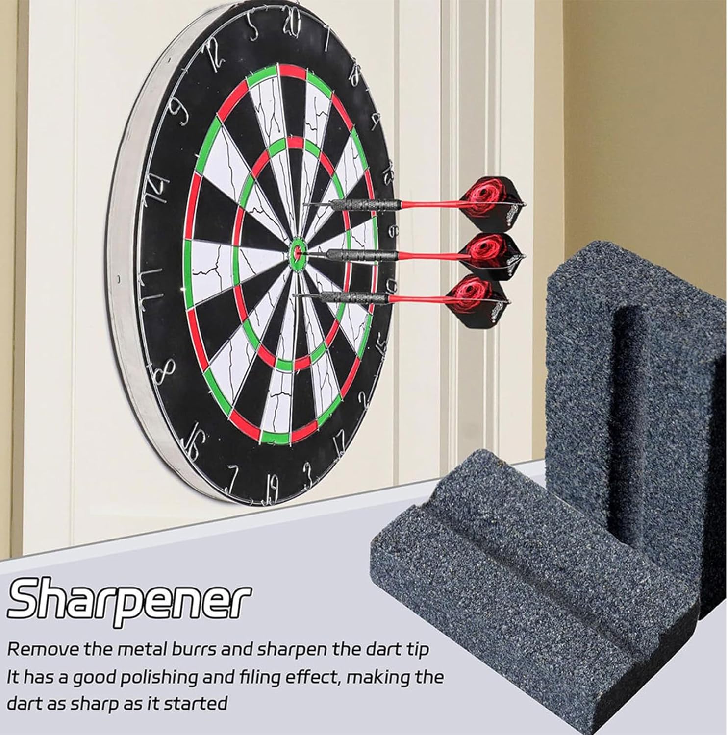 Il nostro affilapietra è uno strumento utile che garantisce un lancio liscio ogni volta. per qualsiasi giocatore di freccette Il nostro temperamatite per freccette può scivolare facilmente in tasca o in borsa, facile da trasportare Il nostro temperamatite per freccette garantisce una rimozione efficiente dell'usura della punta o delle punte, garantendo prestazioni di lancio costanti Realizzato in arenaria, forte e durevole, non facile da danneggiare Inseriscilo nello slot a forma di V, ruota e goditi facilmente la manutenzione senza sacrificare le precisioni