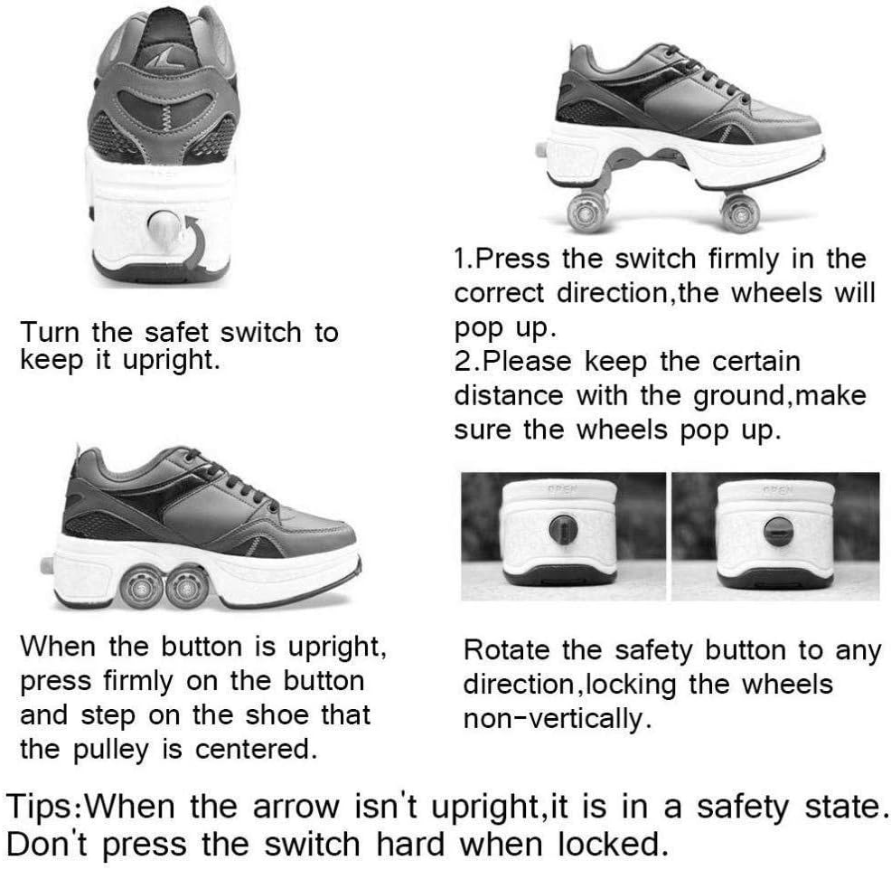 ★ Materiale della scarpa: i pattini a rotelle regolabili multifunzionali sono realizzati in microfibra, la suola è in gomma e le ruote sono in PU. Non prestiamo attenzione solo alla capacità di carico delle ruote, ma anche alla selezione del materiale della tomaia per produrre pattini a rotelle di alta qualità. ★ Protezione del piede: i pattini a rotelle multifunzione regolabili utilizzano lacci tradizionali. Come le scarpe da ginnastica, puoi regolare i lacci per un'esperienza d'uso più confortevole. Tuttavia, ti consigliamo di allacciare i lacci delle scarpe quando pattini per garantire la tua sicurezza. ★ Test meccanico: secondo il design meccanico, il supporto del tallone fornisce una forza di ammortizzazione aggiuntiva e un elevato fattore di sicurezza, molto adatto per i principianti di pattinaggio. ★ Pattini a rotelle due in uno: i pattini a rotelle multifunzionali regolabili sono diversi dai pattini a rotelle tradizionali sul mercato. Le ruote nascoste possono essere come normali scarpe sportive dopo essersi nascoste, quindi puoi regolare i pattini a rotelle, i pattini non solo possono pattinare ma anche correre. ★ Regalo speciale: il roller è anche uno degli sport ricreativi più tradizionali, nei fine settimana puoi giocare con i tuoi amici o bambini o regalarli a Natale.