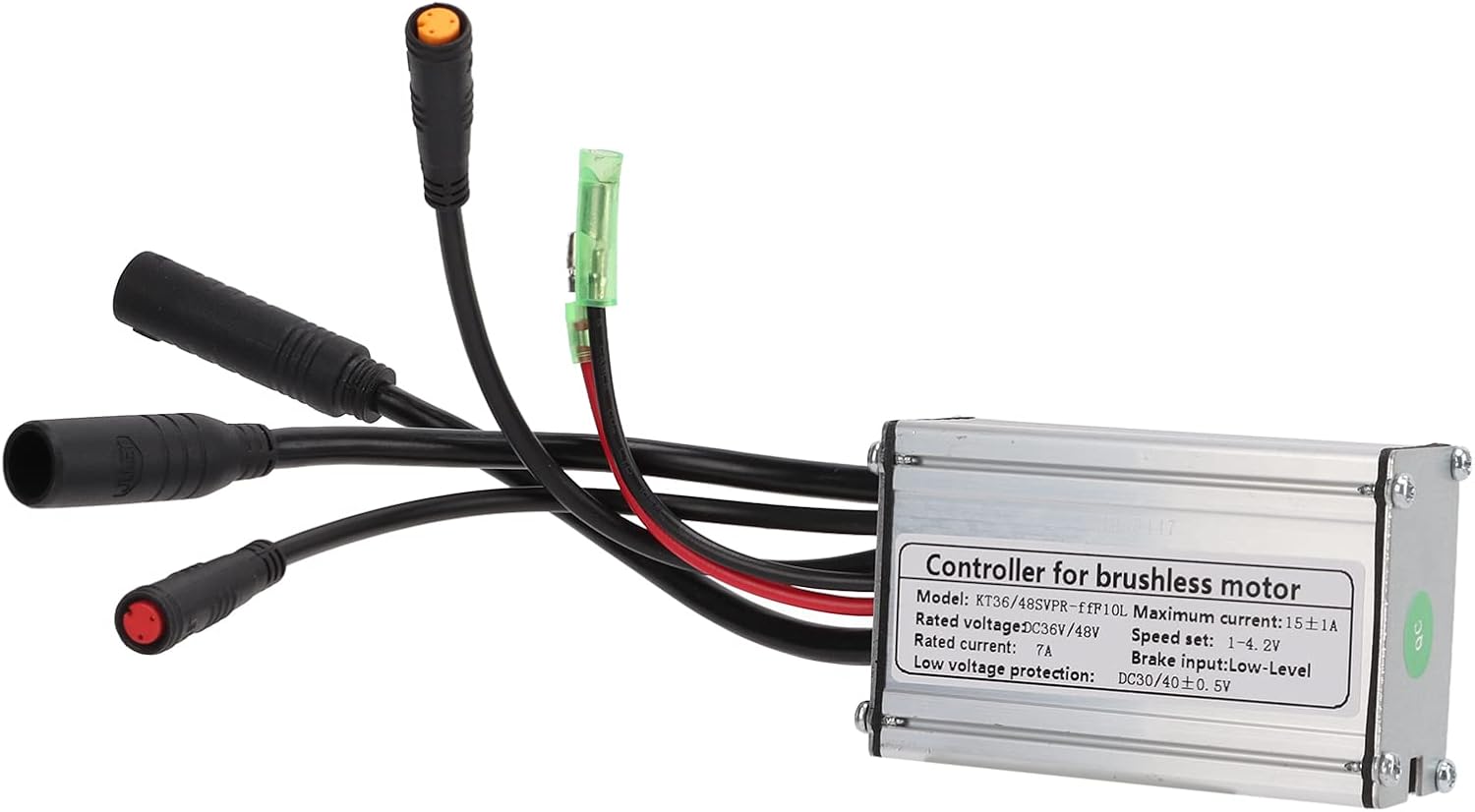 Controller a onda sinusoidale da 36 V 250 W: il controller del motore brushless può fornire velocità stabile, frenata sensibile e controllo del cambio di direzione per rendere la guida più fluida e sicura. Corrente e tensione: la corrente massima è 15 ± 1 A, la tensione nominale è 36 V/48 V CC, la regolazione della velocità è 1-4,2 V, la corrente nominale è 7 A, la protezione di bassa tensione è 30/40 ± 0,5 V CC. Funzione impermeabile: la funzione impermeabile garantisce la massima durata in tutte le condizioni atmosferiche, mentre i cavi resistenti e le interfacce impermeabili sono durevoli, garantendo un basso tasso di guasto per un uso a lungo termine. Buona dissipazione del calore: la custodia del controller è realizzata in metallo di alta qualità con design scanalato, buona funzione di dissipazione del calore, può proteggere il circuito interno ed evitare il sovraccarico termico. Motore applicabile: il controller del motore brushless è facile da installare e utilizzare, dotato di istruzioni di identificazione del cablaggio, solitamente adatto per motori brushless da 250 W.