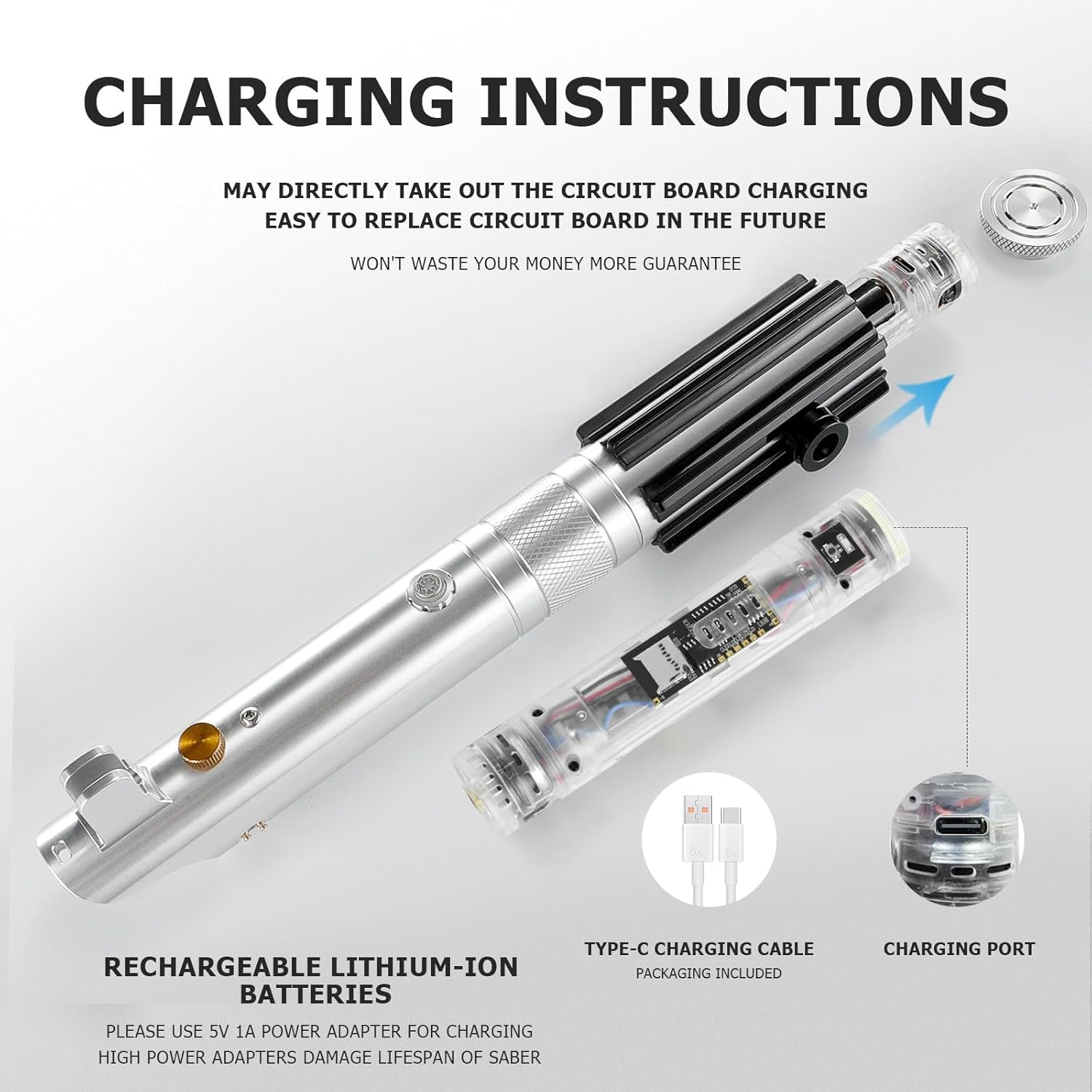 Spada laser per il controllo delle app: la spada laser duellante BSTSABER adotta un'app di supporto tecnologica avanzata per controllare la spada laser. Attraverso l'app è possibile controllare lo stato della batteria/ora e regolare liberamente tutto, come cambiare volume/muto, effetto sonoro, effetto luce, colore della lama, luminosità della lama, sensibilità all'oscillazione liscia, flash on clash, effetto blocco, effetto di trascinamento della punta, ecc. Esplora più divertimento con la nostra spada leggera. 【Nuove funzioni di sciabola luminosa】Questa nuova spada laser aggiornata ha 16 effetti sonori, 3 effetti di luce (costante, impulso, instabile), 3 modalità di lama, 3 impostazioni di volume (alto, basso, muto), 16 cambiamenti di colore e infinite variazioni di colore, flash on clash, controllo del movimento, oscillazione fluida, duello pesante, effetto di blocco, effetto di trascinamento della punta, effetto anticipo, modalità blocco, lama super luminosa, ecc. (La confezione contiene un manuale di istruzioni per l'uso) Metal Light Saber per adulti ragazzi Cosplay regali. Design strutturale accurato: il design strutturale unico garantisce la qualità della spada laser e la struttura interna dei componenti elettronici può essere facilmente rimossa (è possibile vedere chiaramente attraverso la navigazione nelle immagini). Se la tua spada laser ha problemi in futuro, può essere facilmente riparata sostituendo i componenti elettronici, in modo da non preoccuparti del tuo acquisto e non sprecherà i tuoi soldi, fornisce una garanzia post-vendita più sicura (più accessori possono essere acquistati per la sostituzione nel nostro negozio). Istruzioni di ricarica e lama robusta: svitare la parte posteriore della spada laser e vedere direttamente la porta di ricarica, è anche possibile estrarre la batteria per caricare. Si consiglia di utilizzare il caricabatterie 5V1A per la ricarica, perché il caricabatterie ad alta potenza può danneggiare il circuito stampato e ridurre la durata della spada laser. Manico in metallo e lama robusta, supporta duelli pesanti, lama super luminosa e effetto sonoro di alta qualità super sensibile. 【Miglior regalo e servizio di garanzia】La sciabola leggera alla moda di alta qualità è il miglior regalo per compleanni o festival, appassionati di film adulti e ragazzi. Garanzia del marchio BSTSABER per fornire 12 mesi di garanzia e un servizio post-vendita completo, fornire aiuto professionale o guida in tempo.