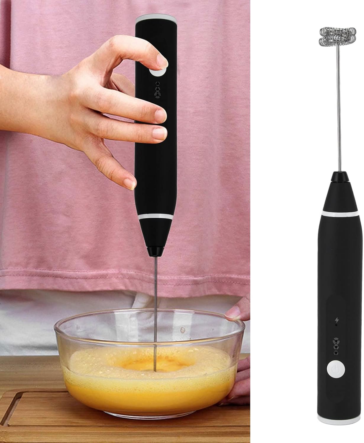 [Materiale premium] Realizzato in robusto acciaio inossidabile e materiale ABS, questo agitatore elettrico garantisce uso duraturo e una facile pulizia. [3 modalità di velocità] Goditi basso consumo energetico e una lunga durata della batteria con le tre modalità di velocità regolabili su questo mini mixer. [Utilizzo versatile] per creare cappuccini, caffè e frappè nel comfort di casa tua. [ ideale] Questo agitatore elettrico con sonda staccabile è il per amici e parenti che amano le bevande fatte in casa. [Sonda rimovibile] La sonda flessibile in acciaio inossidabile è facile da pulire e non danneggerà le pentole o le ciotole.