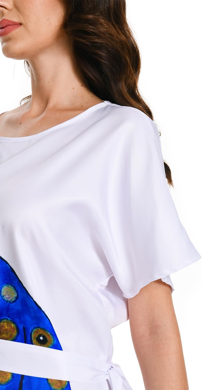 I don’t generally like fancy-dress but this was great. It was easy to wear, not cheap-looking and very Abba! I wore as a long top over white jeans, but could easily be worn as a short dress with white boots, so very versatile. I purchased a small as size 8, a tad roomy, but didn’t look big on me, just a lovely, easy fit. Lovely material with a hint of a shine, but not scratchy or uncomfortable. Washed & dried easily, no shrinkage or colour loss. Would highly recommend!
