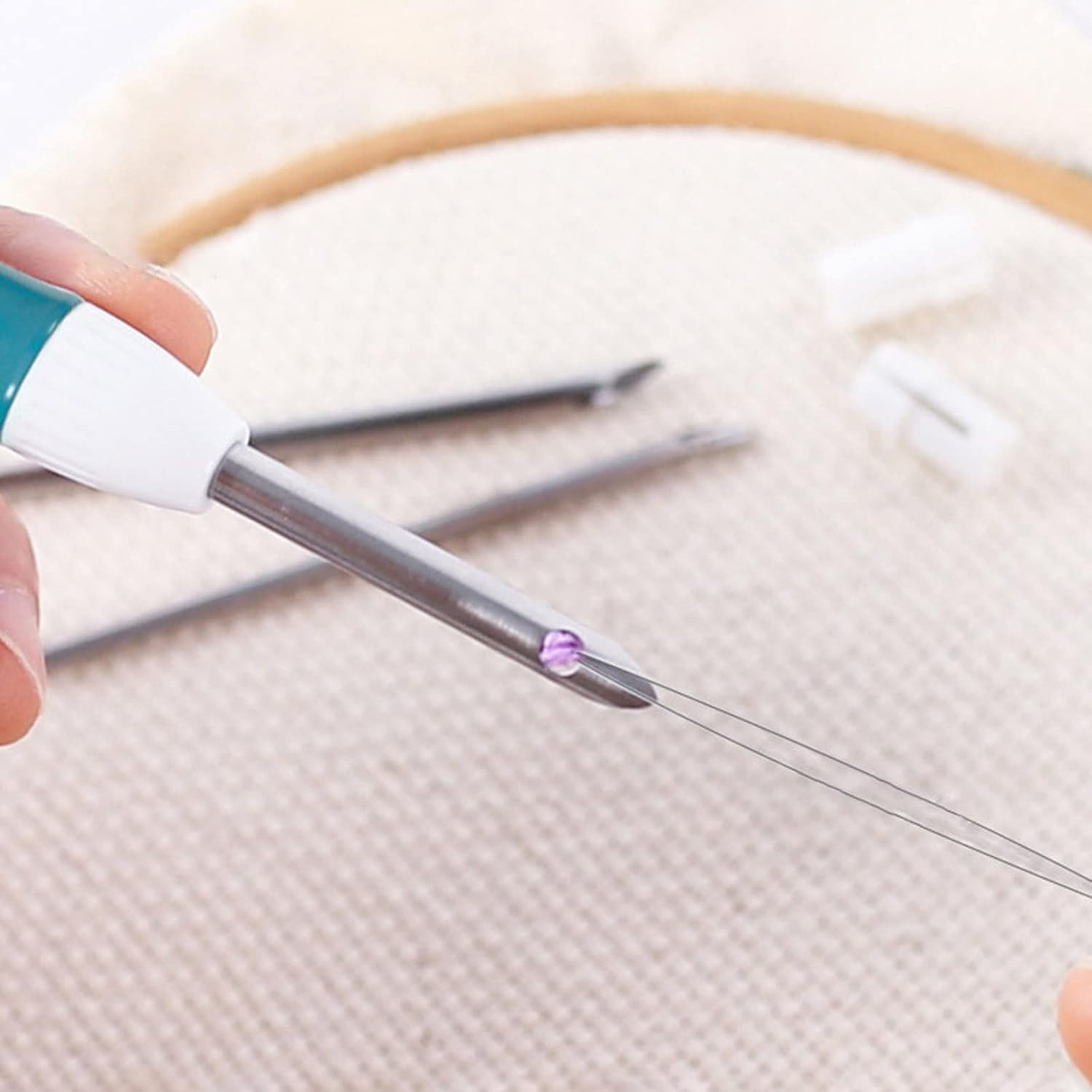Design ergonomico, il manico lungo ha una comoda forma sagomata. e acciaio inossidabile e resistenza all'usura. Questo è un mestiere semplice, unico e bello che può essere applicato a quasi i vestiti. La penna da ricamo può essere utilizzata per ricami con filo di lana spessa ed è piacevole, comoda per un uso corretto e per durare per anni. È un ottimo per divertirsi, nel processo di ricamo, ti rilasserai dal lavoro pesante.
