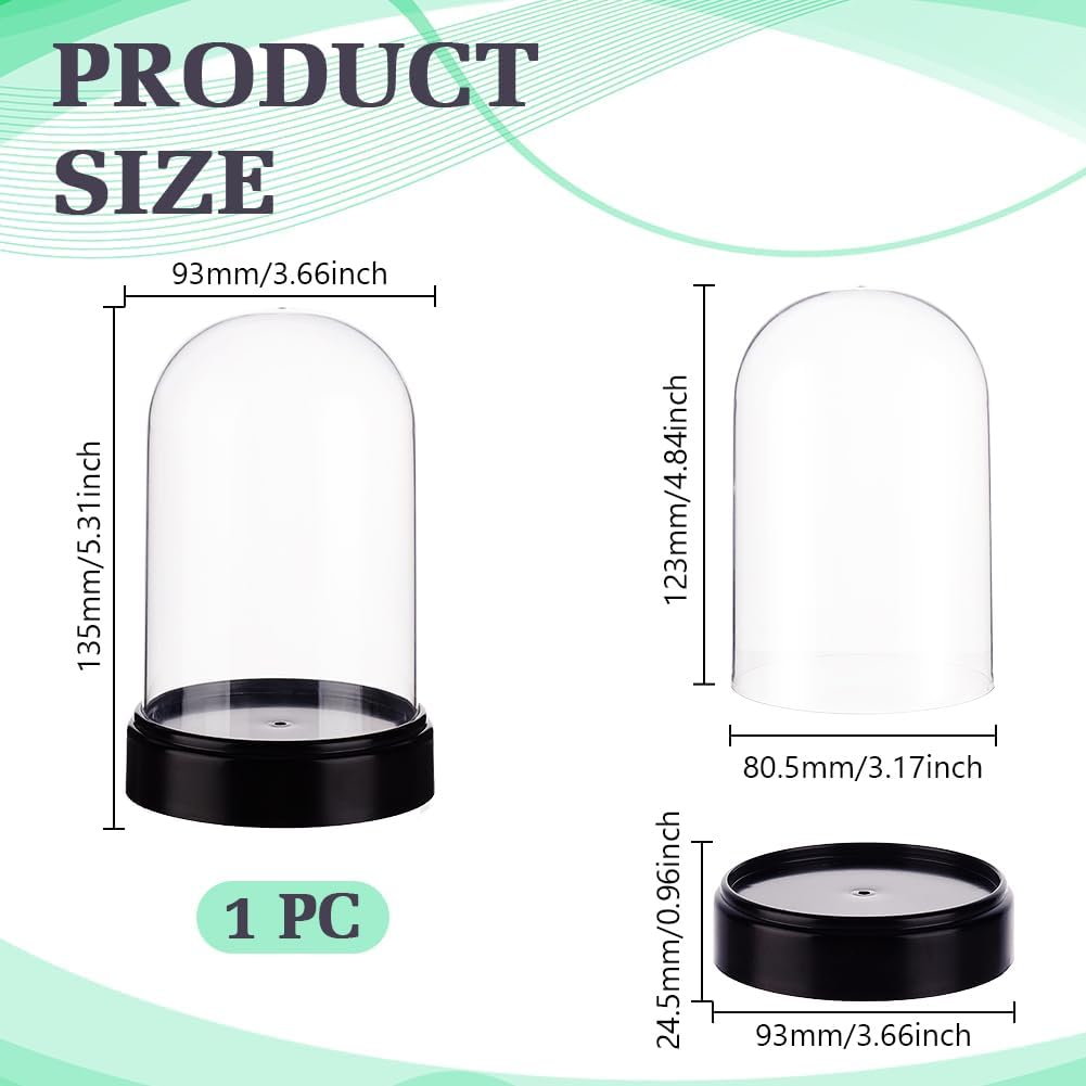 Informazioni sulle taglie: con dimensioni precise (diametro 3,75 pollici, altezza 5,25 pollici), questo globo a campana in acrilico si adatta perfettamente alla maggior parte degli oggetti da collezione pur mantenendo un ingombro compatto. Il diametro interno di 8 cm e la copertura di 12,3 × 8,2 cm garantiscono un facile posizionamento, mentre la base ponderata di 9,3 × 2,5 cm fornisce un'esposizione stabile per oggetti delicati. Estetica classica della campana: l'elegante design della campana per esposizione di fiori crea un ambiente protettivo sigillato che protegge efficacemente i tuoi preziosi oggetti da collezione dalla polvere mantenendo una visibilità cristallina a 360°. La sua superficie liscia resiste alle impronte digitali e si pulisce senza sforzo, garantendo che gli oggetti esposti rimangano intatti. Texture trasparente: realizzata in acrilico di alta qualità, questa elegante cupola presenta una superficie ultra liscia che protegge i tuoi tesori esposti mettendone in mostra la bellezza. La cupola trasparente esalta i colori vibranti dei fiori secchi e la robusta base nera si abbina perfettamente al coperchio trasparente. Scelta regalo perfetta: questa cupola centrotavola nuziale è un regalo squisito per gli sposi, un bellissimo modo per presentare i loro ricordi di matrimonio. Serve anche come affascinante confezione regalo di compleanno, permettendoti di esporre in modo creativo gioielli o ricordi all'interno. Il sofisticato design della campana trasforma i regali ordinari in presentazioni straordinarie. Occasioni applicabili: queste piccole cupole decorative in acrilico possono essere utilizzate per esporre una varietà di oggetti, come figurine, rose, fiori, piante, piante grasse, mazzi di fiori, foto e altri ricordi come centrotavola nuziali, decorazioni per la tavola, ecc.