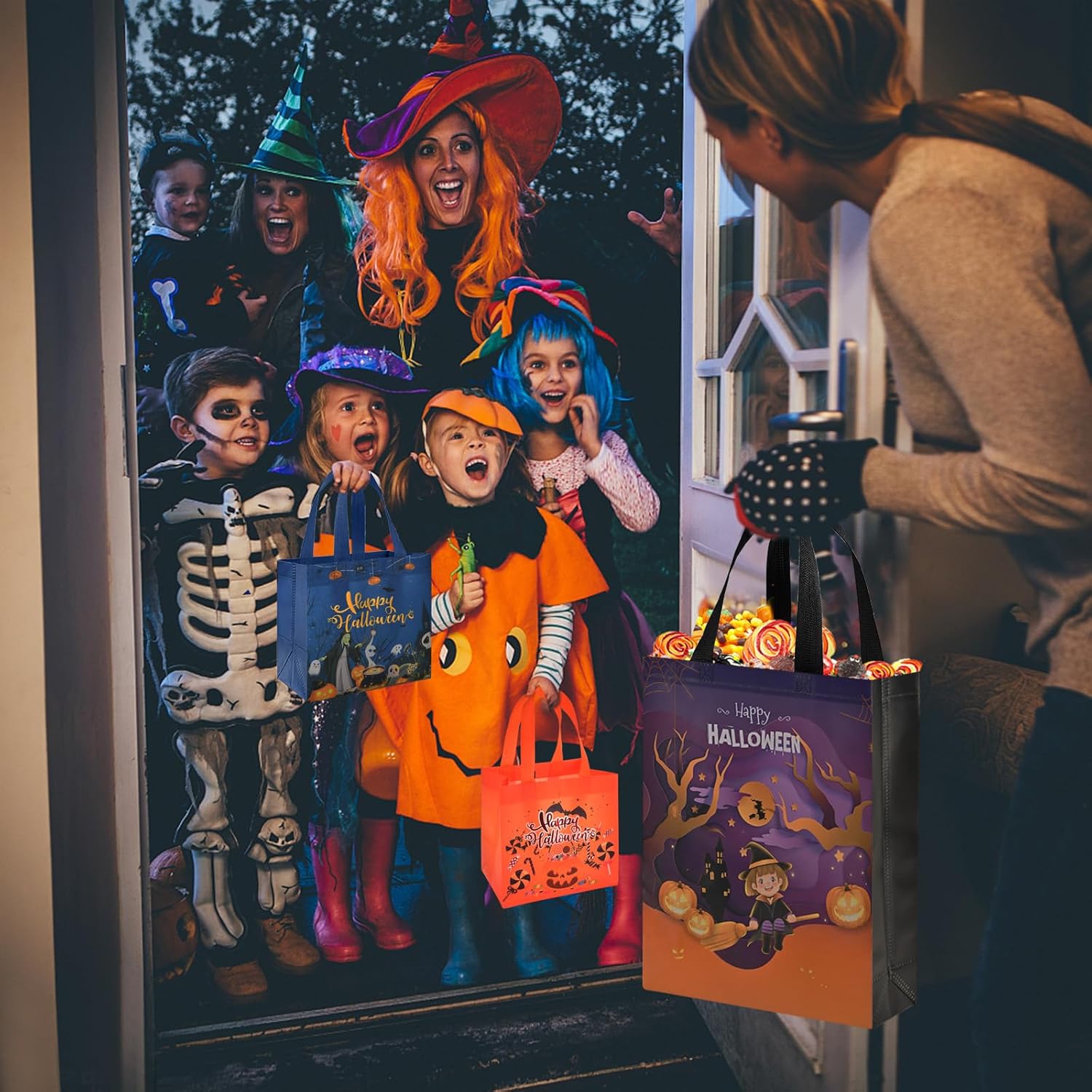 [Il pacchetto include]: questo pacchetto contiene un totale di 6 borse di Halloween. La dimensione delle borse per dolcetto o scherzetto di Halloween è 38×30×10 cm. Ha ampio spazio ed è comodo da trasportare, soddisfacendo le esigenze della confezione regalo di Halloween e dello shopping quotidiano. [Materiale pratico]: i nostri sacchetti regalo di Halloween sono realizzati in tessuto non tessuto di alta qualità, il che è molto pratico. È solido, impermeabile e riutilizzabile. La nostra borsa regalo di Halloween è un sostituto perfetto per sacchetti di carta, sacchetti di plastica e cestini. [Design di alta qualità]: ogni set di sacchetti regalo di Halloween ha un design diverso. Il motivo della borsa in tessuto non tessuto è luminoso e colorato. La nostra borsa tote di Halloween è facile da aprire e piegare, il che è comodo per riporre le cose e conservarle per il prossimo utilizzo. [Miglior regalo di Halloween]: la nostra borsa di Halloween ha una grande capacità, che può essere utilizzata per mettere snack di Halloween, coniglietti di bambole e altri regali e creare sacchetti regalo di Halloween per i bambini e i tuoi amici. È facile da trasportare. Una borsa di Halloween è una borsa da regalo ideale. [Fornitura per la festa di Halloween]: le nostre borse di Halloween con manici sono la scelta migliore per la festa di Halloween, la confezione regalo della festa di Halloween e la decorazione della festa. Può anche essere usato come borsa della spesa, che è verde ed ecologica.