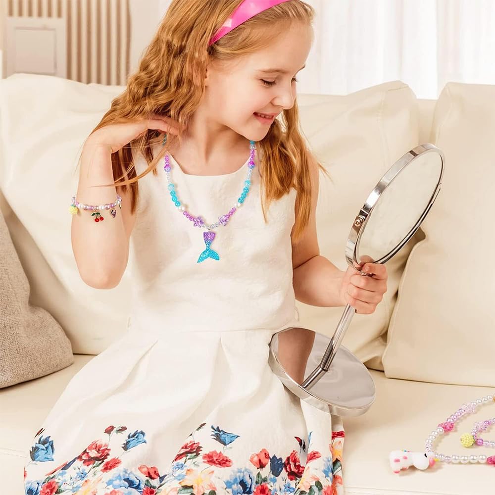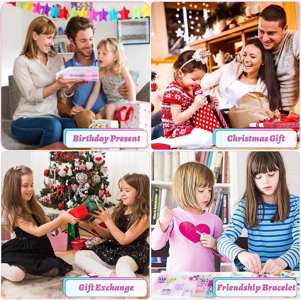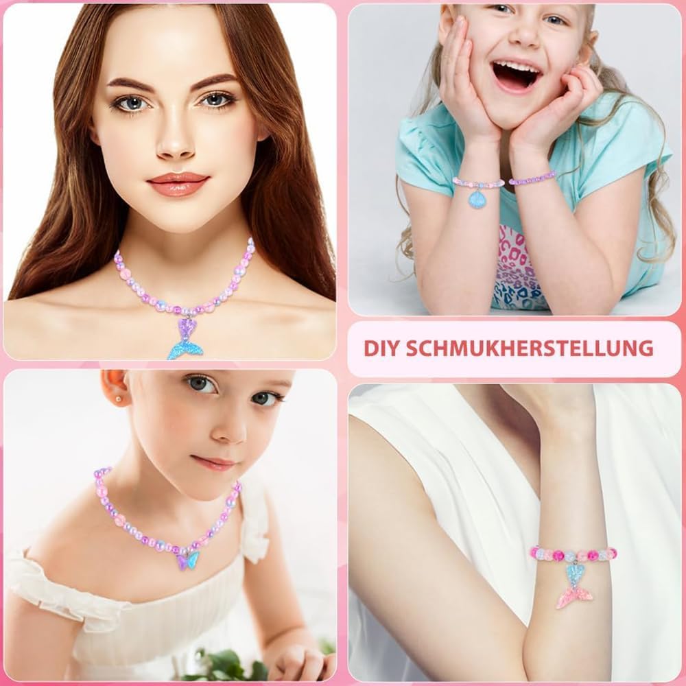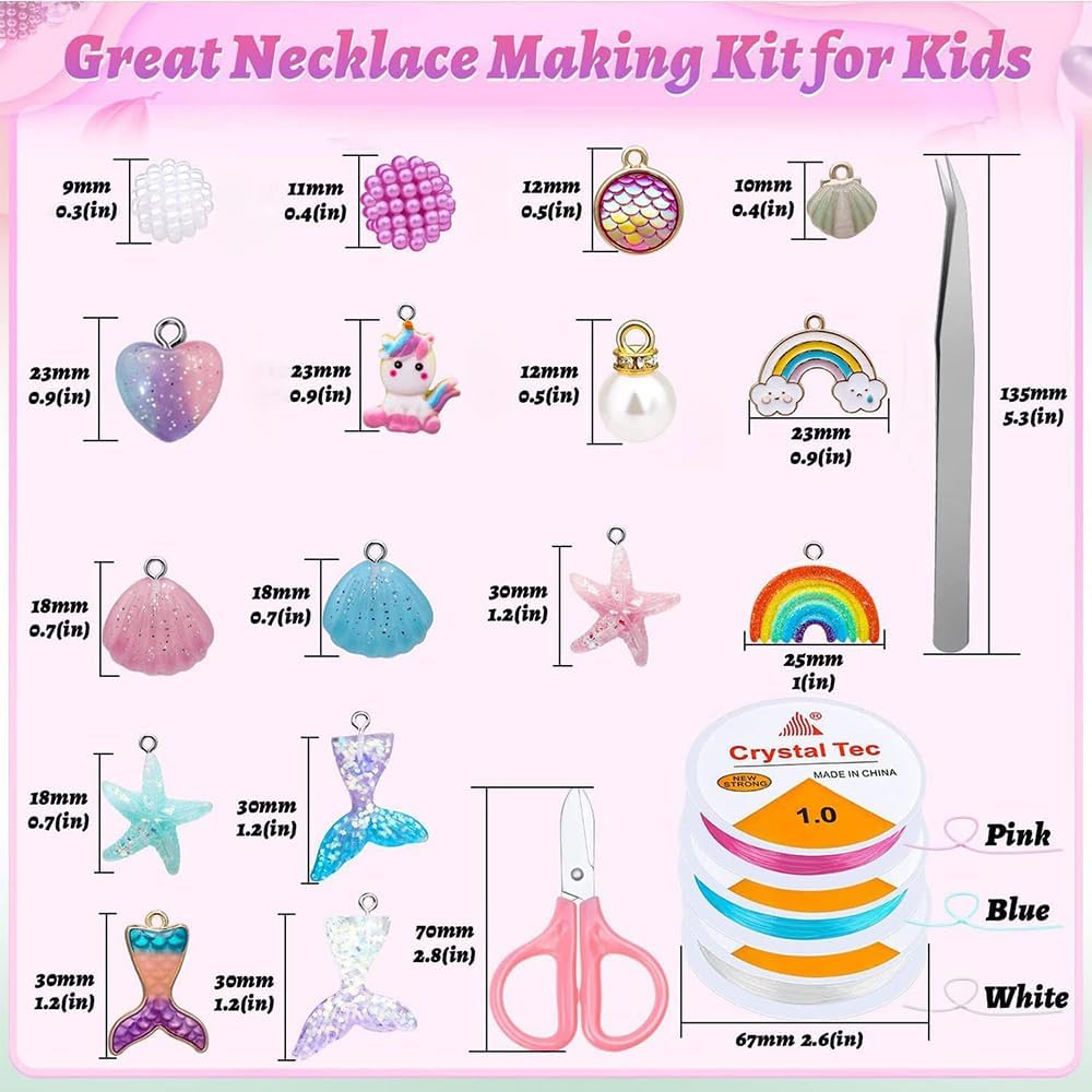 【Perline per Braccialetti】773 pezzi di kit per la creazione di collane di gioielli, 14 pezzi di ciondolo, 24 pezzi di perline, 3 rotoli di filo di cristallo, forbici di sicurezza per bambini .... È troppo e include tutto ciò che è mostrato nella foto. Vieni con una varietà di ciondoli, puoi fare diversi stili secondo le tue idee. Una bella forma, che si adatta molto bene al concetto di design. 【Materiale di Alta Qualità】Le perline per incordare i bambini in diversi colori e forme, le ragazze artigianali dei gioielli sono realizzate in resina e materiali in lega, durevoli e non sbiaditi, le perline hanno una superficie liscia, un colore brillante, sicuro e attraente, il set di gioielli sarebbe sicuramente un regalo da sogno per le ragazze. 【Scatola di Plastica con Scomparti Separati】Il set di perline per bracciali di ogni colore e stile è confezionato in una scatola trasparente divisa, ordinata e bella, non disordinata, facile da prendere, il set di collana fai da te ricco di accessori e facile da completare l'artigianato senza strumenti aggiuntivi. 【Una Varietà di Stili】I set artigianali di gioielli per bambini con colori sfumati sono adatti a una varietà di stili tematici per creare bellissime collane e braccialetti con diverse combinazioni di perline in base alle tue preferenze, e decorarli con ciondoli unici come sirena, arcobaleno, conchiglie farfalle, ecc. 【Il Miglior Regalo per i Bambini】I gioielli con perline per bambini possono essere giocati con i tuoi figli durante le vacanze, migliorare il rapporto genitore-figlio, migliorare la coordinazione occhio-mano, imparare la corrispondenza dei colori e stimolare l'immaginazione e la creatività. Sono anche ampiamente utilizzati in altri progetti come: portachiavi, fermagli per capelli, spille, riempitivi per vasi e altri mestieri, ecc.