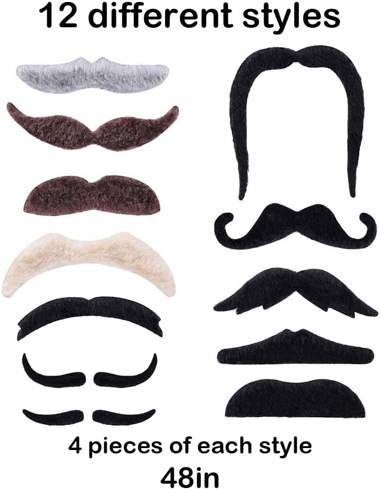 - Baffi di alta qualità da incollare: realizzati in morbida fibra sintetica e adesivo autoadesivo, i baffi sbagliati sono comodi da indossare, riutilizzabili e meno suscettibili a rotture. - Ampia scelta di stili: con un totale di 48 pezzi in 12 stili diversi, questi baffi sono versatili e ti permettono di soddisfare le tue diverse esigenze di styling. - Facile da usare: con pochi gesti è possibile fissare la barba per attaccarla – basta staccare la carta di supporto e incollarla. La barba si tiene in modo sicuro e senza lasciare tracce. - Realistico e squisito: la superficie soffice della falsa barba la rende particolarmente realistica e vivace. Aillong è disponibile in diversi colori ed è adatto per essere incollato per tutte le occasioni come Halloween, carnevale, feste in maschera o feste di Natale. - Multiuso: le barbe da incollare non sono solo l'accessorio perfetto per le feste, ma sono anche adatte come decorazione per artigianato o giocattoli. Sono adatti anche come regalo divertente o per l'uso nel gioco di ruolo