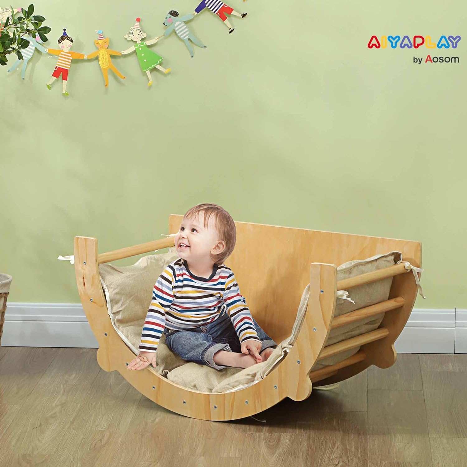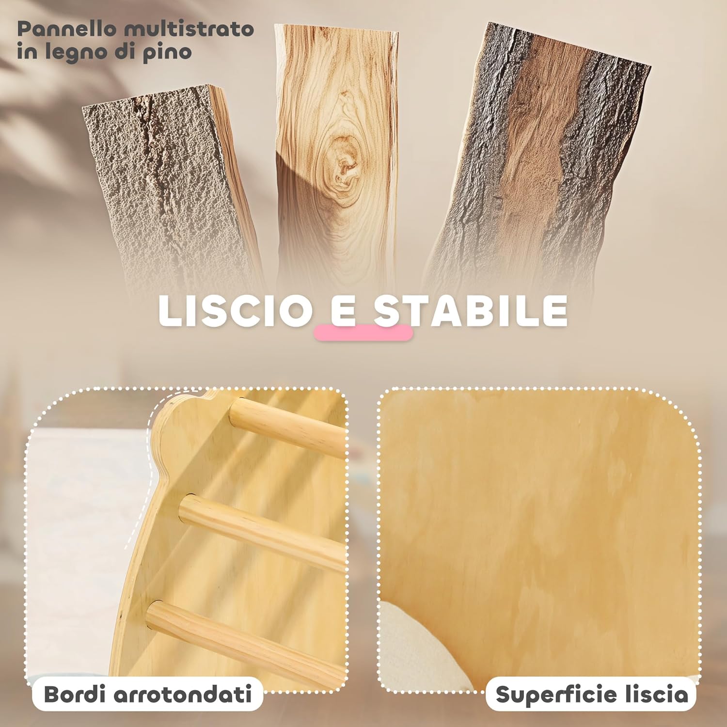 OPZIONI DI GIOCO VERSATILI: Si converte facilmente in un arco per arrampicata, un tavolo per bambini da gioco o una sedia a dondolo, garantendo un divertimento senza fine e numerose opportunità di sviluppo per i tuoi piccoli DESIGN SICURO E STABILE: L'arco Montessori è realizzato in pannello multistrato di pino solido con una superficie liscia per garantire la massima sicurezza durante il gioco CUSCINI COMODI: Dotato di un cuscino morbido e spesso 9 cm, questo gioco Montessori garantisce comfort durante lunghi periodi di gioco e relax ISPIRATO AL METODO MONTESSORI: Questo gioco per bambini stimola la voglia di esplorare e giocare in autonomia, favorendo le prime capacità di sviluppo nei bambini di età compresa tra i 18 e i 48 mesi DIMENSIONI: Dimensioni complessive: 90L x 52P x 50A cm. Capacità di peso: 50 kg. Montaggio richiesto. Età standard: oltre 18 mesi