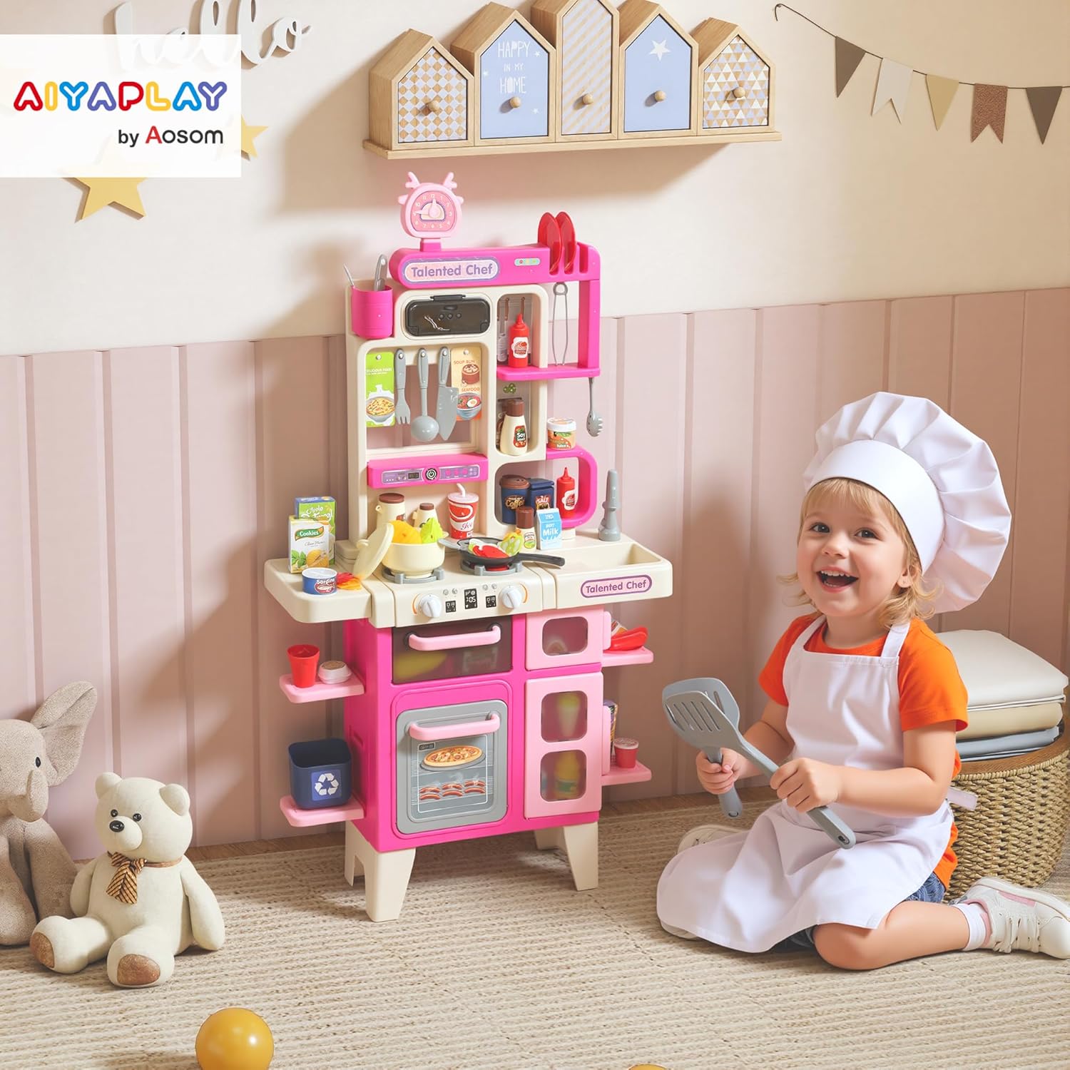 SUONI E LUCI REALISTICI: Il piano cottura di questa cucina giocattolo si illumina, emette rumori e persino spruzza nebbia quando viene riempito d'acqua. Inoltre, la presenza di un rubinetto rende il gioco estremamente coinvolgente per tutti i giovani chef GIOCO EDUCATIVO: Attraverso la nostra cucina giocattolo per bambini realistica, i più piccoli possono imparare a conoscere e utilizzare gli utensili in modo sicuro e sviluppare competenze sociali, cognitive e creative, immergendosi in un gioco di ruolo SET DA 104 PEZZI: La confezione comprende 104 giochi di cucina per bambini come il lavandino funzionante, il piano cottura con spruzzatore, pentole giocattolo, utensili e cibo finto, offrendo loro un gioco di ruolo completo e creativo ACCESSORI SICURI E SPAZIOSI: La nostra cucina per bambini è realizzata con materiali solidi e una base rinforzata per garantire sicurezza nel gioco, mentre uno spazio di contenitore centrale incorporato mantiene tutti gli accessori in ordine DIMENSIONI: Dimensioni complessive: 52.5L x 22P x 100A cm. Età consigliata: 3–6 anni. Età indicata: 3+ anni. Questo gioco per bambini è conforme agli standard di sicurezza dell'UE EN-71