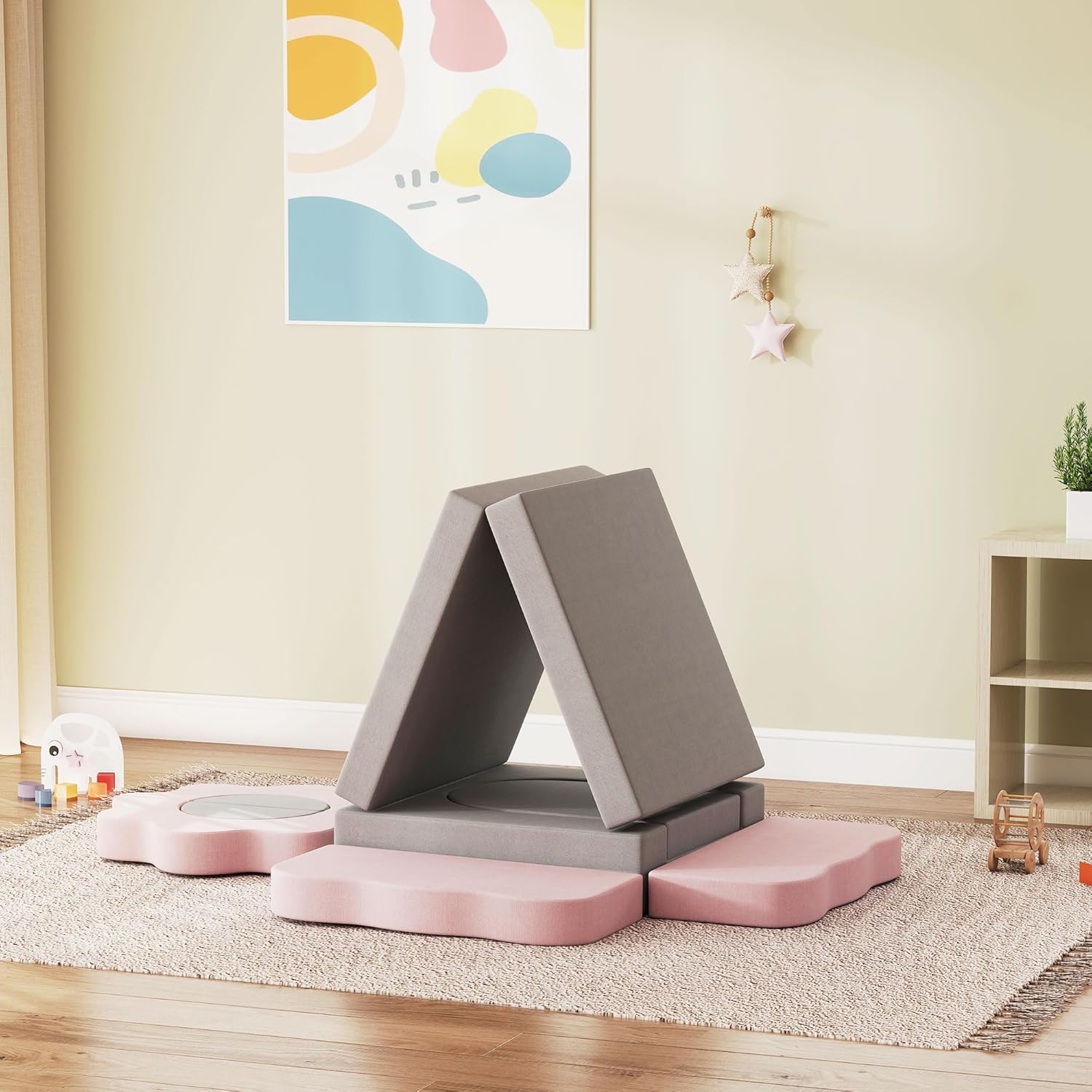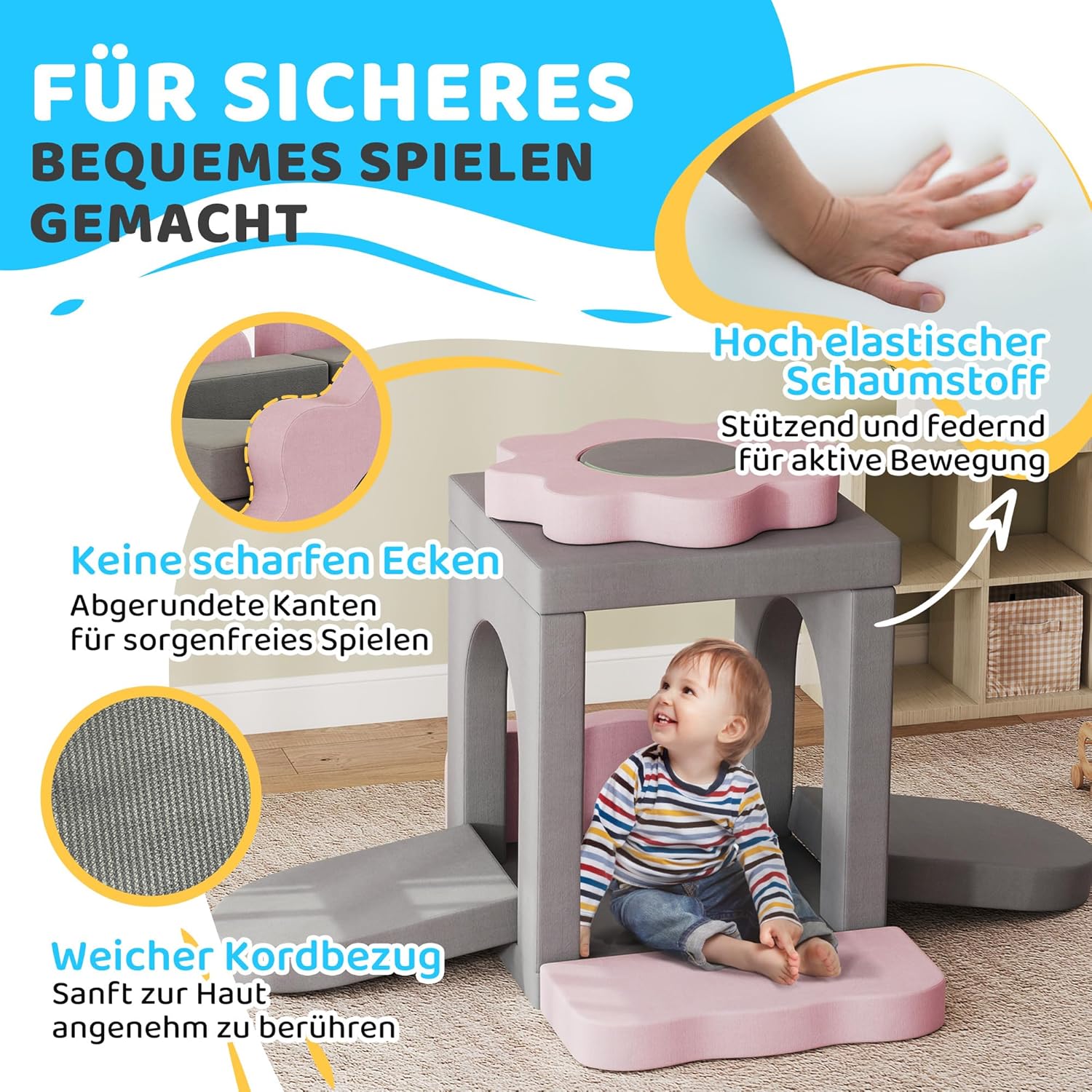 Viele Spielmöglichkeiten: Entfesseln Sie die Fantasie Ihres Kindes! Dieses Set aus 12 Softbausteinen in Blumen- und Wellenformen verwandelt sich in ein gemütliches Spielsofa, kreative Burgen, zauberhafte Schlösser oder eine entspannte Leseecke Ballgrube bauen: Ob Stapeln, Kriechen, Klettern oder Umwandeln der Blöcke in eine Mini-Ballgrube (Bälle nicht inbegriffen) – diese Großbausteine sorgen für stundenlangen Indoor-Spielspaß, ob alleine oder mit Freunden und Geschwistern Sicheres & kuscheliges Design: Aus hochdichtem Polyurethan-Schaumstoff mit einem weichen Cordbezug gefertigt, bietet das Schaumstoff Bausteine-Set perfekte Polsterung für sicheres Spielen von Kleinkindern und ist sanft zu kleinen Händen und Knien Kreativität & soziales Spiel fördern: Diese weichen Softbausteine fördern das Problemlösen, die Koordination und das gemeinsame Spielen. Beobachten Sie, wie Kinder zusammen kreativ werden, teilen und die Welt erkunden Produktinformationen der Großbausteine: Großes Rund: 60B x 45T x 10H cm. Wellenform: 75B x 35T x 10H cm. Blumenform: 75B x 35T x10H cm. Belastbarkeit: 45 kg. Empfohlenes Alter: 18 Monate - 8 Jahre