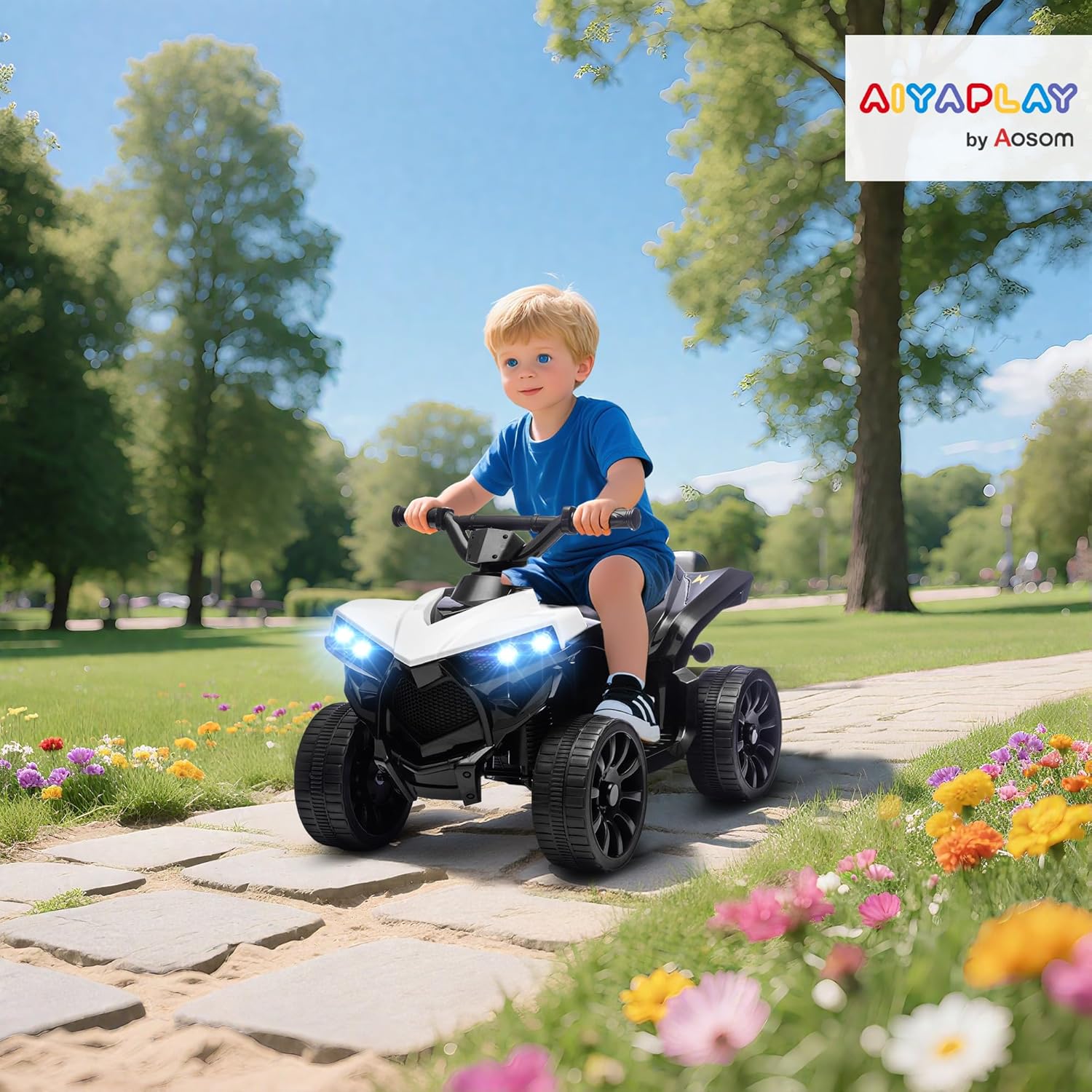 MOTEUR PERFORMANT : Équipé d'un moteur 6V, ce quad pour enfants assure une promenade fluide dans le jardin ou sur la terrasse, parfait pour éveiller leur imagination à chaque sortie. ANIMATIONS MUSICALES ET LUMIÈRES ÉCLATANTES : Doté de trois chansons entraînantes et de phares fonctionnels, cette voiture électrique offre un environnement vivant, transformant chaque parcours en une aventure joyeuse et captivante. ROBUSTESSE ET SÉCURITÉ CERTIFIÉES : Construit avec un métal solide et un PP de qualité, ce quad ATV certifié EN71 est fait pour durer et supporte sans risque jusqu'à 25 kg, assurant votre sérénité. CONFORT DES JEUNES CONDUCTEURS : Destiné aux enfants âgés de trois à huit ans, ce quad électrique pour enfants est doté d'une assise agréable qui permet aux jeunes aventuriers de gagner en assurance tout en s'amusant. ADAPTÉ AUX INTÉRIEURS ET EXTÉRIEURS : Adapté à diverses surfaces telles que le ciment, l'asphalte, les chemins en briques ou même à l'intérieur, ce quad électrique pour enfants est prêt à l'action, ajoutant de la joie à chaque instant familial.
