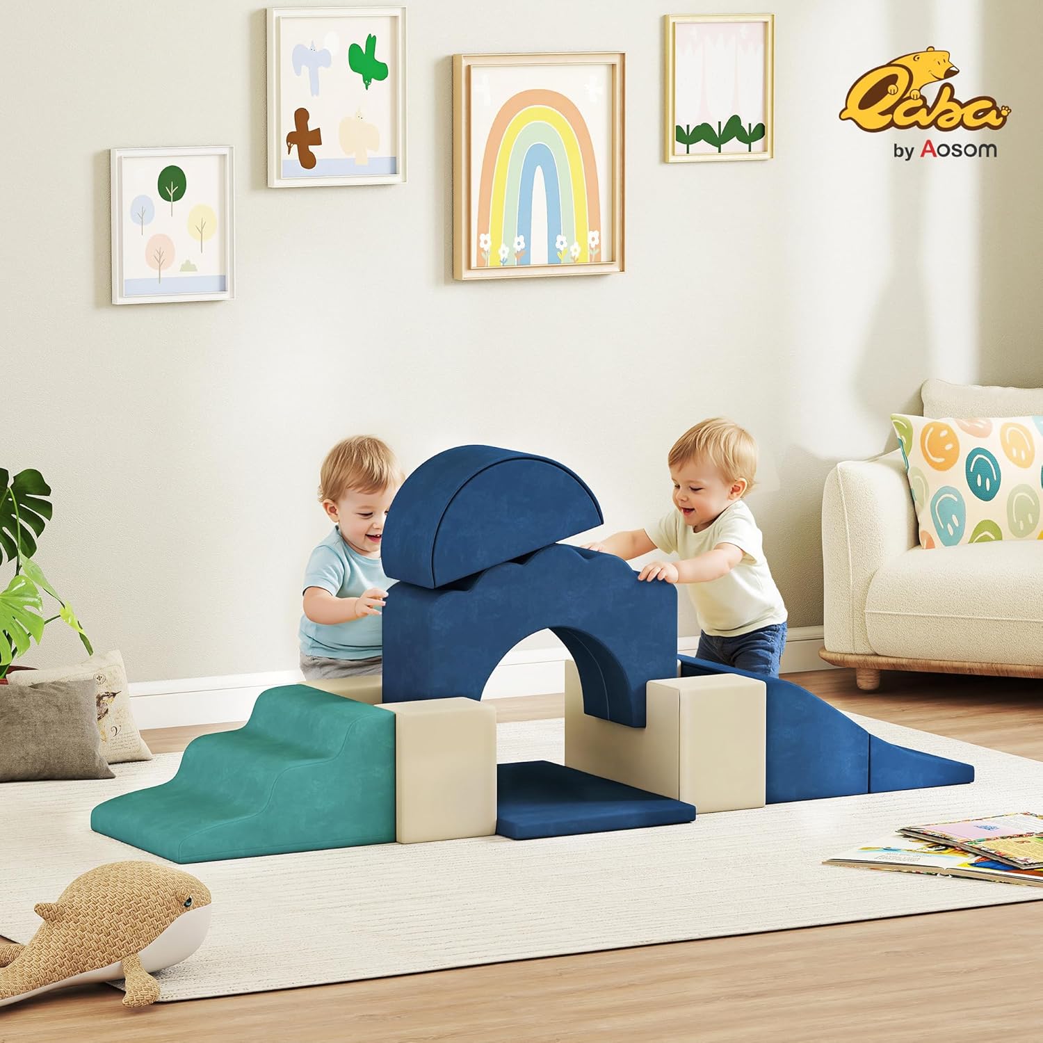 SET MULTIFUNZIONALE 7 PEZZI: Questo set di giochi morbidi per bambini, composto da una rampa, gradini, un arco, una mezza luna, una scanalatura e un tappetino pieghevole, offre un'ampia varietà di attività ludiche, favorendo la creatività e lo sviluppo motorio dei più piccoli VELLUTO SICURO: Realizzati in velluto soffice e schiuma PU di alta densità, questi blocchi di costruzioni morbide garantiscono massima sicurezza e comfort. Senza angoli vivi o parti dure, sono la scelta ideale per la tranquillità dei genitori e il divertimento dei bambini FACILE DA PULIRE: Il rivestimento delle costruzioni morbide in velluto è facilmente removibile e lavabile, garantendo così pulizia e igiene costanti. I genitori possono mantenere l'ambiente di gioco sempre fresco e salubre con semplicità. VERSATILE PER QUALSIASI STANZA: Ideale per essere collocati in salotti, camerette o studi, questo gioco per bambini con blocchi morbidi crea un'area gioco sicura e accogliente, perfetta per la casa o per gli spazi di gioco condivisi DIMENSIONI: Dimensioni della rampa pieghevole: 50L x 40P x 25A cm. Dimensioni della rampa a 3 gradini: 45L x 40P x 25A cm. Capacità di peso: 15 kg. Età consigliata: dai 6 mesi ai 3 anni. Età approvata: da 0 anni in su