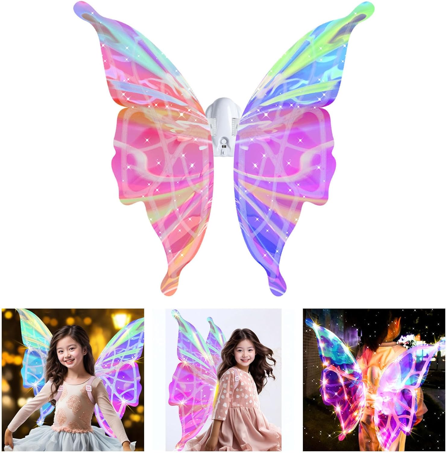 Ideale per eventi di Halloween, feste di Natale o eventi di compleanno a tema principessa, l'ala luminosa trasforma i bambini in incantevoli centrotavola sotto vari eventi Illumina la notte con l'ala delle fate a LED con luci cangianti e musica che cambiano colore, utilizza ABS selezionato per il massimo comfort durante l'uso prolungato Un magico appassionato di giochi di finzione, questa ala di farfalla luminosa combina creatività e durata, rendendolo un elemento distintivo tra il giocattolo a LED e il costume da travestimento Design per ragazze dai 3 anni in su e per bambini fantasiosi, questo giocattolo a forma di ala di fata migliora l'avventura del gioco di ruolo fornendo una vestibilità sicura e confortevole per varie occasioni L'ala fata con un semplice design di attivazione per effetti luminosi rapidi e facile da usare, ideale per trasformazioni rapide dei costumi