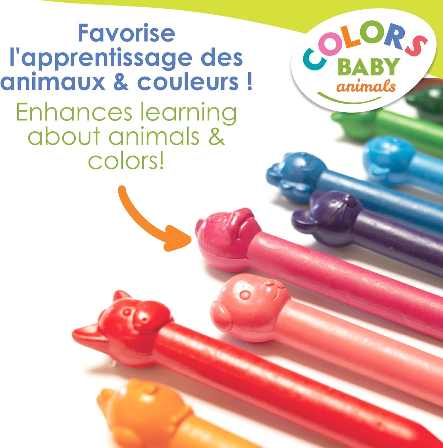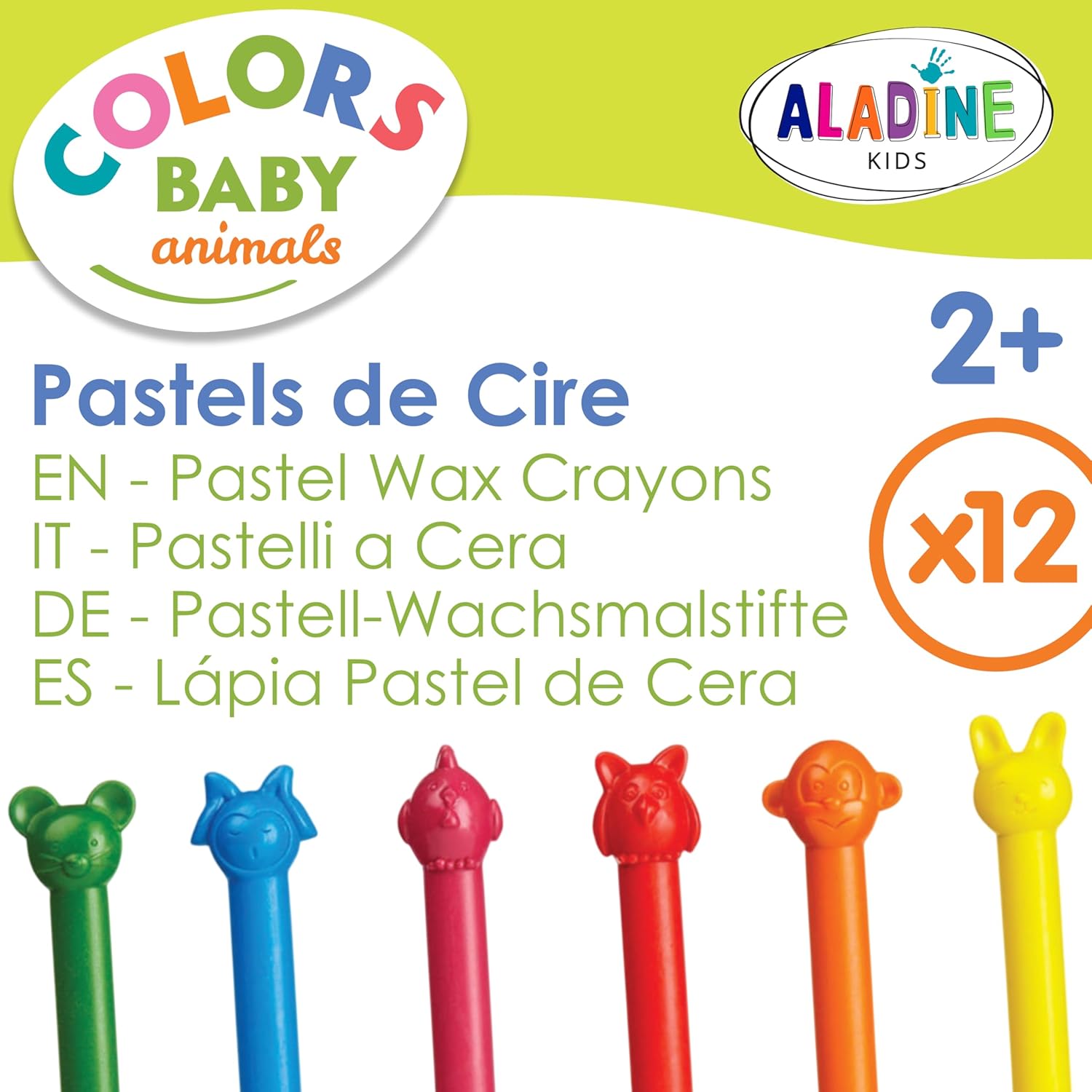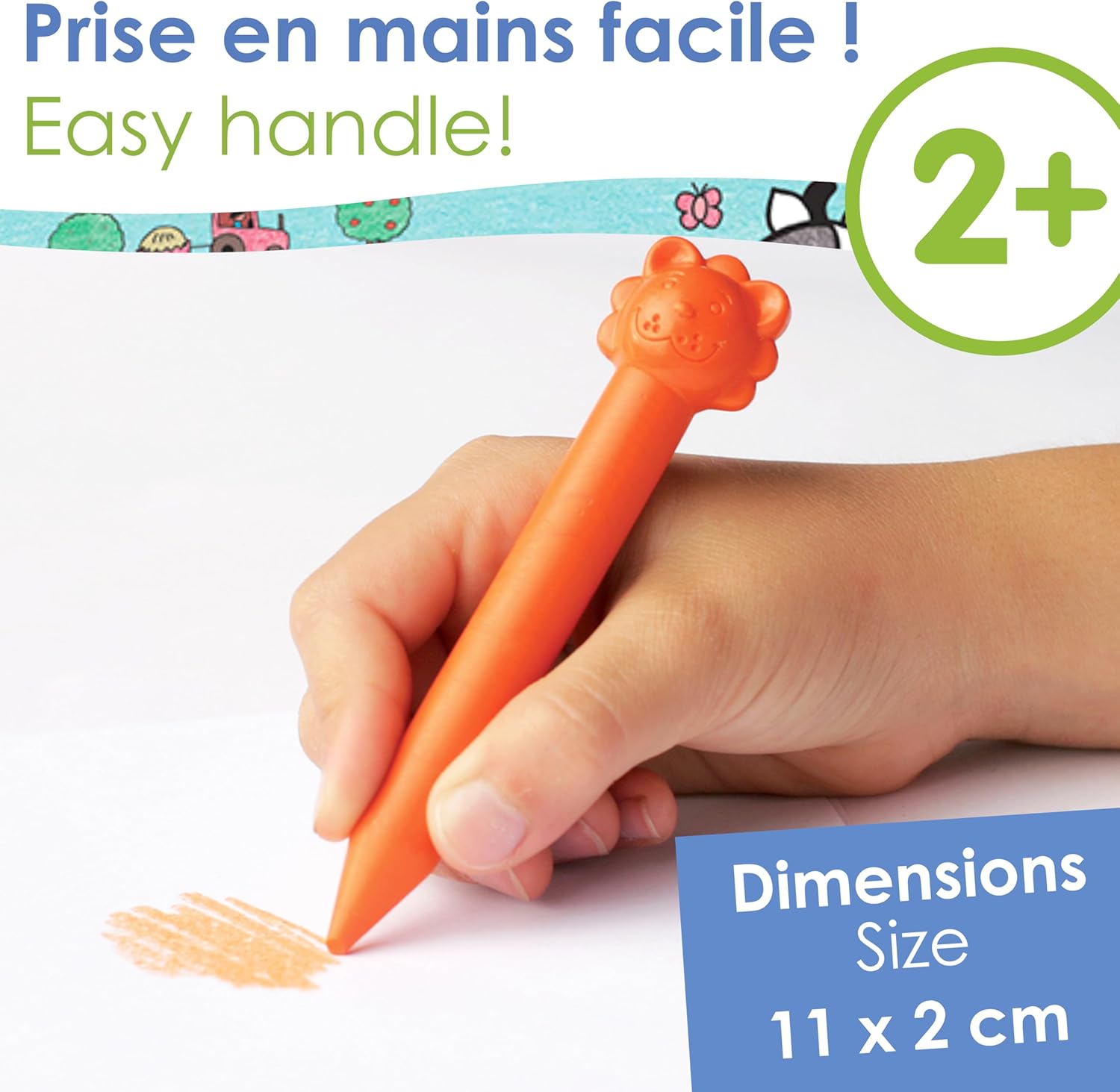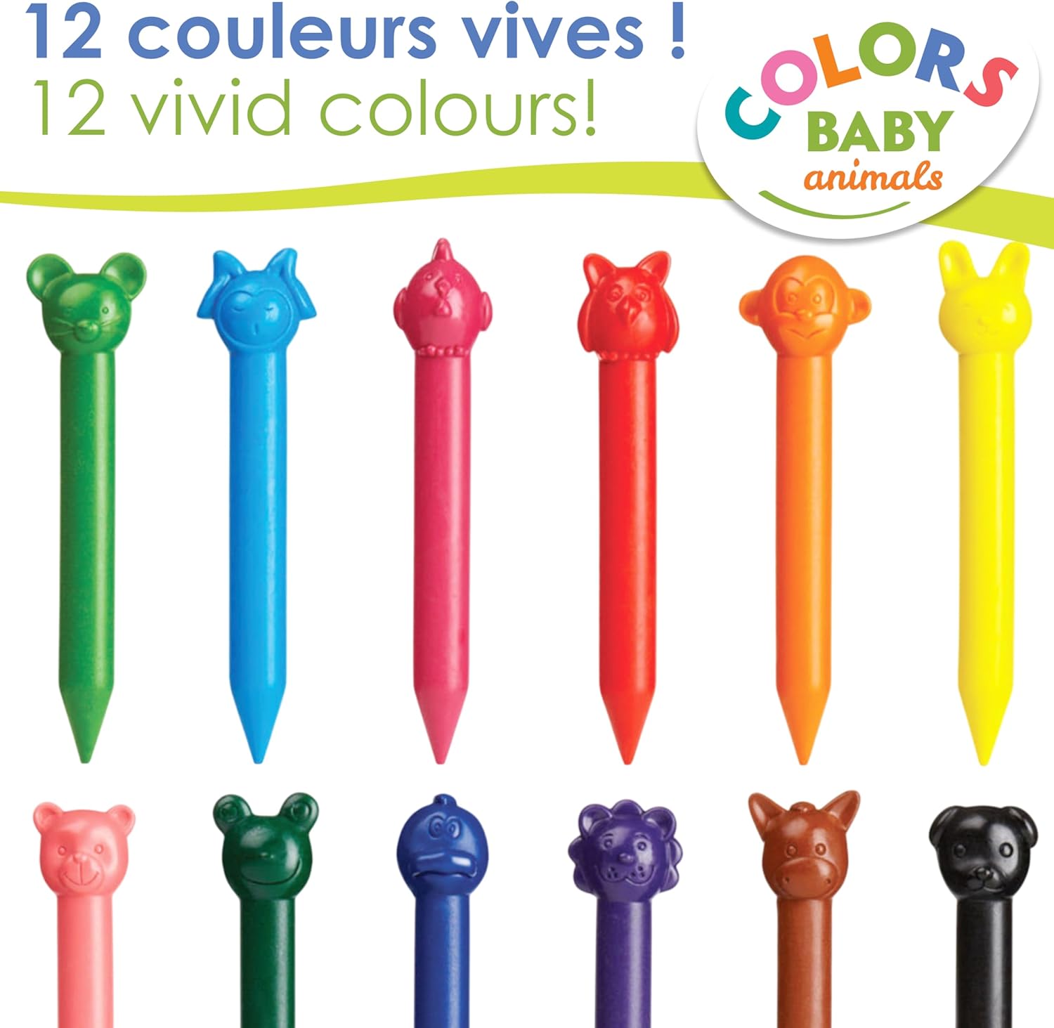 Colors: 12 pastelli a cera - animaletti 2+ Pastelli a cera con estremità a forma di animaletto per i bambini a partire dai 2 anni Colori a base acqua super lavabili e atossici