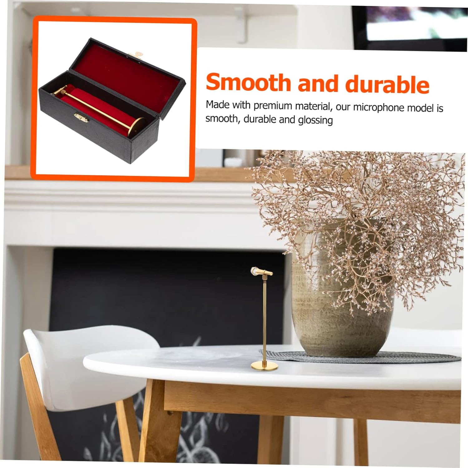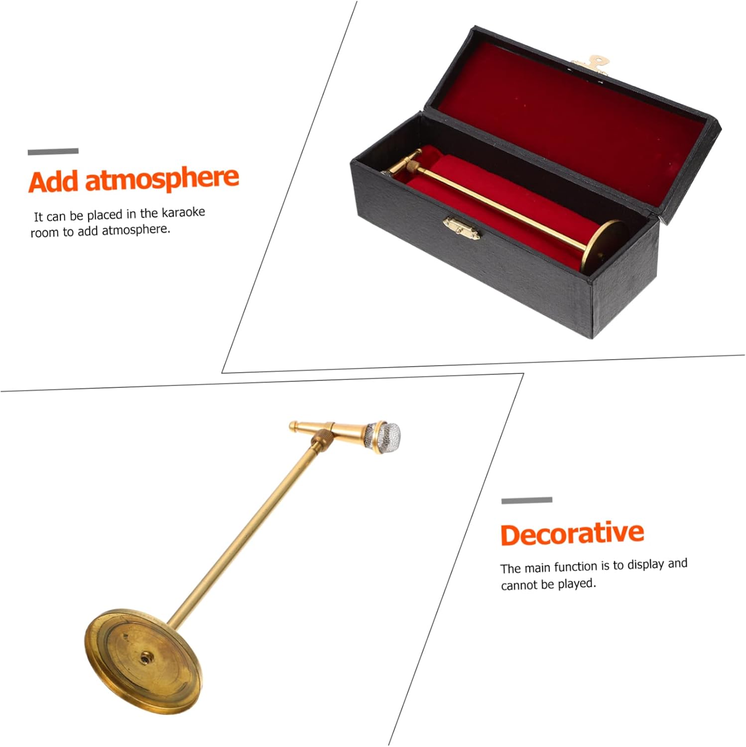Ornamento mini microfono: è multiuso, può anche essere utilizzato come decorazione per scene di spettacoli in miniatura o supporto fotografico, microfono da scrivania Supporto per microfono: buona fattura e superficie liscia e lucida, facile da pulire, ornamento per microfono domestico Decorazione in miniatura: squisito ornamento per mini microfono da inviare ai tuoi amici o familiari, e a loro piacerà, supporto per microfono realistico Modello di microfono: questa è una decorazione realistica e squisita del modello di scena in miniatura che può creare un'atmosfera calda e confortevole, decorazione del microfono domestico Modello mini microfono: prodotto con tecnologia di macinazione avanzata, imitando l'aspetto del microfono reale, creando un impatto visivo, modello di microfono delicato
