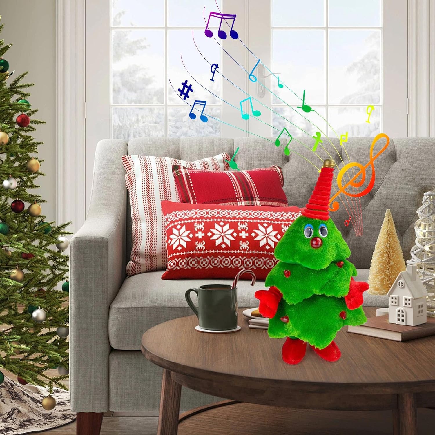 Celebrazione per famiglie: con un pulsante di controllo attivato al tatto, l'albero di Natale giocattolo offre un'attivazione immediata e un'atmosfera festosa istantanea, ideale per esperienze di vacanza indimenticabili al chiuso o in occasione di eventi sociali. Considerativo: questo albero di Natale danzante suscita curiosità ed è un regalo attento per tutte le età. Promuove risate condivise e allegria alle feste e allo stesso tempo funge da centro decorativo Versatile: questo albero di Natale cantante offre opzioni di posizionamento flessibili su tavoli, scaffali, scrivanie o credenze per abitazioni private e spazi commerciali, crea un'atmosfera festosa senza occupare spazio prezioso ed è ideale come decorazione natalizia versatile per tutta la stagione delle vacanze Allegro indicatore di movimento: questo albero di Natale danzante offre uno spettacolo luminoso sincrono musicale che combina suoni e movimento allegri, offre un'esperienza coinvolgente e migliora l'atmosfera di ogni stanza, perfetto per feste di Natale o accoglienti serate invernali Addobbi natalizi accattivanti: il peluche di abete di Natale combina un design giocoso con brillanti tonalità rosso-verde. Questo elemento decorativo diffonde calore e gioia festiva nella vostra casa e si armonizza perfettamente con altri elementi decorativi natalizi.