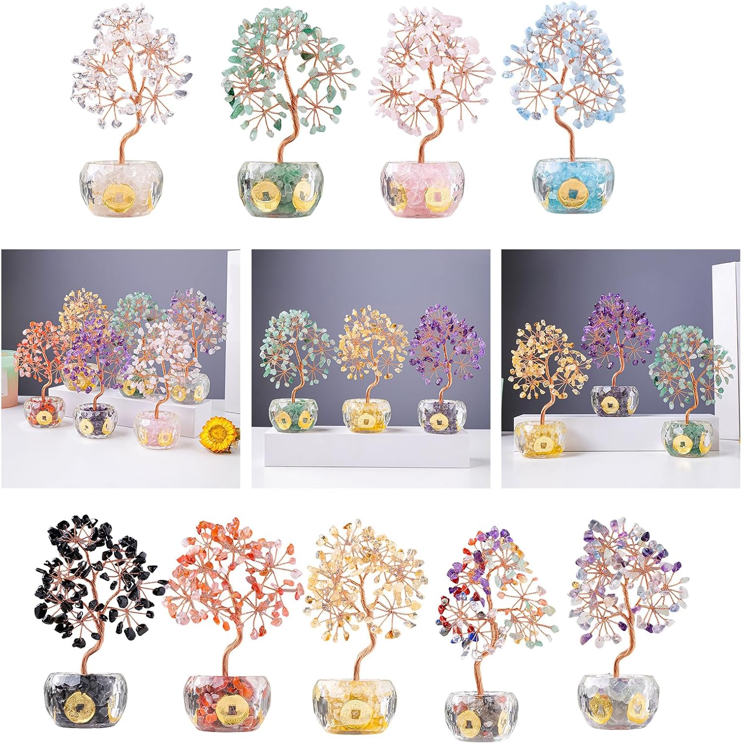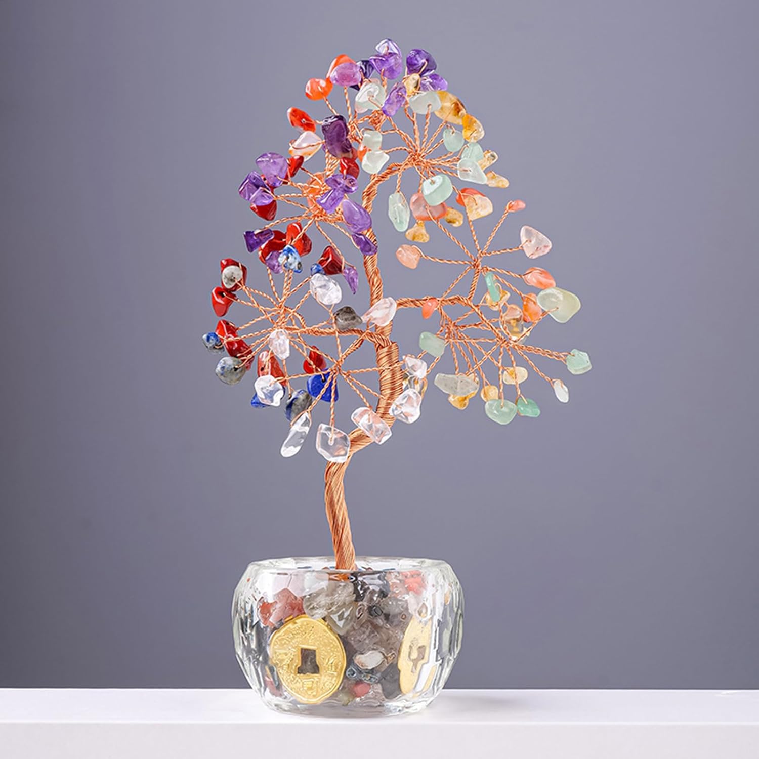 Adatto per gli appassionati di Feng Shui e gli amanti del cristallo, questo albero dei soldi è un simbolo di prosperità e positivo Sblocca un mondo pieno e prosperità con il nostro albero di cristallo multicolore per migliorare la tua ricchezza e la tua felicità Aumenta gli ambienti di qualsiasi stanza Regala un regalo di felicità; questo albero di cristallo serve come regalo elegante per amici e familiari occasionalmente o come regalo di inaugurazione della casa Artigianato fatto di cristalli, ogni decorazione unica mostra una delicata disposizione di frammento di cristallo colorato con squisita bellezza