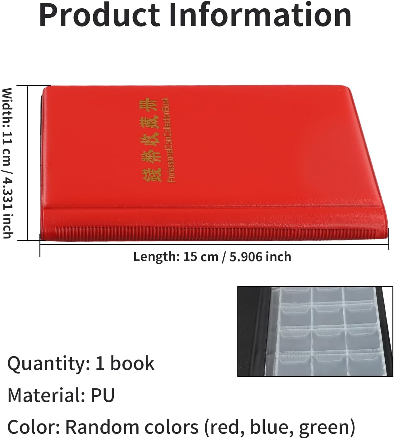 Capacità: 120 tasche Taglia:15*11cm Caratteristiche: collezione di libri Spazio professionale Adatto per angoli, gettoni, medaglioni, badge, piccole dimensioni e facile da trasportare. Facile da scambiare collezionisti di monete di Colore: rosso, blu, verde (colore casuale) Materiali: PU