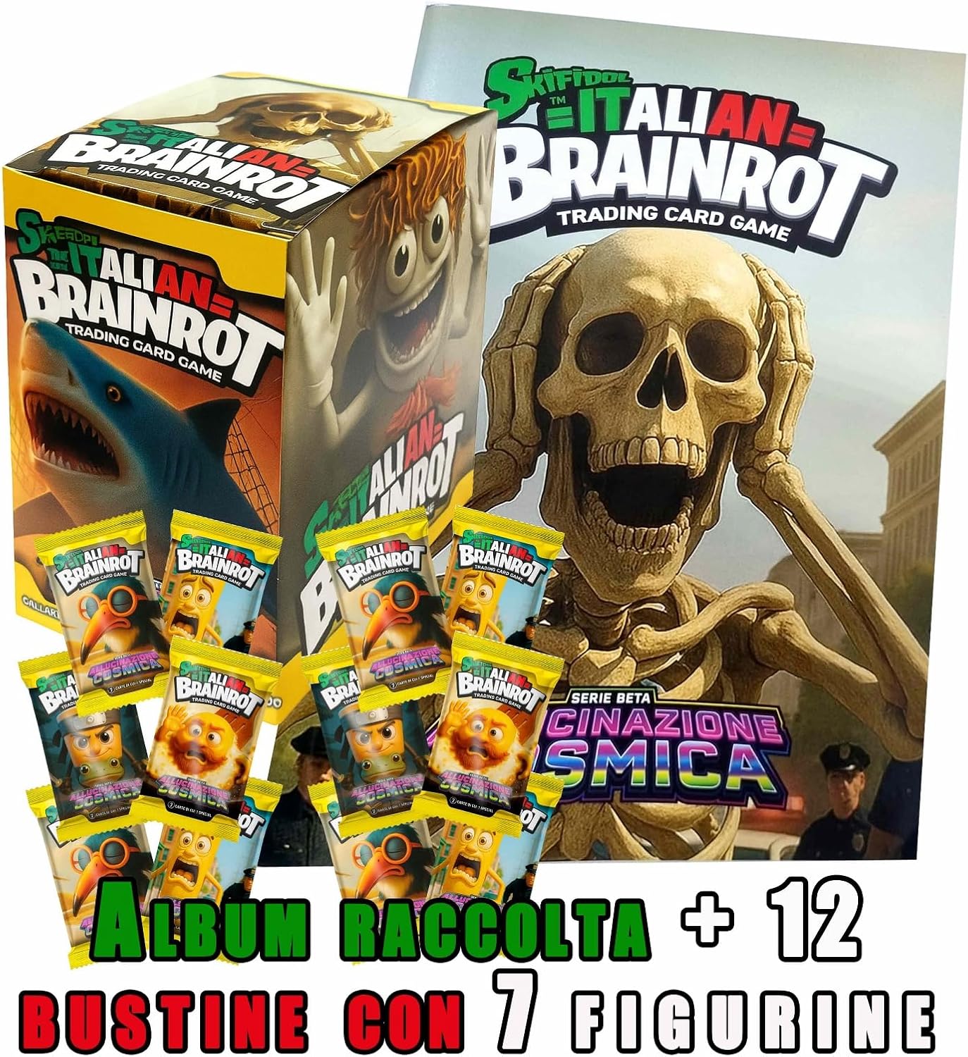 Contenuto completo: scatola da 12 bustine della serie Beta “Cosmic Hallucination”, ogni bustina contiene 7 carte collezionabili con 1 carta speciale inclusa, più album raccoglitore Serie esclusiva: seconda serie della collezione con personaggi unici e un design surreale, perfetta per collezionisti e appassionati di giochi di carte Gameplay emozionante: sistema di gioco strategico da 2 a 4 giocatori, adatto a bambini e adulti dai 12 anni Qualità superiore: carte stampate su materiale resistente e durevole, confezionate in sacchetti sigillati per preservare la sorpresa di apertura Collezione: il set completo di 168 carte collezionabili, con tematiche che spaziano dal cosmico all'horror in un'esperienza di gioco unica
