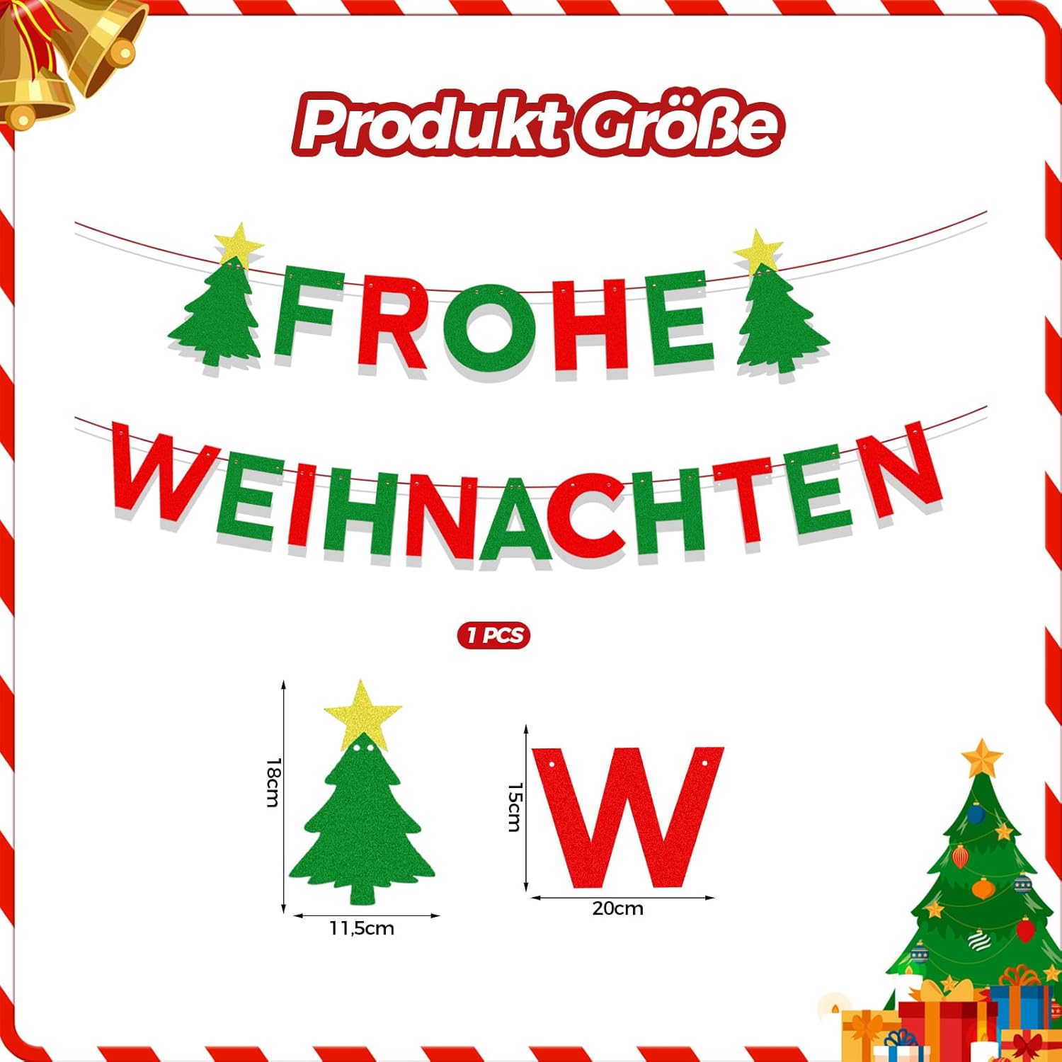 【Ghirlanda di Natale】 Riceverai una ghirlanda di Natale con la scritta Merry Christmas Garland Banner. Presenta una classica combinazione di colori rosso e verde con uno scintillante albero di Natale. È lo sfondo perfetto per feste di Natale, riunioni di famiglia e servizi fotografici e crea un'atmosfera festosa. 【Atmosfera festosa】ALEGRE Questo striscione natalizio colpisce per il suo carattere delicato e un motivo lussureggiante e festoso. Il sorprendente contrasto rosso-verde crea un effetto scintillante e accattivante. Che sia in soggiorno, sul davanzale della finestra, accanto al camino o sulla parete delle feste, illumina immediatamente ogni stanza e crea un'atmosfera natalizia calda, allegra e festosa. 【Ghirlanda di Natale di alta qualità】ALEGRE Questo striscione decorativo natalizio è realizzato in cartone glitterato di alta qualità con una superficie delicata e ricca e colori vivaci. I bordi tagliati al laser con precisione sono lisci e non si deformano. Il design rinforzato lo rende particolarmente robusto e durevole. Aggiunge un tocco festoso alla tua stanza giorno e notte. [Decorazione ideale] Il Natale è alle porte. ALEGRE Questa ghirlanda natalizia è perfetta per la decorazione natalizia di case, uffici, centri commerciali e scuole. È perfetto anche per servizi fotografici, eventi a tema o feste di Natale. Porta vita e calore alle tue stanze natalizie e crea ricordi natalizi indimenticabili. 【Servizio clienti】 Vogliamo offrirti la migliore esperienza di acquisto. Se hai domande prima o dopo l'acquisto, contattaci. Ti risponderemo entro 24 ore.