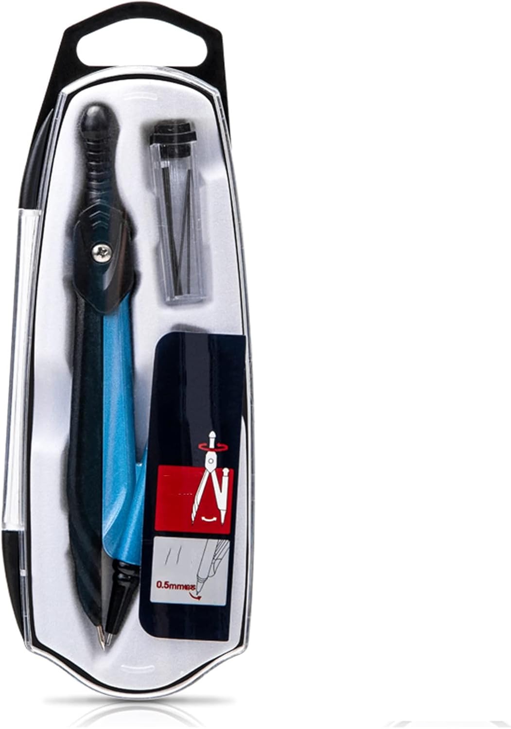 Compasso Balaustrone FLUO da 165 mm Set da 3 pezzi Compasso Balaustrone in metallo e plastica da 165mm, guidato a cremagliera elicoidale, regolazione rapida e micrometrica, levette di metallo, con due snodi e nichelato con satinatura antiriflesso. Innesto diametro 4,0mm Ottima qualità made in Italy
