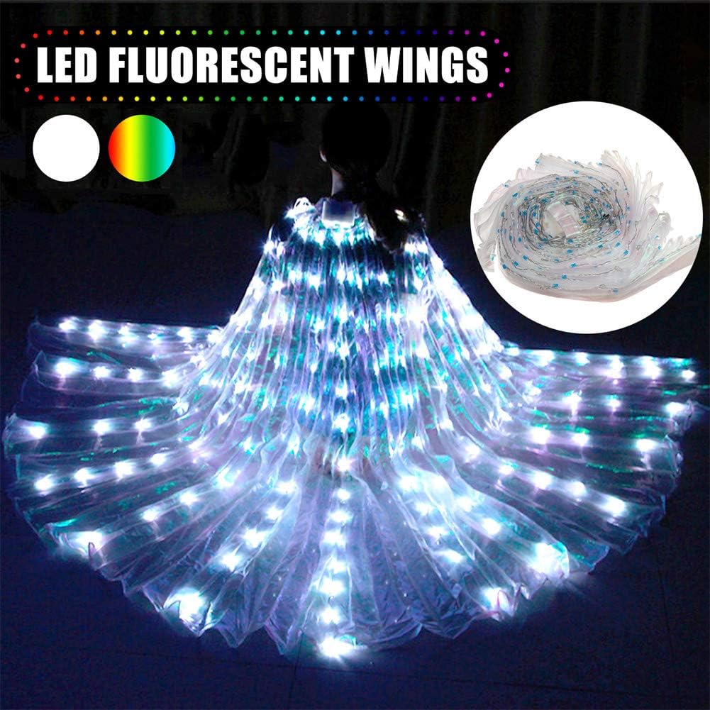 【Perline di lampada LED di alta qualità】 --- Le ali da ballo LED come le stelle colorate che brillano nel cielo quando si accendono le luci, con alta luminosità e possono illuminare l'intera area di prestazione, ti fanno brillare a 360 gradi sul palco. Sicuro da usare: ottimo filo di rame, trattamento più conduttivo, anti-rottura e anti-ossidazione. Sicuro e stabile da usare, protegge il tuo corpo. LED Glowing: con molte perline di lampada LED che hanno un'elevata luminosità e possono illuminare l'intera area di prestazioni. Applicazione: perfetto per spettacoli di danza orientale, rave annuali di costumi, scene, feste di Halloween, abiti natalizi, bar, ecc. BASSA TENSIONE SICUREZZA: L'inserimento dell'alloggiamento della batteria per fornire una bassa tensione sicura di 4,5 V può controllare le luci a LED per ottenere un effetto palcoscenico enorme, alimentato da 3 batterie AA (3 batterie AA non incluse)