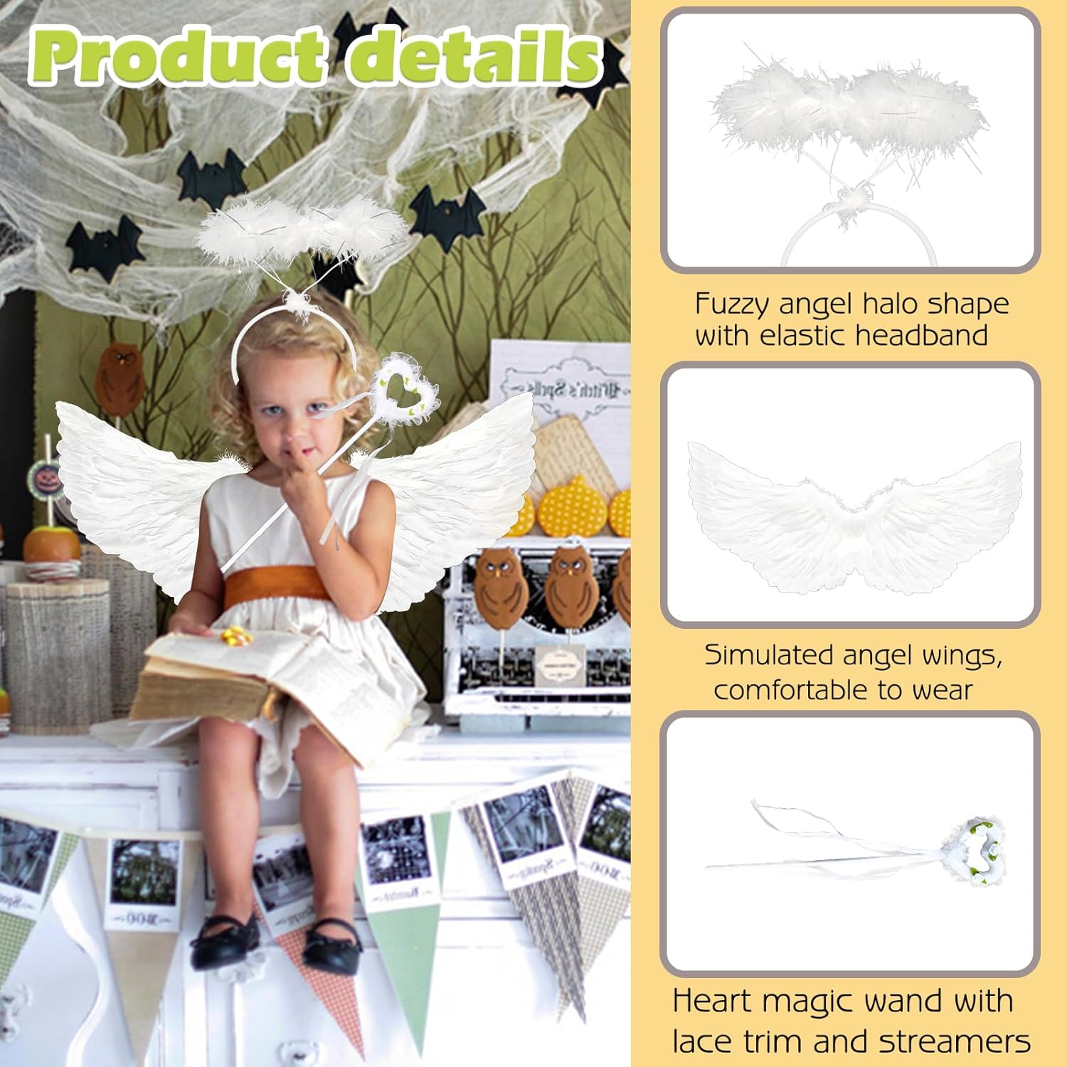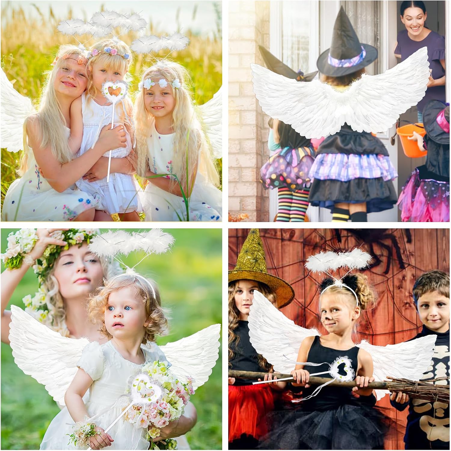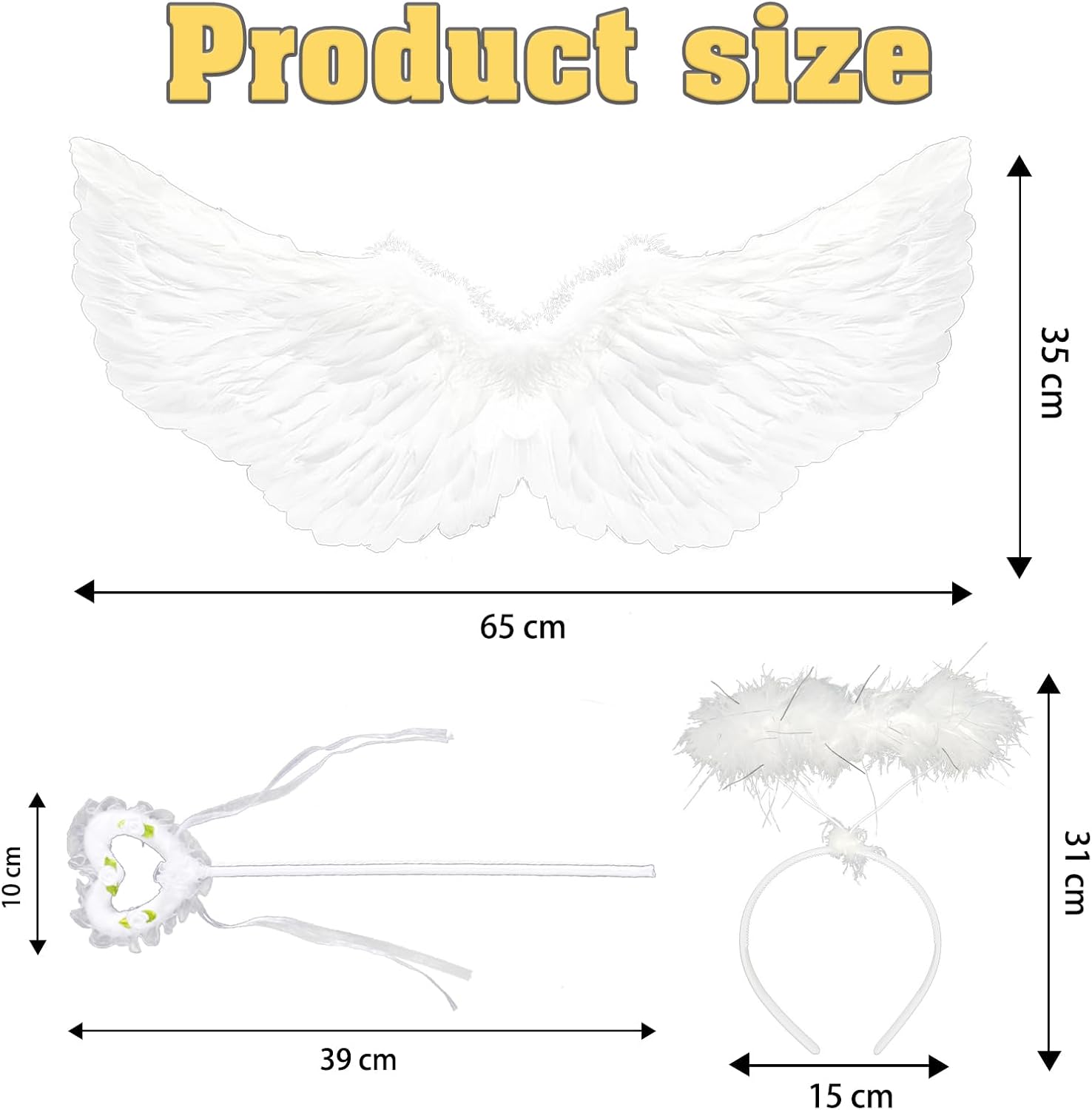 【Set di Ali d'Angelo】Riceverai 1 ala ali di piume bianche, 1 aureola angelo bianche e 1 bacchetta magica. Il design classico delle ali e il materiale delle piume paffute ti renderanno l'angelo più bello. 【Alta Qualità】Il nostro Ali d'angelo è realizzato in cartone e piume di alta qualità. Superba maestria, piume bianche pure, piene e leggere, facili da indossare, aspetto bellissimo. 【Taglia Perfetta】Ali Bianche misura 65 x 35 cm. Non è né troppo grande né troppo piccolo. Giusto, così leggero, il perfetto costume da ali d'angelo per bambini e adulti. 【Ampiamente Usato】Costume da Angelo per cosplay, feste a tema, decorazioni per feste di compleanno, feste di Natale, celebrazioni a tema d'angelo, carnevale, Pasqua, oggetti di scena per foto, anniversari di matrimonio o travestimenti, ma anche per spettacoli teatrali. 【Regalo Perfetto】Questo bellissimo Ali d'Angelo per Bambini è perfetto per i bambini da vestire. Il Ali Angelo Bianche è il miglior regalo per il tuo bambino, rende il tuo bambino la star più brillante a qualsiasi festa in costume.