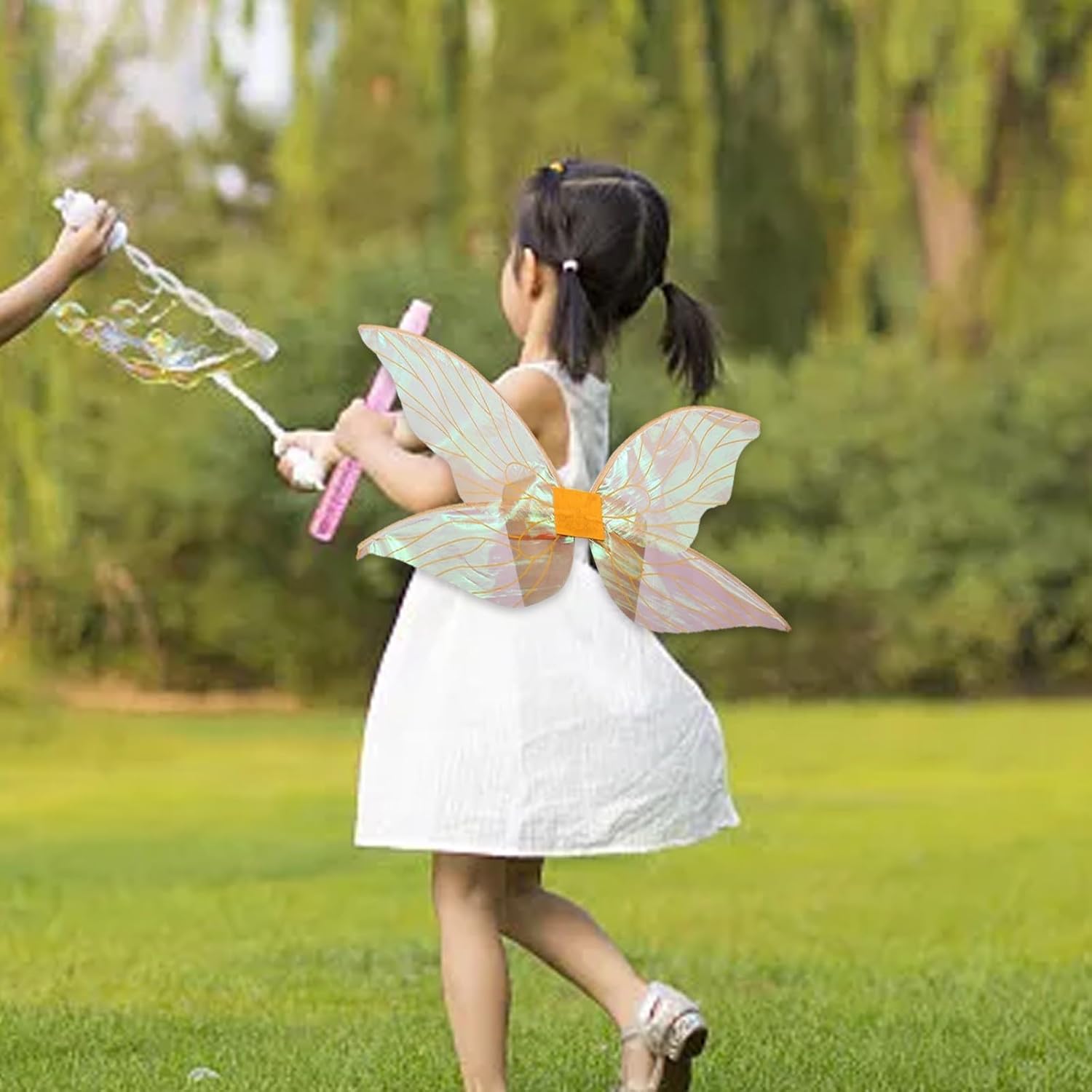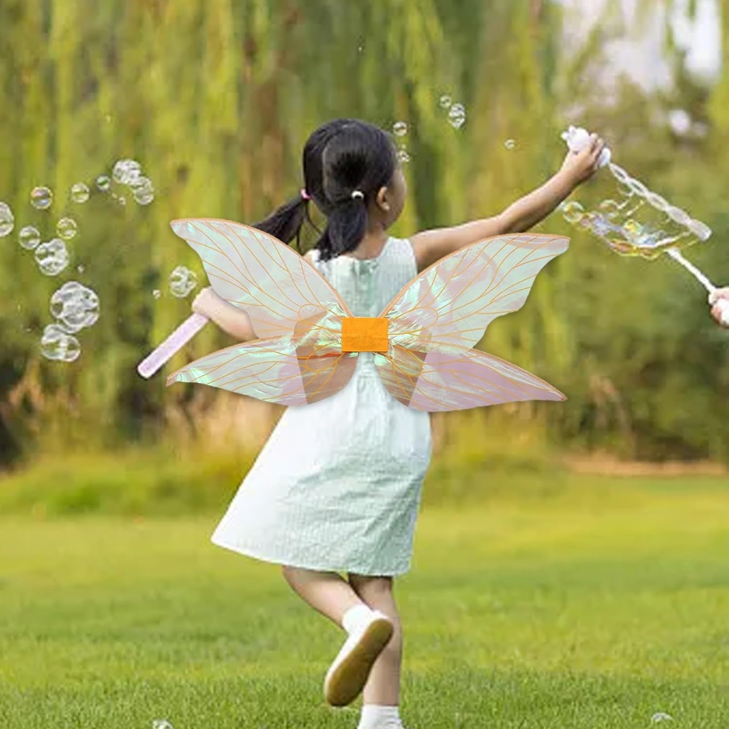 Materiale: realizzato in filato, un design leggero e resistente all'invecchiamento e allo sbiadimento, offre un uso duraturo e una sensazione morbida e confortevole. Design unico: con una forma a farfalla formata da uno scheletro centrale collegato in feltro, queste ali non sono solo morbide e confortevoli, ma anche visivamente accattivanti, creando un look bello e alla moda all'aperto. Multiuso: perfetto per varie occasioni come Halloween, feste in maschera, carnevale, oggetti di scena fotografici, spettacoli teatrali, compleanni, feste di Capodanno e feste in costume, aggiungendo un tocco di fascino e divertimento. Comode da indossare: dotate di spallacci elastici, queste ali a farfalla possono essere facilmente indossate senza il timore di cadere. Il materiale in organza contribuisce alla sfumatura di colore delle ali.