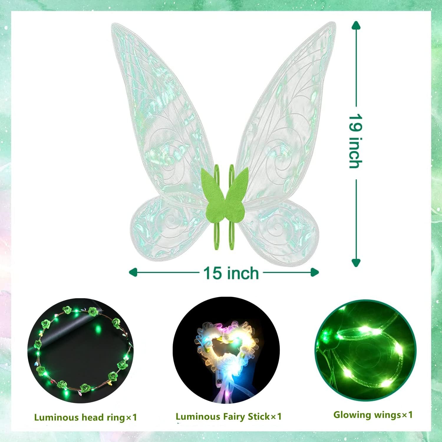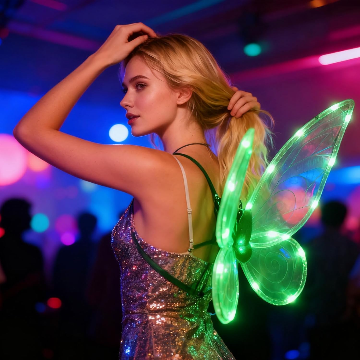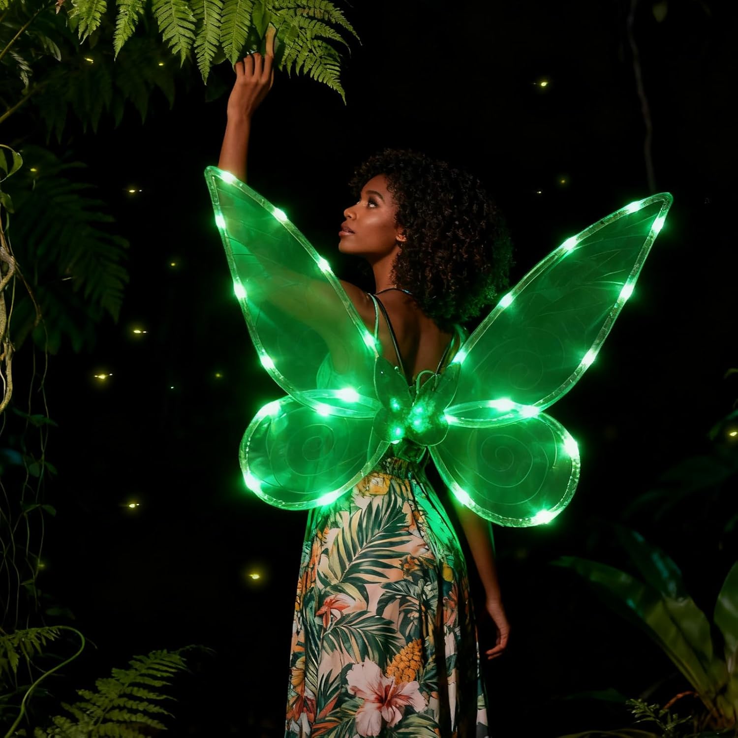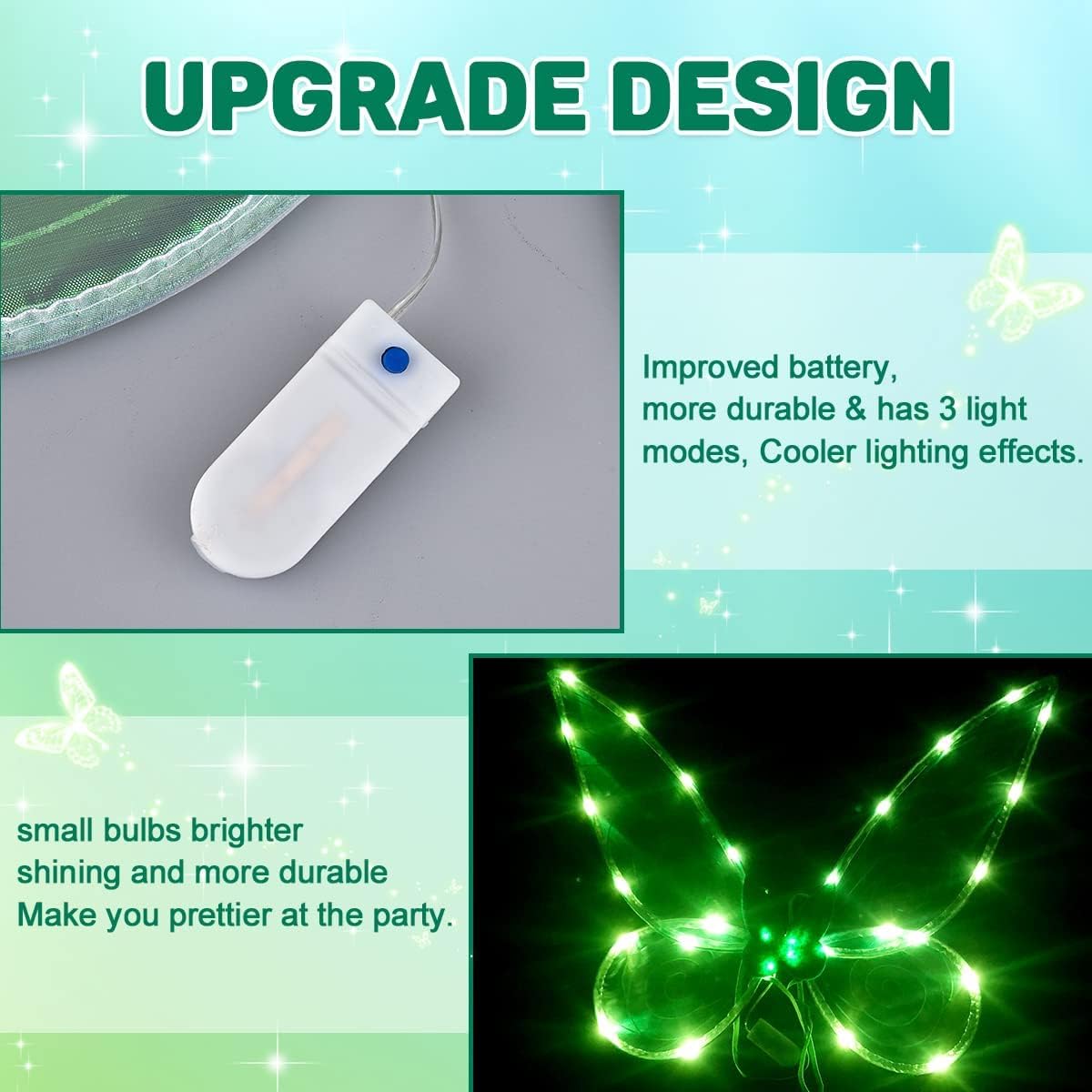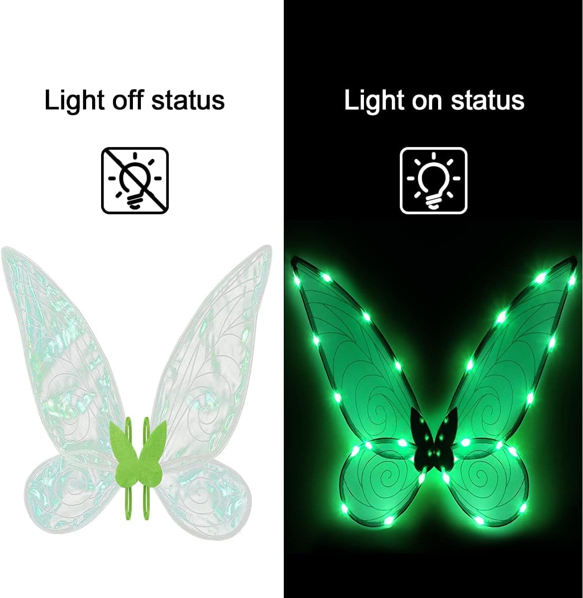 Set di ali di farfalla LED per adulti: Include 1 par di ali di fata luminose, 1 diadema di fata luminosa e 1 bacchetta di fata luminosa. Questi set di ali di farfalla LED vivaci e colorati sono perfetti per mascherarsi, costumi, ballare, cosplay o giochi di ruolo. Le donne con ali di farfalla brillanti saranno le più belle fate farfalla della notte Materiale di qualità: Le ali brillanti sono realizzate in organza di alta qualità (non in rete), resistente all'invecchiamento e al sbiadimento, confortevole e durevole. I colori vivaci si riflettono in luci diverse, facendo sentire le donne e gli adulti come vere fate del bosco e creando momenti indimenticabili Bella fata farfalla di notte: Le ali di fata luminose sono equipaggiate con batterie a bottone sicure e affidabili. Le ali di farfalla con LED brillano di notte, e la donna con ali di farfalla brillanti sarà la più bella fata farfalla della notte Ali di fata per donne: Queste ali di farfalla luminose possono soddisfare i sogni romantici. Con queste ali di fata con luce LED, sembri una vera elfa del bosco o principessa nel castello, come se entrassi in un mondo di fiabe. Ti conferiscono un aspetto magico e misterioso, lasciando bei ricordi Adatto per diverse occasioni: Le nostre belle e vivaci ali di fata, bacchette di fata e diademe di fata sono adatte per Halloween, feste di maschere, carnevale, capodanno, feste di compleanno, capodanno, feste di costumi e altro. Perfette per adulti e donne per indossare, mascherarsi, cosplay, ballare, giochi di ruolo o semplicemente per divertirsi