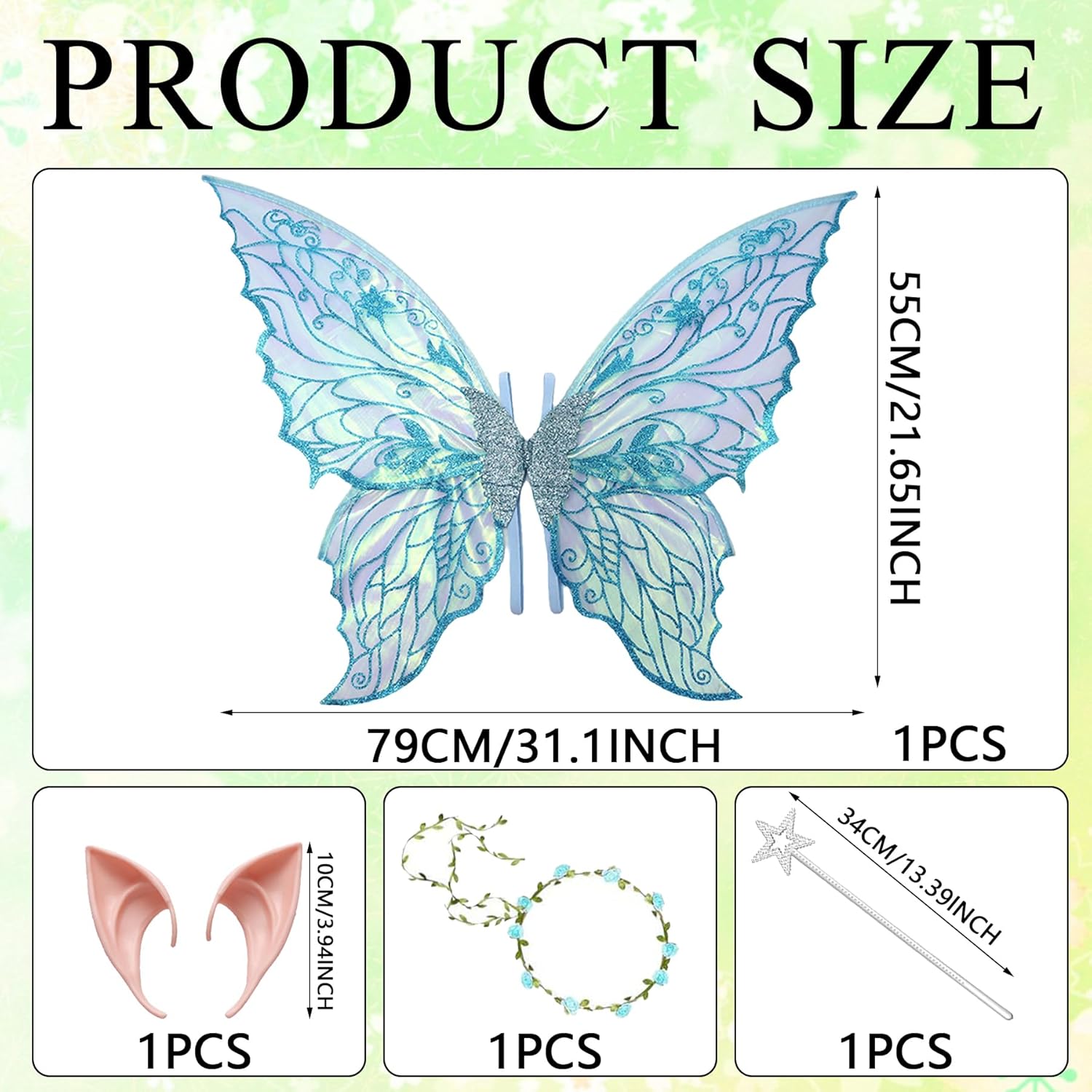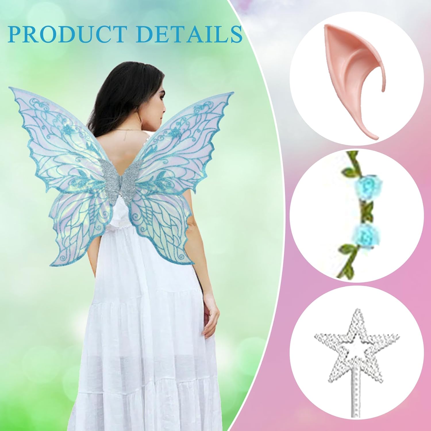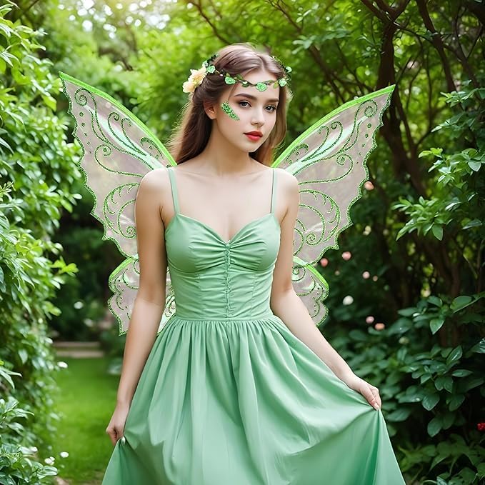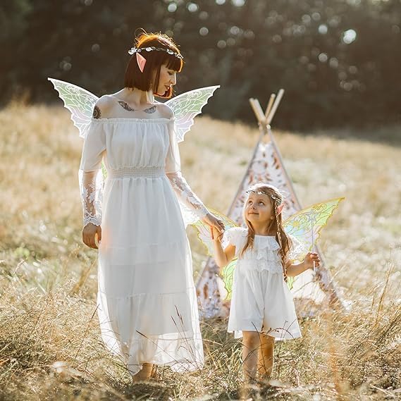 Ali da Fata a Forma di Farfalla,Ali Fata per Adulti e Bambini,Ali di Farfalla,Fairy Wings,con Orecchie da Elfo,Cerchietto da Fata e Bacchette di Fata a Stella,per Feste a Tema Carnevale Halloween