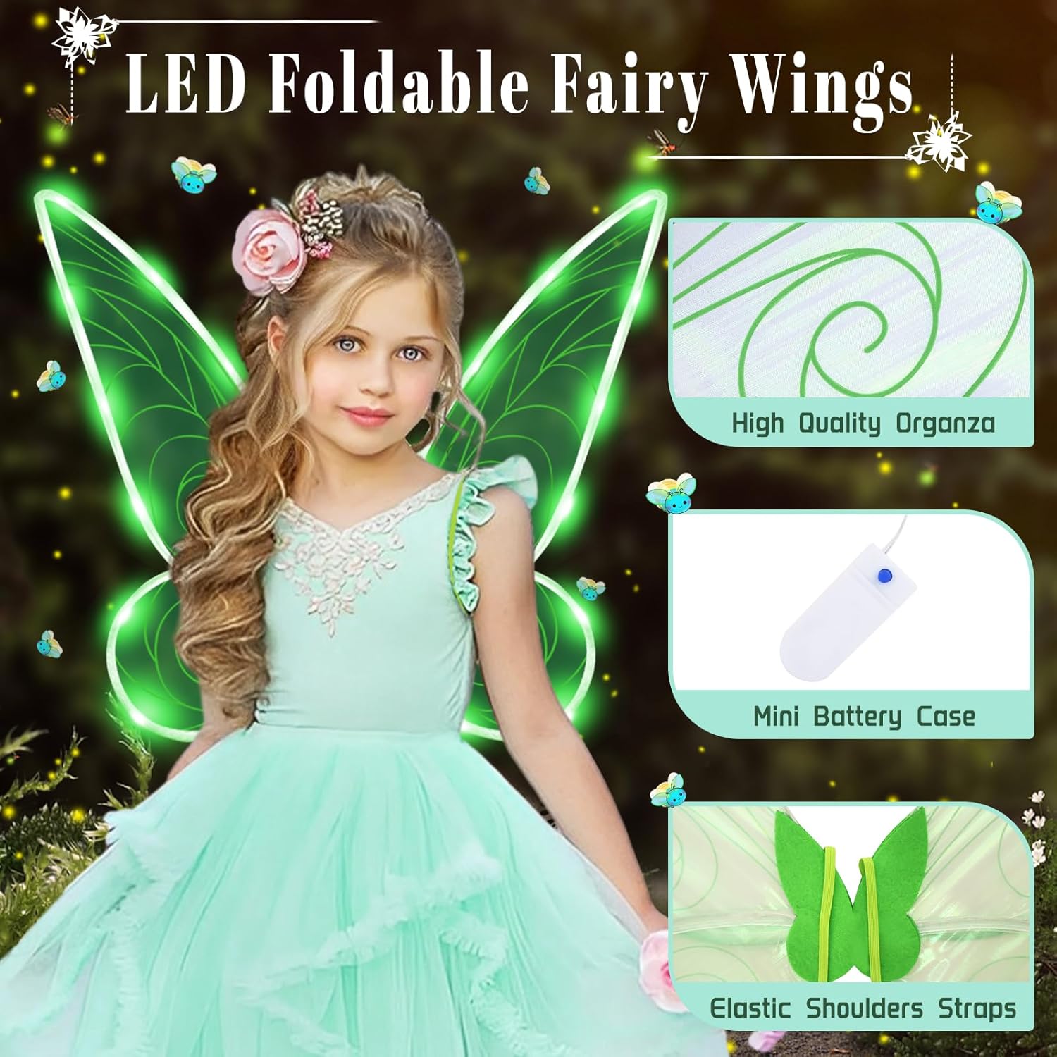 💗3 DESIGN LUCE - Le ali LED sono dotate di batterie a bottone e ali di fata LED e hanno 3 modalità di lampeggiamento della luce delle ali LED che possono essere commutate premendo un pulsante. Le fantastiche ali da donna ti faranno risaltare alle feste. 💗ALI DI FATA GLITTERANTE - Le ali di fata per adulti sono realizzate in organza e hanno un magico effetto glitter che si riflette in diverse condizioni di illuminazione. Le ali della fata verde non sono solo leggere, ma anche riutilizzabili. Il costume da fata per ragazze in organza può essere piegato senza rompersi ed è resistente e leggero. 💗CONTENUTO DEL PRODOTTO - Riceverai 1 ala leggera (60 cm x 48 cm), 1 paio di bastoncini a stella (34 cm), una dimensione che si adatta alla maggior parte delle spalle dei bambini e delle donne. Le luminose ali da fata sono fissate con feltro e due cinghie elastiche per tenerle al sicuro sulla schiena, così non devi preoccuparti che si stacchino mentre corri o balli. 💗UTILIZZO VERSATILE - Le ali da elfo da donna sono adatte per Halloween, costumi da farfalla per bambini, servizi fotografici sulla spiaggia, Natale, carnevale, costume di carnevale da fata femminile, feste delle fate, feste in maschera, feste danzanti, COSPLAY, spettacoli teatrali, costume di carnevale per ragazze, costume Winx Club per adulti o come supporto fotografico. Il design femminile delle ali di fata ti darà un look unico e potrà creare un'atmosfera da sogno. 💗REGALO FATA - Ogni ragazza sogna di diventare una principessa delle fate con le ali. Quando indossi il set di ali di fata luminose per bambini, puoi trasformarti in una graziosa ala di fata e ballare in un mare di fiori per ricevere numerosi complimenti dai tuoi amici. Perfetto per portare gioia e buon umore alla tua piccola principessa e renderti più affascinante ed elegante.
