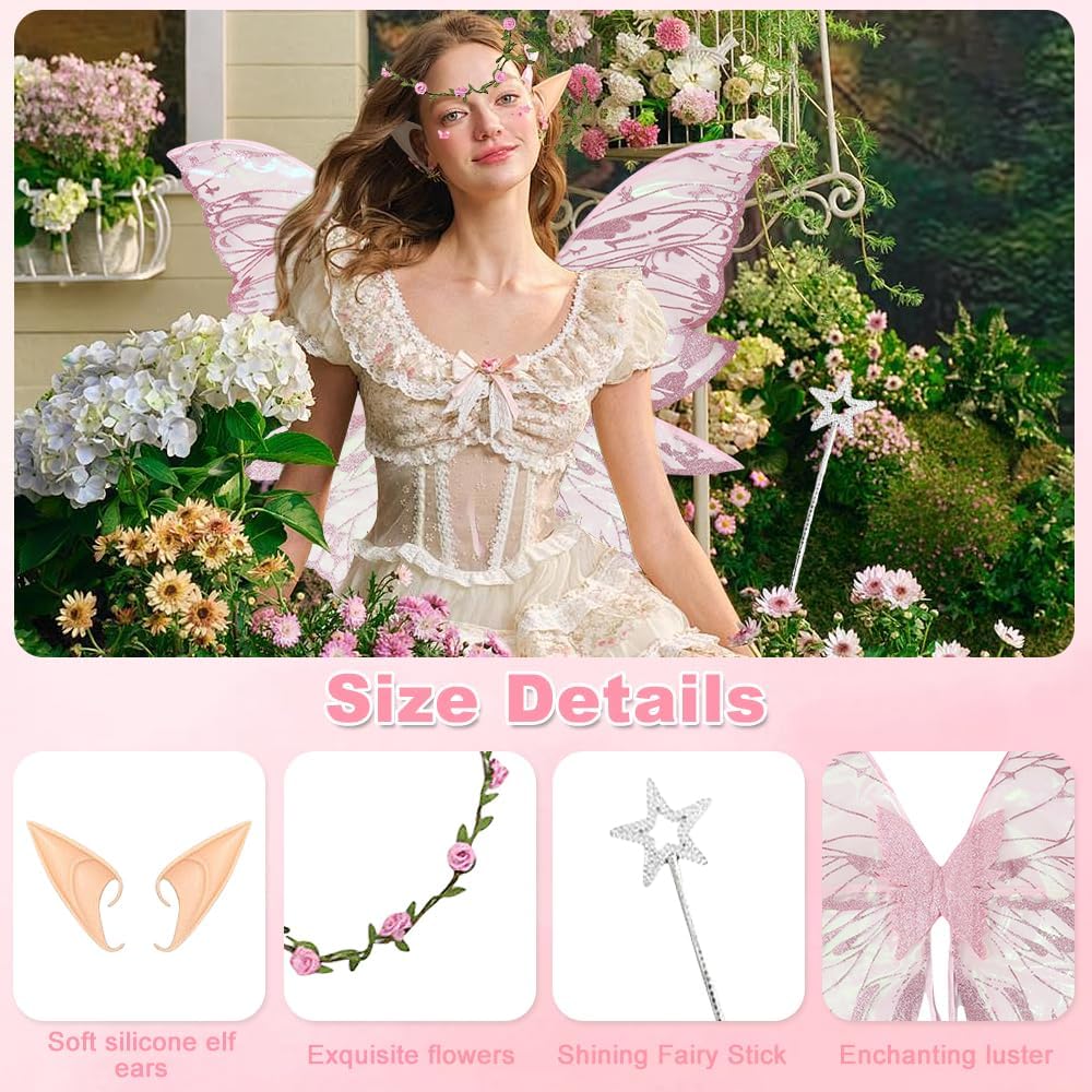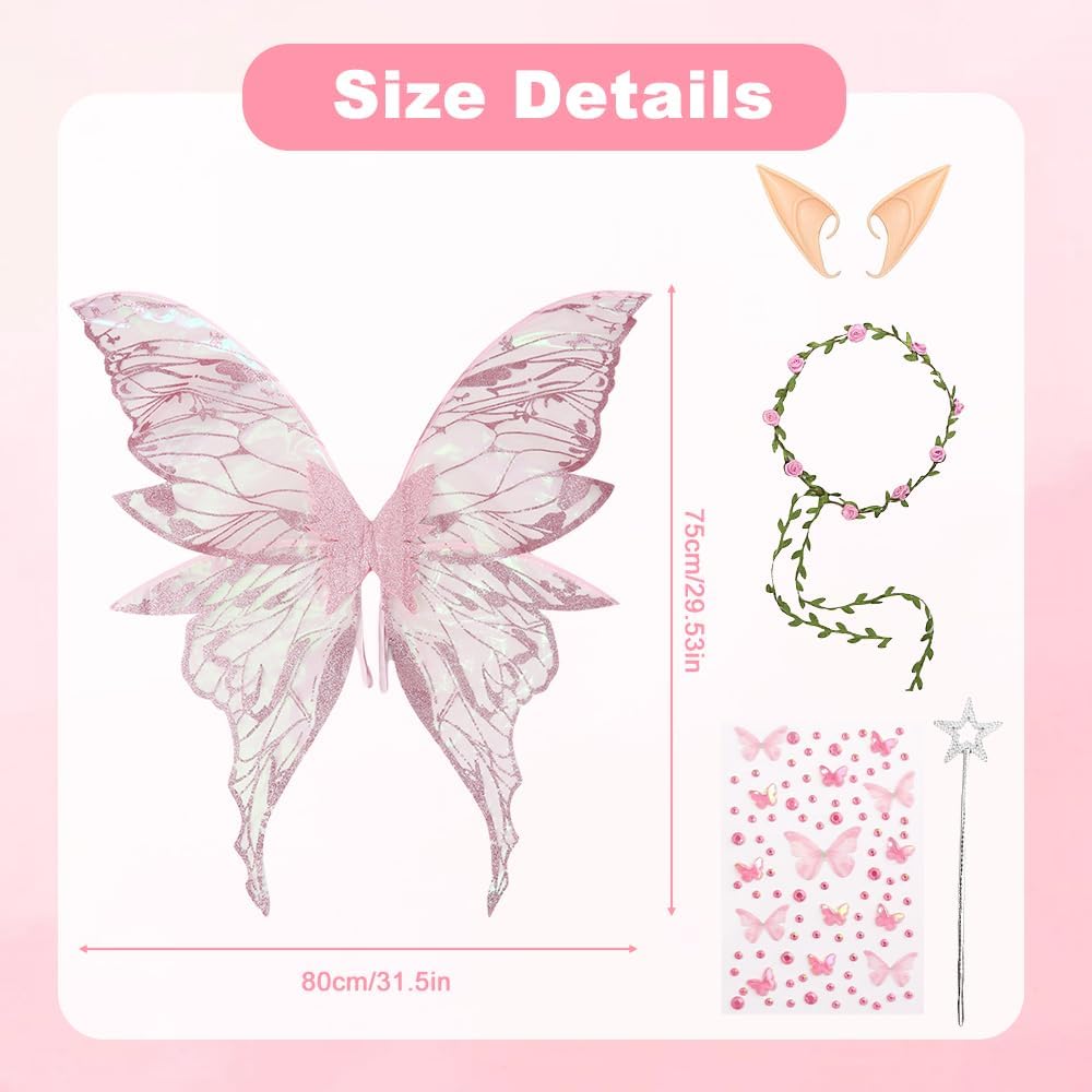 【Set di ali di farfalla】Ali di farfalla per bambini include un'ala di farfalla, un copricapo a ghirlanda, un paio di orecchie da fata, una bacchetta magica a forma di stella a cinque punte e un adesivo a forma di farfalla. Che si tratti di una bambina o di una bambina più grande, indossare questo paio di ali leggere può trasformarla in un'elegante fata dei fiori. C'è una foresta fatata nascosta nel cuore di ogni bambina e questo set ali da fata per adulti e bambin è la chiave per aprire la porta dei sogni. È un'ottima scelta per godersi il tempo delle fiabe o per inviarlo agli altri per esprimere i propri auguri! 【Materiale di alta qualità e sicuro】 Ali di farfalla per bambini è realizzato in organza, leggera e traspirante, con una delicata lucentezza, come se avesse un proprio spirito fatato. La struttura interna a cerchio è robusta e non si deforma facilmente. ali da fata per adulti e bambin è molto adatto a bambine e donne, facendo sentire le bambine come vere fate delle fiabe, lasciando dolci ricordi d'infanzia. 【Ali di fata regolabili】 Ali da fata per adulti e bambin è dotato di elastici, che possono facilmente regolare la tenuta di spalle e schiena. Anche se corri e giochi, si adatta alla tua corporatura e non è facile da allentare. Allo stesso tempo, mantiene la flessibilità, permettendoti di regolare l'angolazione delle ali a piacimento e di mostrare la postura più elegante. 【Adatto a tutte le età】 Le ali sono progettate con cura, lunghe 80 cm e larghe 75 cm, ali da fata per adulti e bambin si adattano perfettamente a diverse corporature, che siano bambini o adulti, e possono trovare il proprio stile fatato. Quando e dove vuoi, è il momento migliore per recitare le fiabe, in modo che ognuno possa avere la propria festa fatata. 【Adatto a varie occasioni】 Questo set di ali da fata per adulti e bambin è un elemento fondamentale per i travestimenti da festa! Che si tratti di Halloween, carnevale, festa di compleanno, mascherata, fotografia a tema o spettacolo teatrale, può renderti al centro dell'attenzione del pubblico in un istante. Ali da fata a forma di farfalla è anche un ottimo regalo, in modo che anche il destinatario possa provare la sorpresa della fiaba.