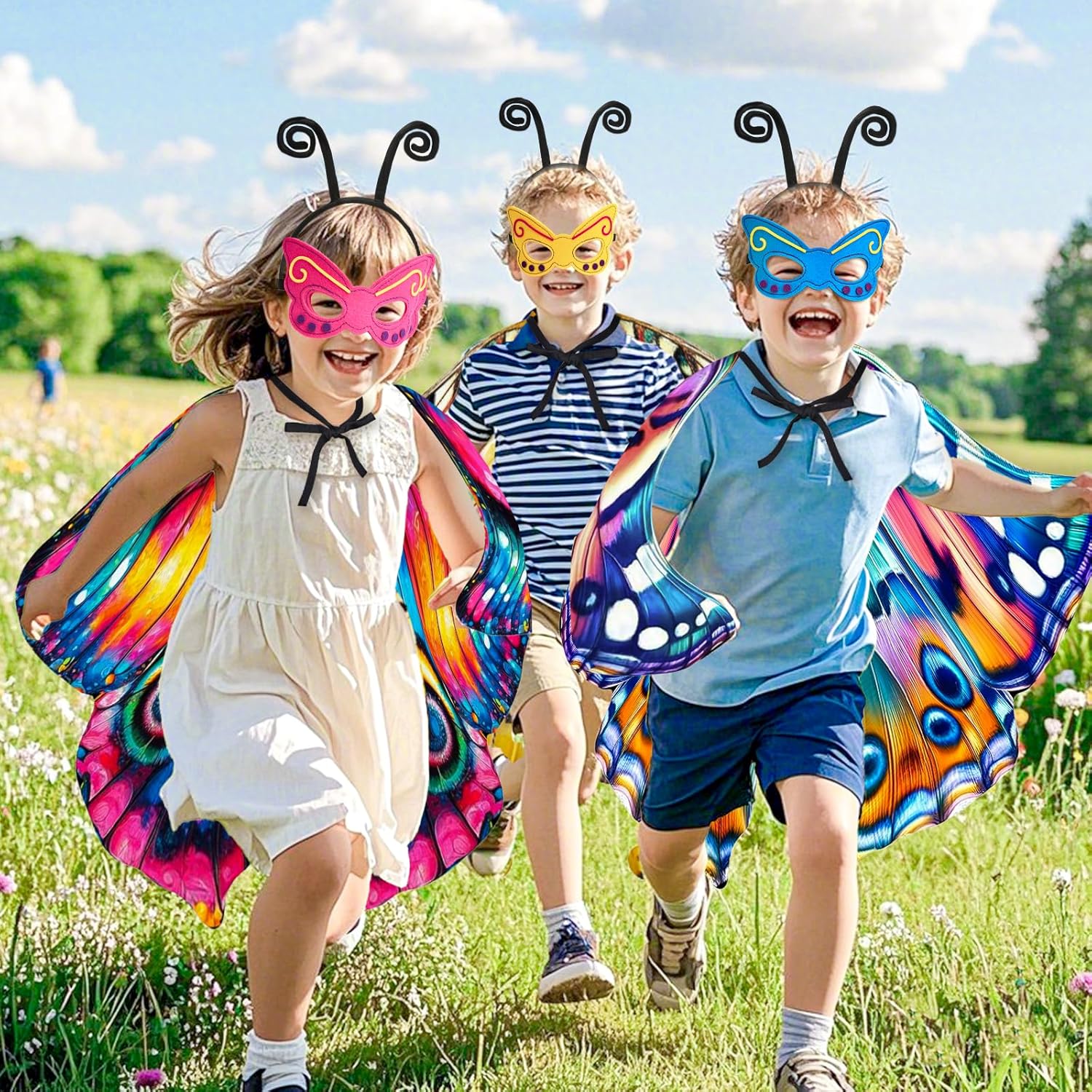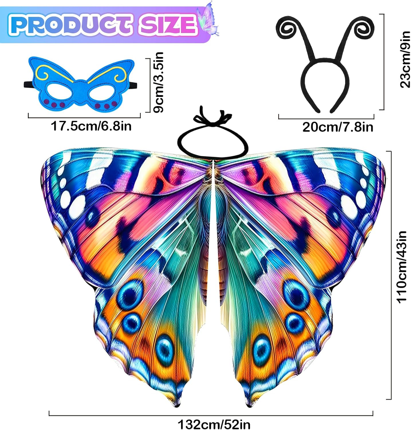 1. [Set completo di costumi da farfalla in stile magico] Questo set di costumi da farfalla di alta qualità include un soffice mantello da farfalla, una fascia scintillante con antenne e una maschera mistica, il tutto perfettamente coordinato. Le ali con dettagli trasformano la tua bambina in una magica fata farfalla. Materiale leggero (solo 100 g) per il massimo comfort! 2. [Qualità premium per la pelle delicata dei bambini] Realizzato in poliestere morbido e traspirante, particolarmente delicato sulla pelle e ipoallergenico. Gli anelli elastici sulle ali garantiscono una vestibilità perfetta, mentre la maschera regolabile con elastico morbido assicura una vestibilità senza pressione. Facile da pulire: lavabile in lavatrice a 30°C. 3. [Esperienza di gioco di ruolo magico] Con le ali che svolazzano naturalmente e la fascia scintillante, il tuo bambino si sentirà una vera farfalla! Perfetto per giochi di ruolo fantasiosi che promuovono la creatività e la fiducia in se stessi. Le parti rimovibili consentono numerose possibilità di trasformazione: da una delicata fata a una misteriosa principessa da ballo in maschera. 4. [Adatto a tutte le occasioni] Questo costume da ali di farfalla per bambini è molto adatto ai bambini in varie occasioni, come carnevale, festa di Halloween, Natale, festa di compleanno a tema farfalla, spettacoli teatrali, gite scolastiche primaverili, giochi di ruolo con gli amici. I bambini possono esplorare la meravigliosa natura in qualsiasi momento! 5. [REGALO PERFETTO, QUALITÀ GARANTITA] Confezionato in un'elegante scatola regalo: un regalo ideale per bambine di 3 4 5 6 7 8 9 10 anni. Se riscontri qualche problema, ti preghiamo di comunicarcelo tempestivamente. Offriamo un servizio clienti che risolverà i tuoi problemi e garantirà a te e ai tuoi bambini un divertimento senza pensieri!