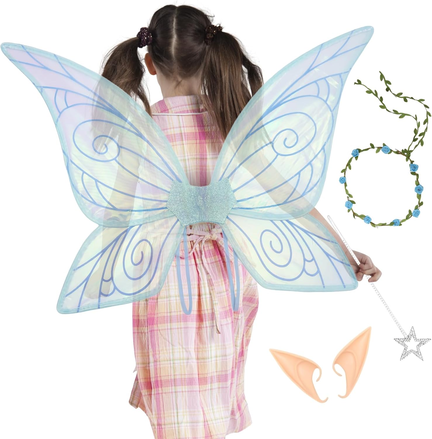 MULTIUSO: perfetto per feste da principessa delle fate, feste in costume di Halloween, feste di compleanno e matrimoni a tema. Aggiunge magia giocosa ad ogni occasione e promuove esperienze indimenticabili attraverso una facile integrazione in varie celebrazioni. Ideale per giochi di ruolo ed eventi a tema. Comode tutto il giorno: grazie al materiale leggerissimo, queste ali da elfo ti permettono di indossarle tutto il giorno senza disagio. Perfetto per eventi lunghi come feste di compleanno o sfilate di carnevale senza causare affaticamento. Utilizzo confortevole: facile da indossare e vestibilità comoda garantiscono un utilizzo semplice per bambini e donne in festival, giochi in costume o giochi creativi in qualsiasi momento. Qualità affidabile: le ali si muovono liberamente e rimangono fissate tramite cinghie elastiche. Offre durevolezza affidabile e flessibilità per una lunga durata senza disagio Divertimento da favola: i bambini si divertono con la principessa che è in loro con questo set di ali di fata durante l'incantevole gioco di ruolo di Halloween che ispira gioia e consente avventure fantasiose