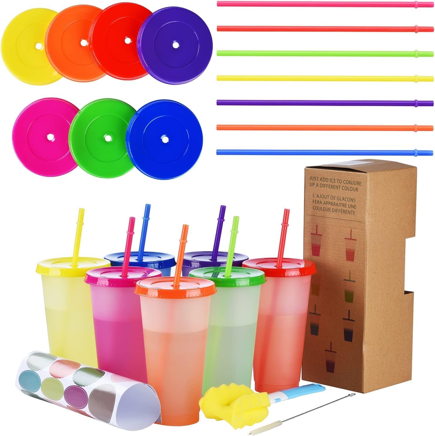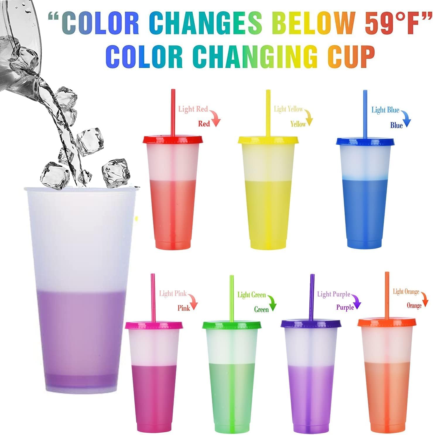 CAMBIAMENTO DI COLORE: se metti le tue bevande fredde preferite e cubetti di ghiaccio in questi bicchieri di plastica fredda, questi bicchieri cambieranno magicamente colore. SUGGERIMENTI: Versare cubetti di ghiaccio e bevande nelle tazze a temperatura normale e cambierà colore, la temperatura inferiore a 59 °F cambierà anche il colore della tazza (soprattutto in inverno) 7 divertenti colori pasta: tazza sfusa e cambio colore tazza con labbra e cannucce, il miglior regalo per le vostre famiglie e amici, perfetto per la vostra festa, anche. Fai da te: bicchieri, coperchi e cannucce colorati, puoi combinare liberamente a seconda di ciò che ti piace, e puoi incollare i tuoi adesivi adesivi preferiti su questi bicchieri riutilizzabili che cambiano colore. ANTIRAGGI E FACILE DA PULIRE: questi bicchieri, coperchi e cannucce da 24 oz sono realizzati con materiali di alta qualità per uso alimentare, senza BPA e facili da pulire. Si prega di coprire il coperchio con un po' di forza per proteggere dagli spruzzi d'acqua Design conveniente: queste tazze con labbra e cannucce, le tazze e i coperchi sono impilabili per risparmiare spazio, rendendoli comodi da trasportare ovunque quando si va a giocare