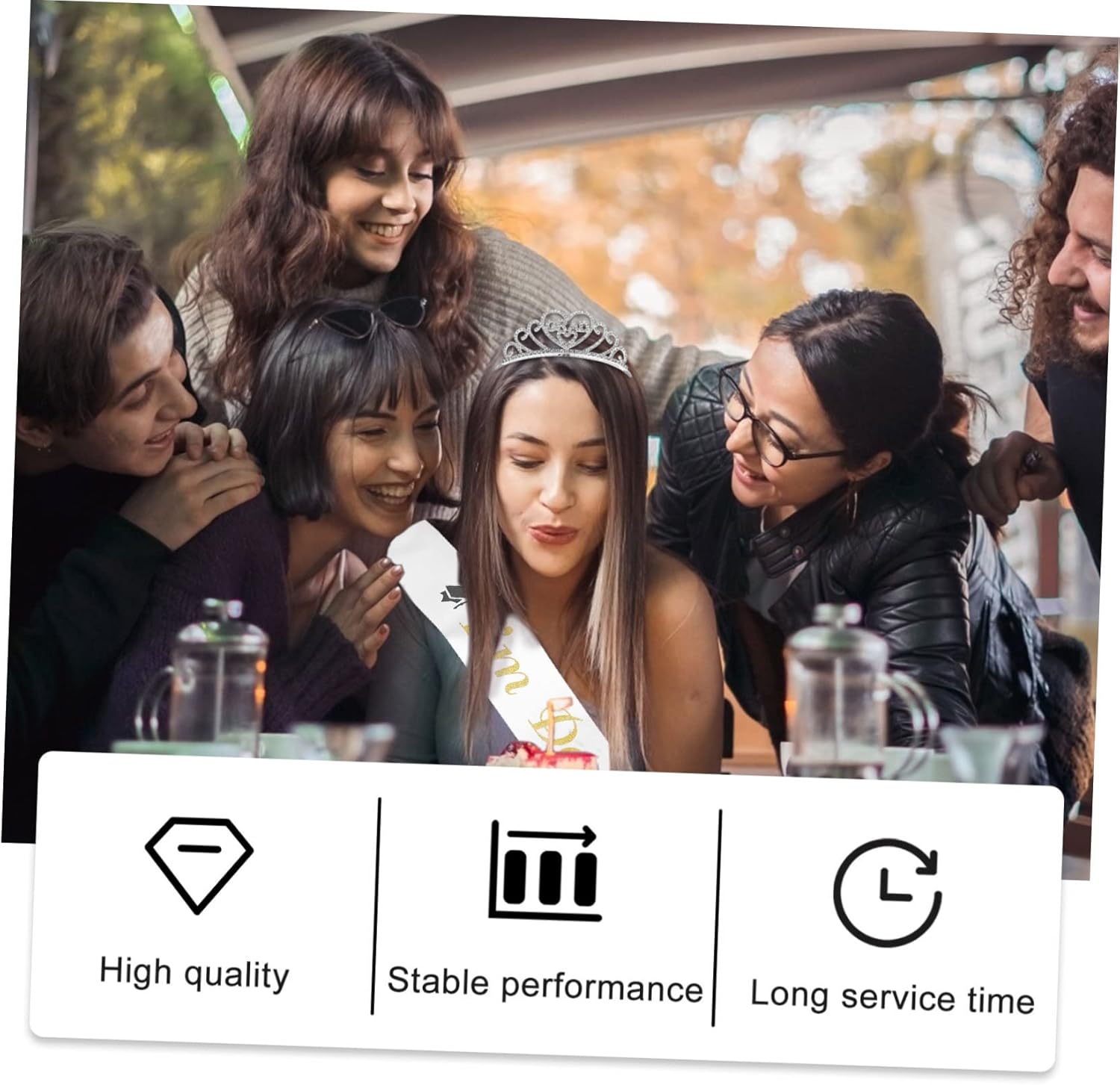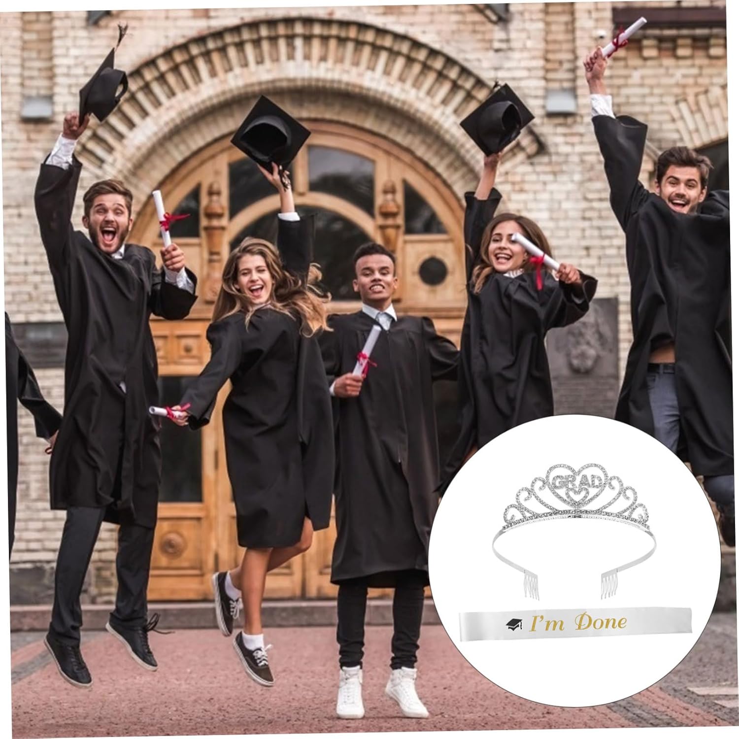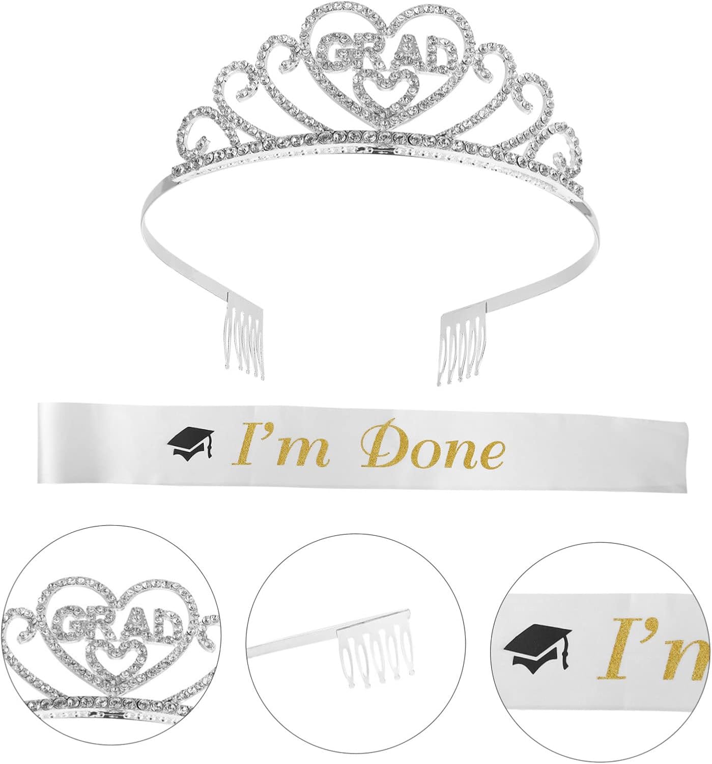 Il pacchetto include 1 x tracolla 1 x fascia per Caratteristiche - Dimensioni: 13,5x13,5x4,5 cm/5,31x5,31x1,77 pollici Accessori per laureate -Materiale: Forniture per feste di laurea in raso - di laurea realizzata in materiale di prima qualità, per un uso sicuro. - Può anche essere un buon accessorio fotografico per scattare delle foto significative con il costume per la festa di laurea. - Perfetto per feste di laurea a tema. - Cintura di galateo per la laurea stampata con lettera a tema laurea e colori vivaci. - Rendi la tua festa di laurea più attraente e interessante, regalandoti un indimenticabile. Taglia unica per la maggior parte delle persone. Forniture per ragazze laureate. Informazioni sulle merci Accessori per la laurea: la tiara è stata realizzata con strass decorativi per completare il look classico! Esalta il volto di un'amica o di un parente con questa tiara creativa, oppure regalala a una parente per rendere la sua festa di laurea ancora più memorabile.