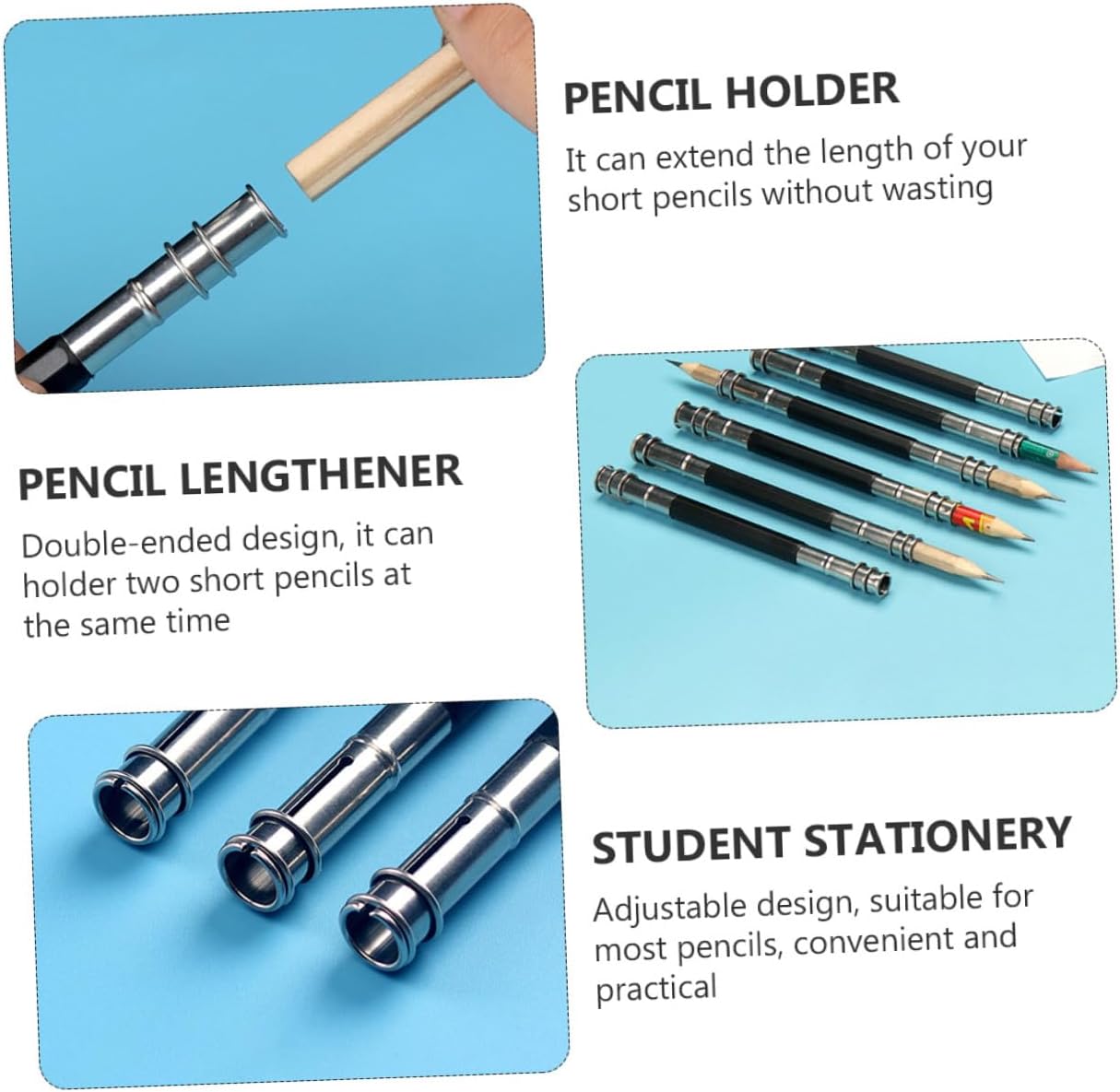 Portapenne per scrivania: design a doppia estremità, può contenere due matite corte contemporaneamente, allunga matite Portapenne per scrivania - realizzato in acciaio inossidabile, resistente e pratico da usare, portapenne Estensori per matite: leggeri e compatti, perfetti per casa, scuola, ufficio, ecc., portamatite Porta-matite estensibile: il regalo meraviglioso per i tuoi amici, , compagni di classe o altre persone per il loro compleanno, natale e per l'uso quotidiano, estensore per Porta prolunga per : adozione di materiale in acciaio inossidabile di alta qualità, robusto e durevole per un uso a lungo termine, prolunga per