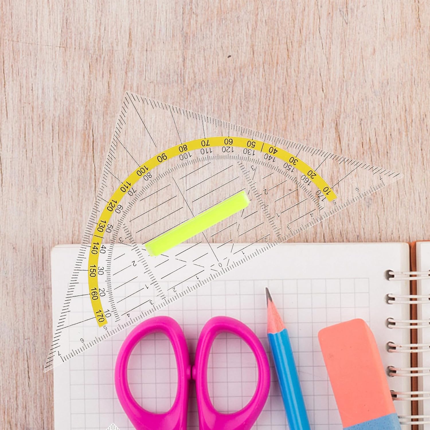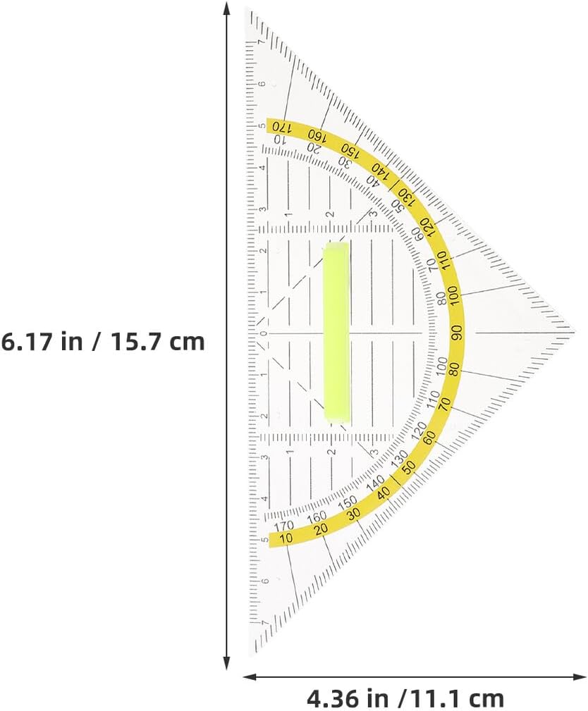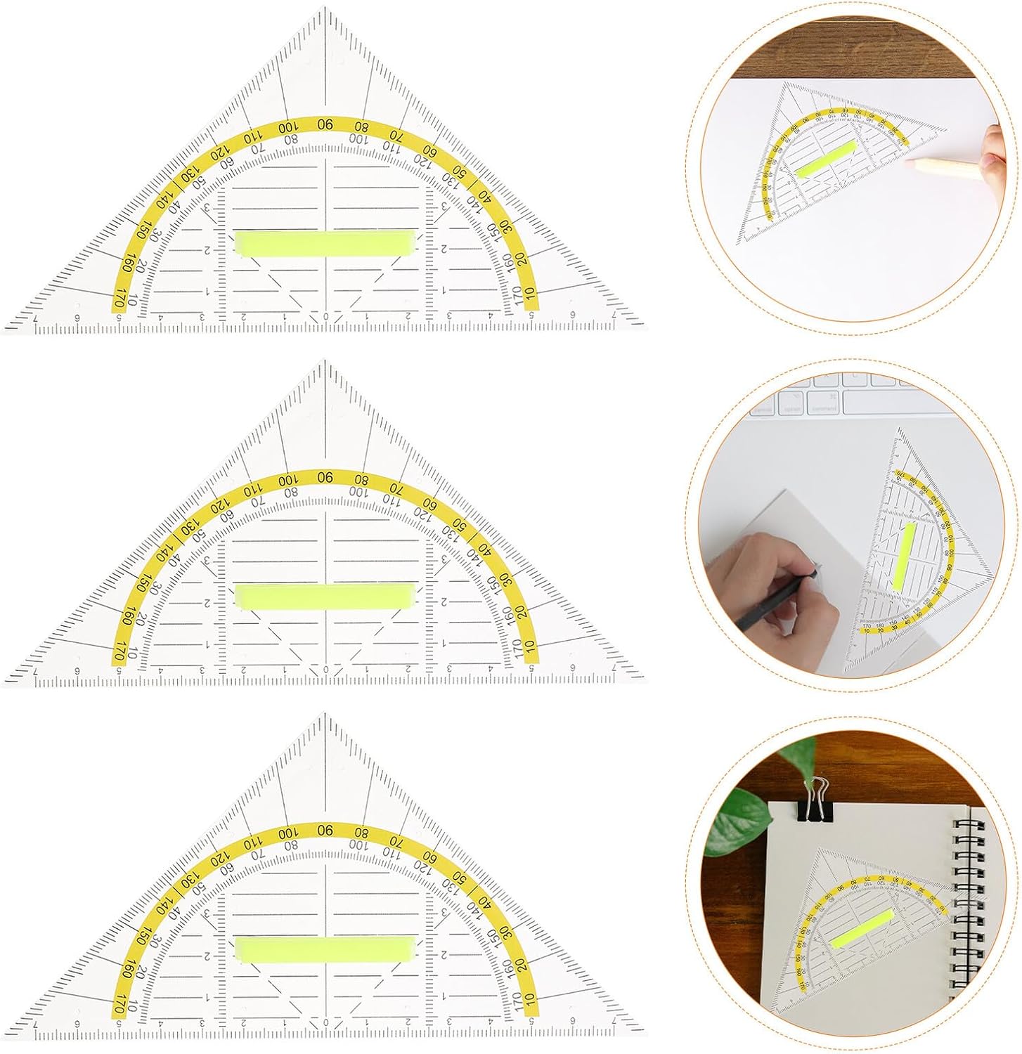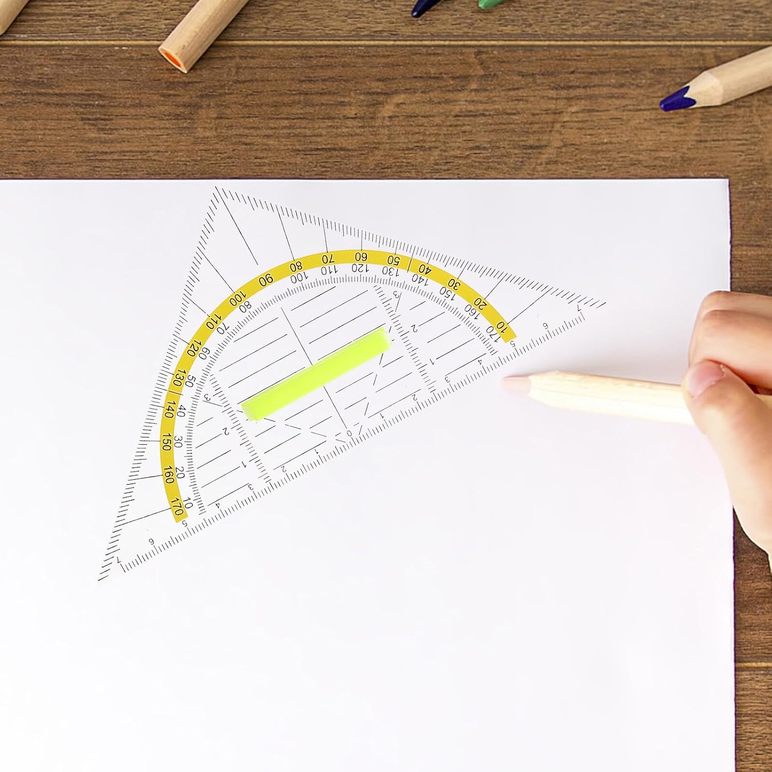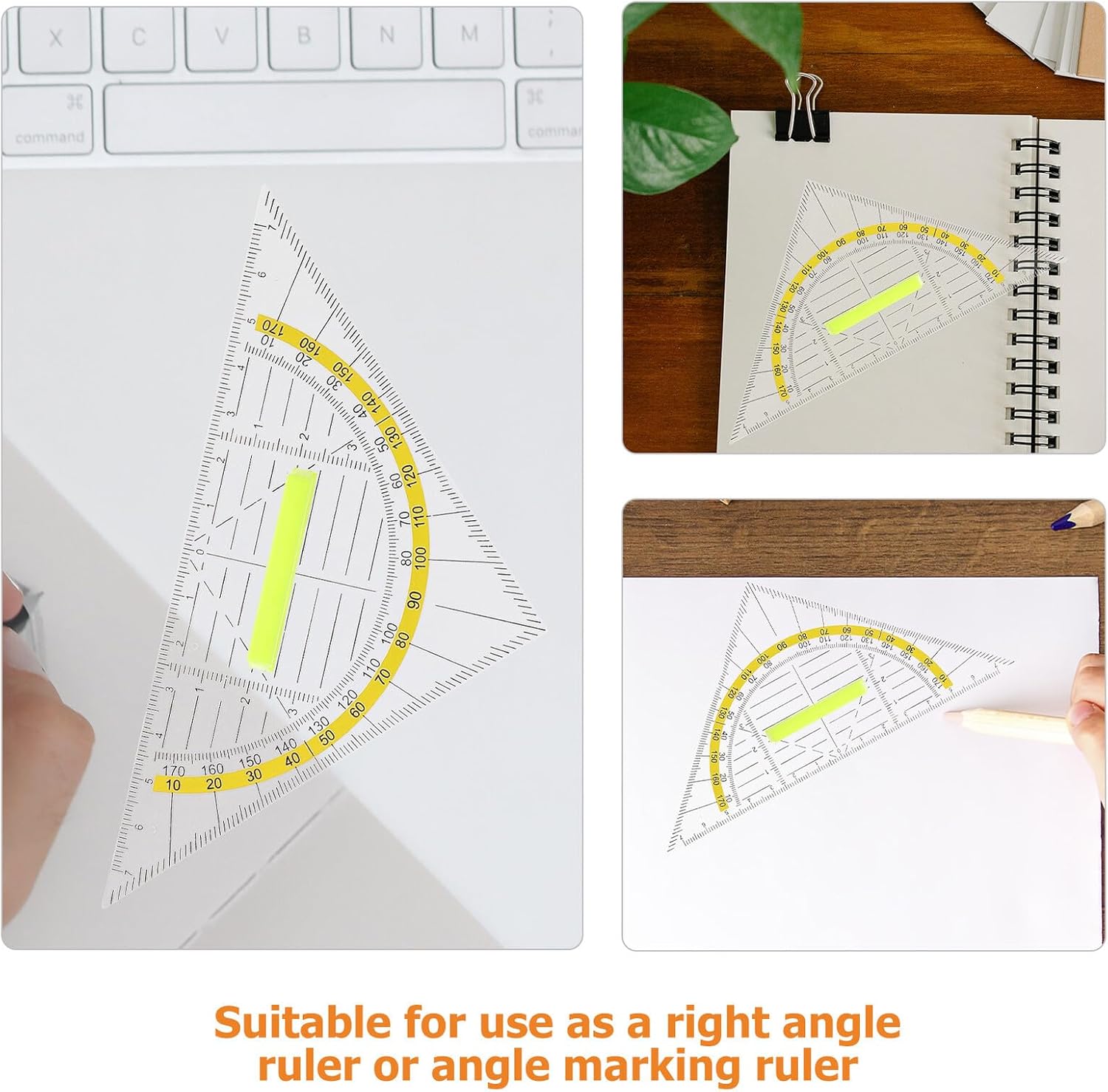 Impugnatura ergonomica: il righello triangolare in plastica è dotato di un'impugnatura multifunzionale che consente movimenti e stabilità senza sforzo, supportando attività in classe, ingegneria e attività di misurazione accurate, kit da disegno, scala ingegneristica Uso professionale per studenti: i set di righelli triangolari in plastica leggera sono pensati per compiti scolastici che per compiti di ingegneria, soddisfacendo ogni esigenza di classe e di progettazione, kit di disegno per ingegneri, righello di ingegneria Durata: i righelli geometrici sono realizzati in plastica trasparente per un uso ripetuto, garantendo che il set di righelli triangolari rimanga preciso per progetti di geometria, disegno o disegno, righello triangolare multifunzionale, righello da disegno Comodità: questo kit di disegno portatile per ingegneri è abbastanza compatto da stare nella tua borsa, così puoi eseguire attività di misurazione multi-angolo con il righello triangolare ovunque tu vada, righello geometrico, kit geometrico Funzionalità 2 in 1: questo set di righelli geometrici un righello da disegno e un goniometro per uso scolastico, soddisfacendo le esigenze in , uffici e progetti di ingegneria con un unico pratico kit, forniture per misurazioni da ufficio, forniture scolastiche