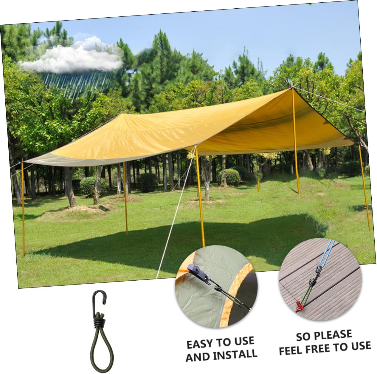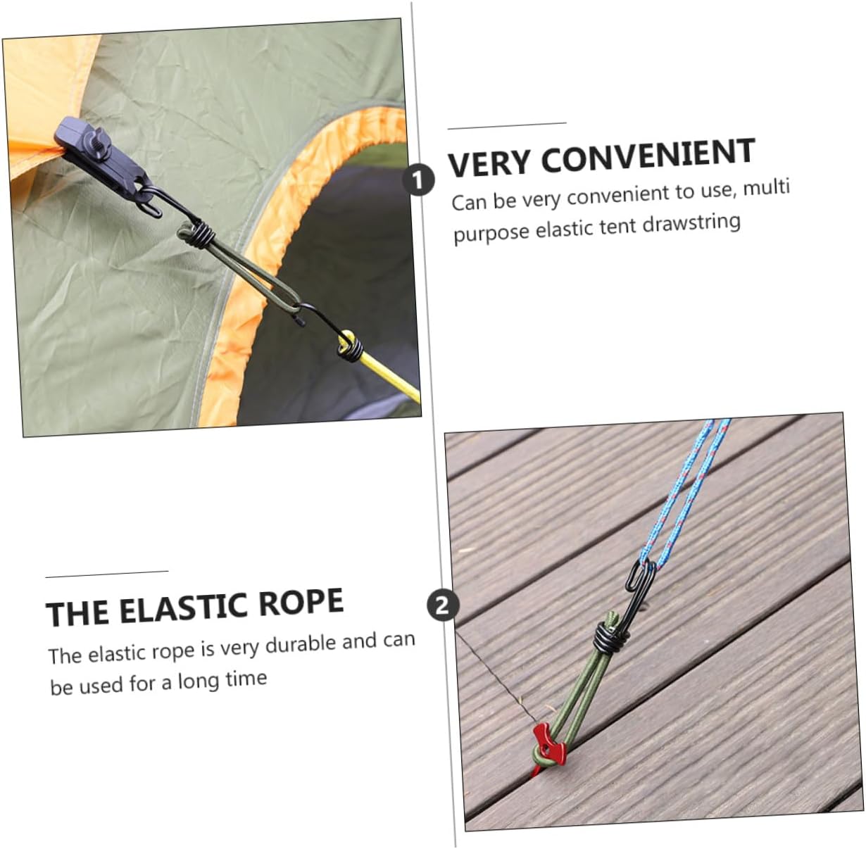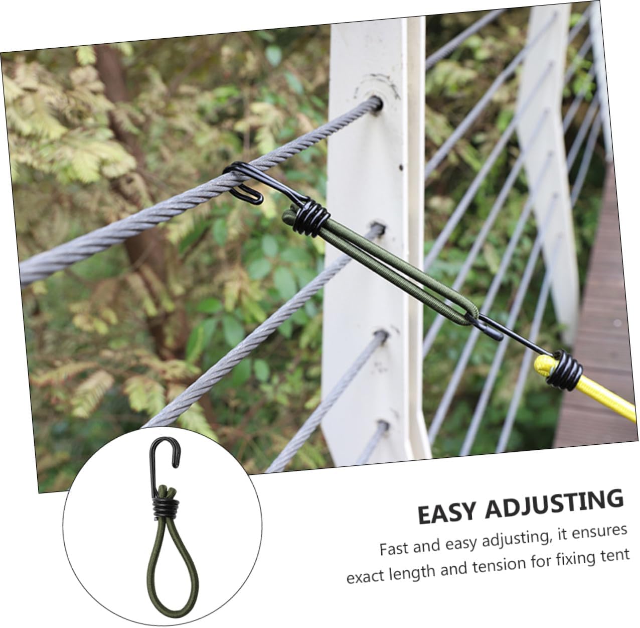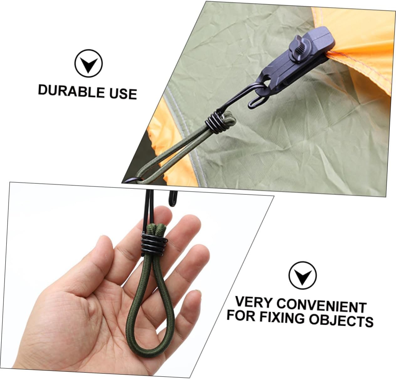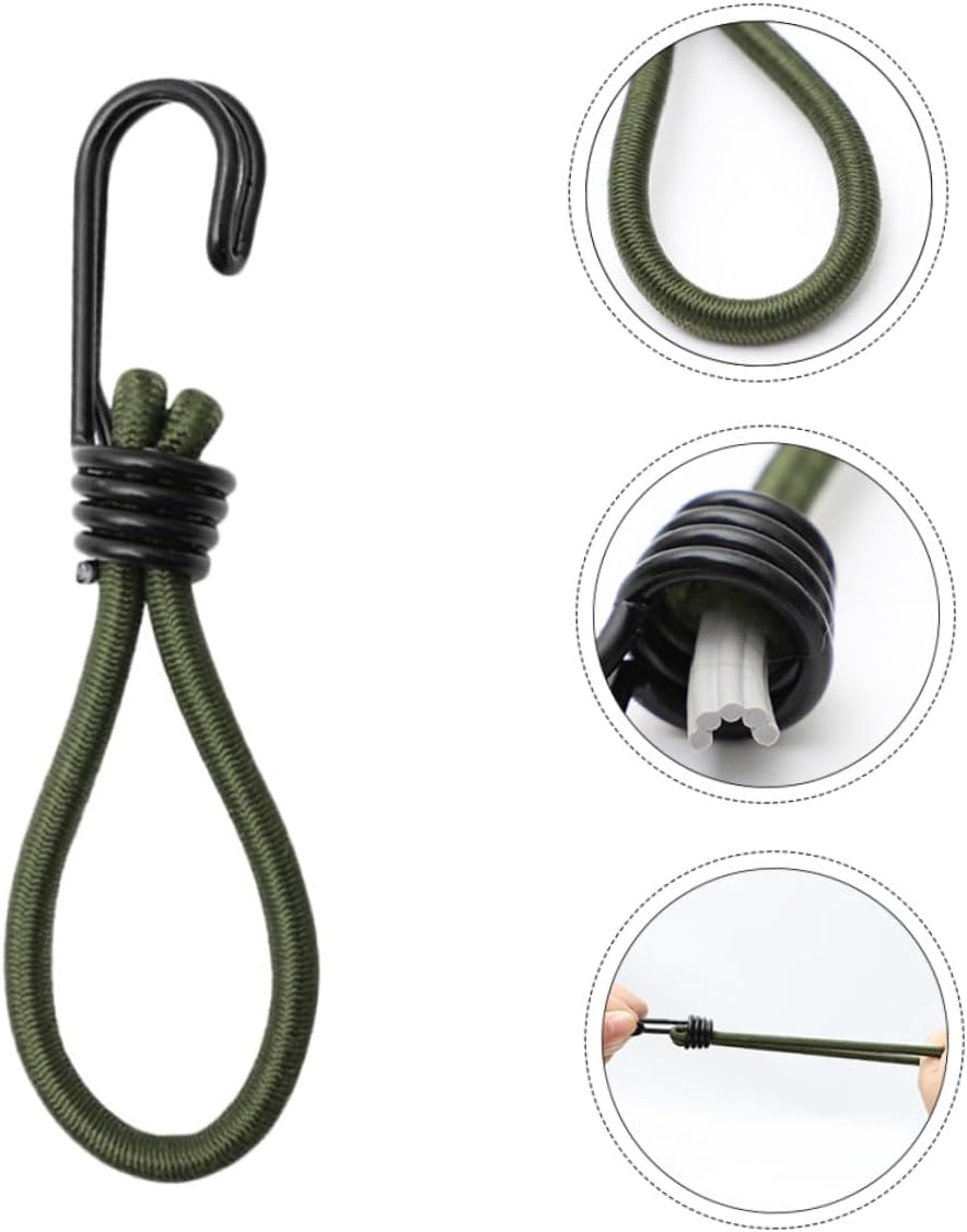 Gancio per cavo di fissaggio: per viaggi, campeggio, kayak, ciclismo, caccia ecc., gancio per da campeggio Fibbia in corda elastica: adozione di, e durevole per un uso a lungo termine, accessori da campeggio Forniture da campeggio: adatte per uso interno ed esterno, come il fissaggio di bagagli dietro motociclette o biciclette, il fissaggio di tende da campeggio, ecc., gancio per corda di trazione Gancio per da campeggio all'aperto: la corda è realizzata in lattice, che è molto , non preoccuparti di romperla perché la corda sopporta troppa tensione, la nostra corda elastica può sopportare una di trazione maggiore rispetto alla normale corda elastica, fibbia a gancio Attrezzi da campeggio all'aperto: sono durevoli, flessibili, hanno una buona presa e sono molto resistenti, ganci per tende da campeggio