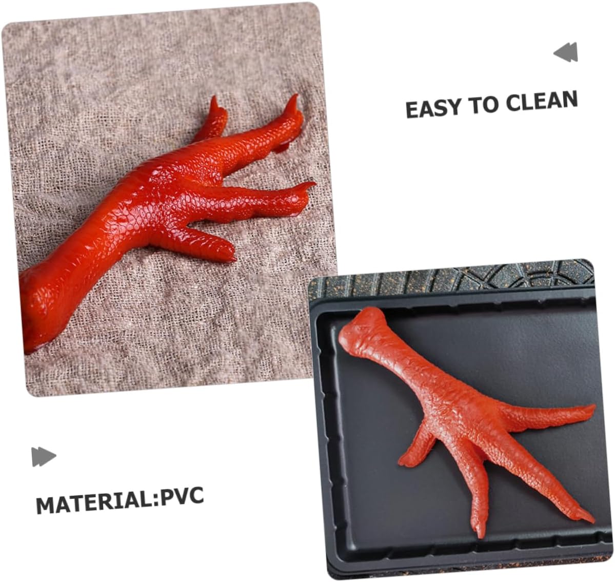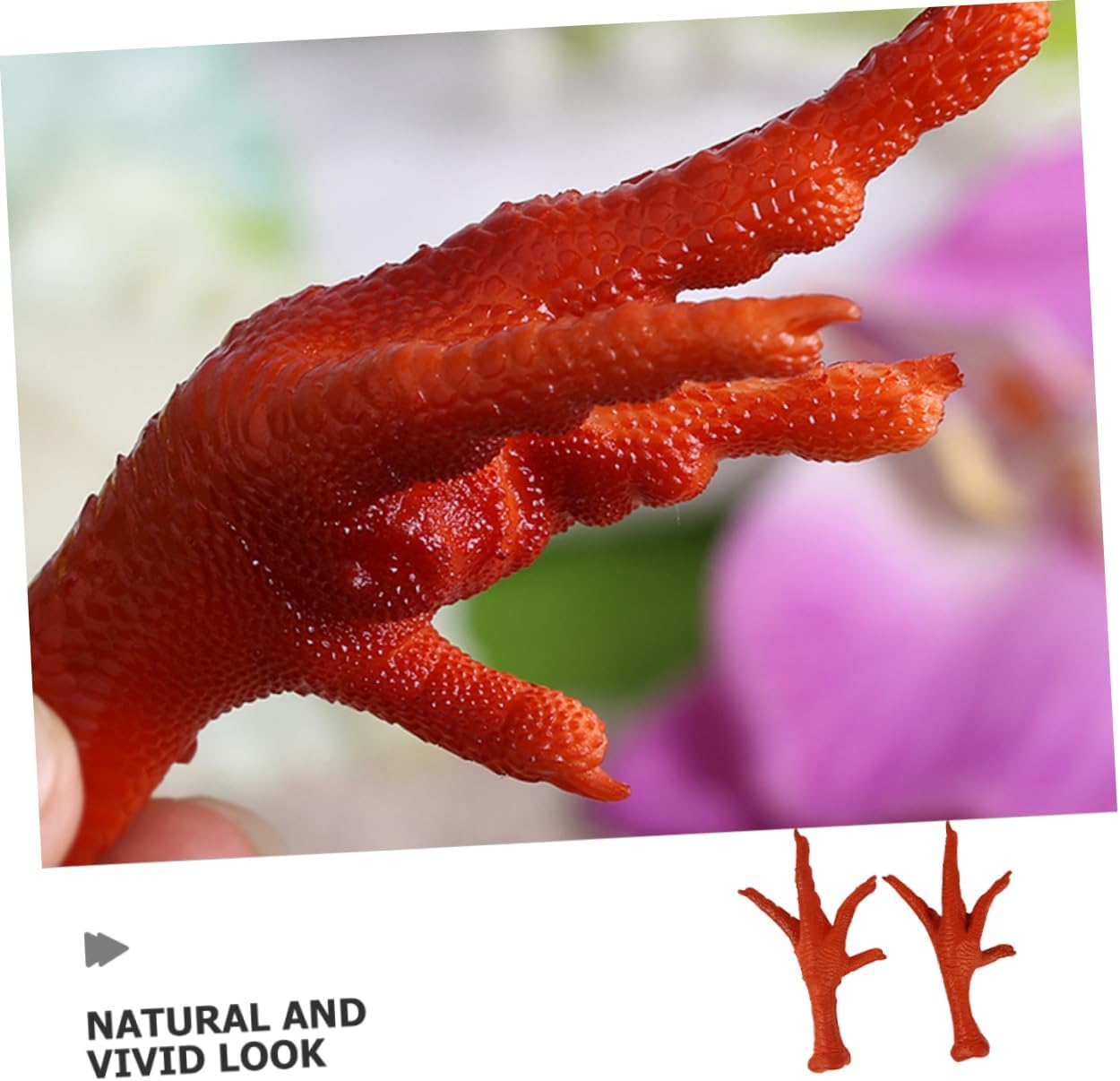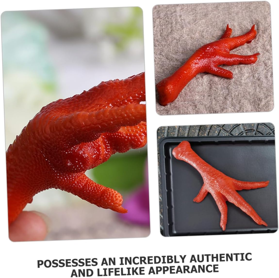 Modello di esposizione di cibo: versatile: il modello di zampe di pollo è adatto per la decorazione domestica, oggetti di scena fotografici, espositori per stanze modello, ornamenti di zampe di pollo finte Modello alimentare decorativo: pregevole fattura: pregevole fattura con aspetto attraente e realistico, un bel arredamento per la tua casa, giocattolo alimentare in plastica per bambini Modello di cibo artificiale: decorazioni per la casa: aggiunge un tocco distintivo e piacevole a qualsiasi arredamento della casa, apportando un elemento giocoso e unico all'atmosfera generale, cibo simulato Zampe di gallina realistiche: decorative: il design dall'aspetto bello e realistico è molto attraente e decorativo, un buon supporto da vetrina, supporto per zampe di gallina Cibo finto: versatile: adatto per una di scopi e può essere utilizzato in vari contesti, rendendolo altamente versatile, simula le zampe di gallina