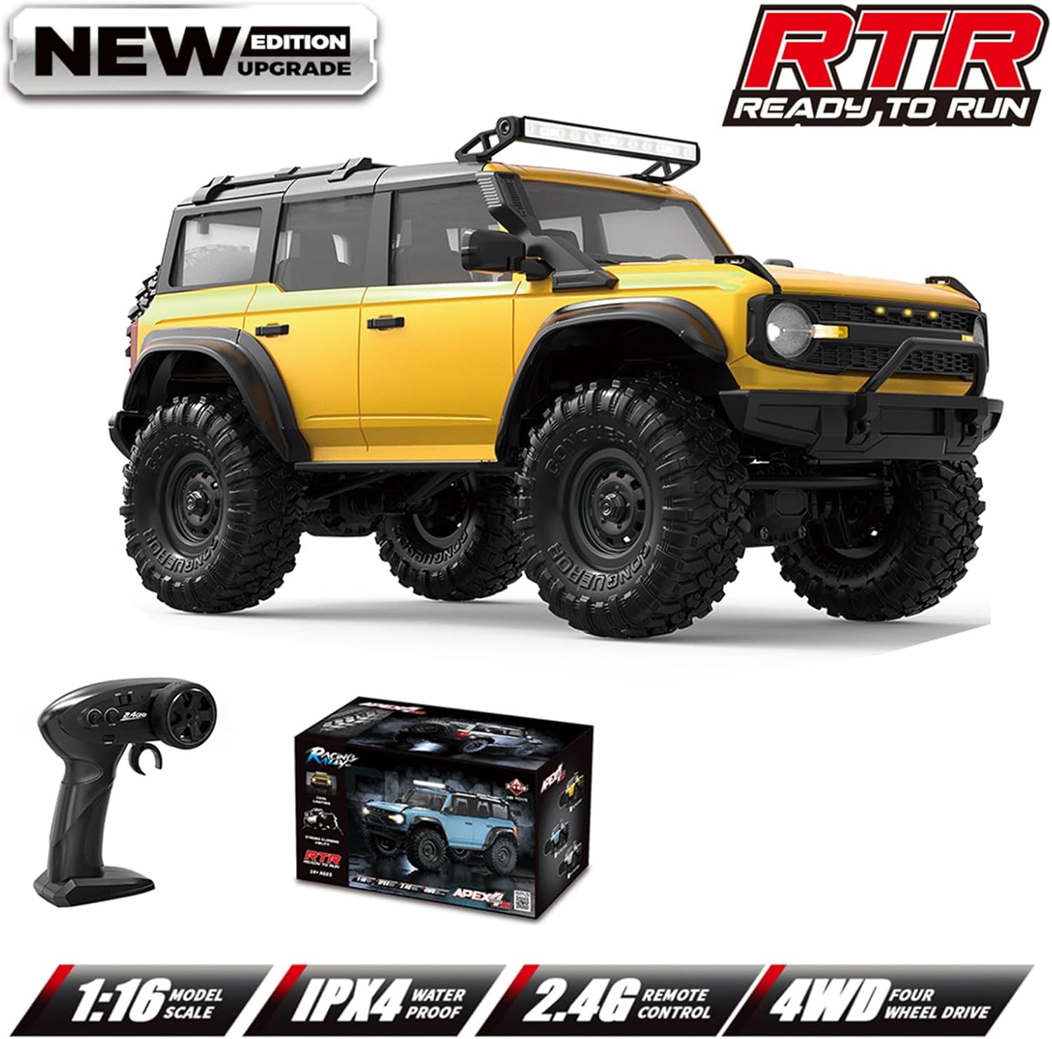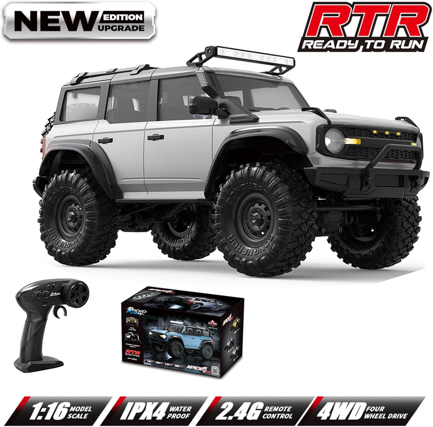 Ideale per appassionati di telecomandi, hobbisti e collezionisti che cercano un veicolo telecomandato con un tocco professionale e competitivo Mastering All Terrain con il telecomando Crawler 1/16, il design 4WD e l'illuminazione a LED per avventure immersive Off Road Questo carrello da arrampicata dettagliato con scala 1/16 contiene un autentico crawler auto styling, struttura in plastica precisa e motore potente che consente di utilizzare sabbia, ghiaia o superfici interne Con un design di controllo efficiente e reattivo, in condizioni di bagnato e superfici ruvide garantisce forti prestazioni Adatto per cortili, spiagge o per la creazione di lezioni di ostacoli in salotti, il Crawler All Terrain vive il controllo remoto in diversi ambienti