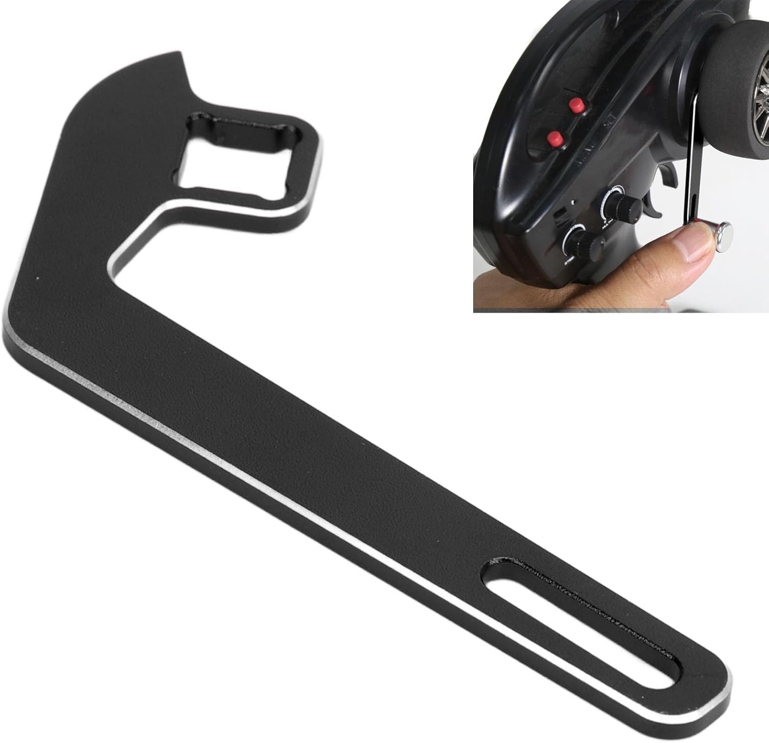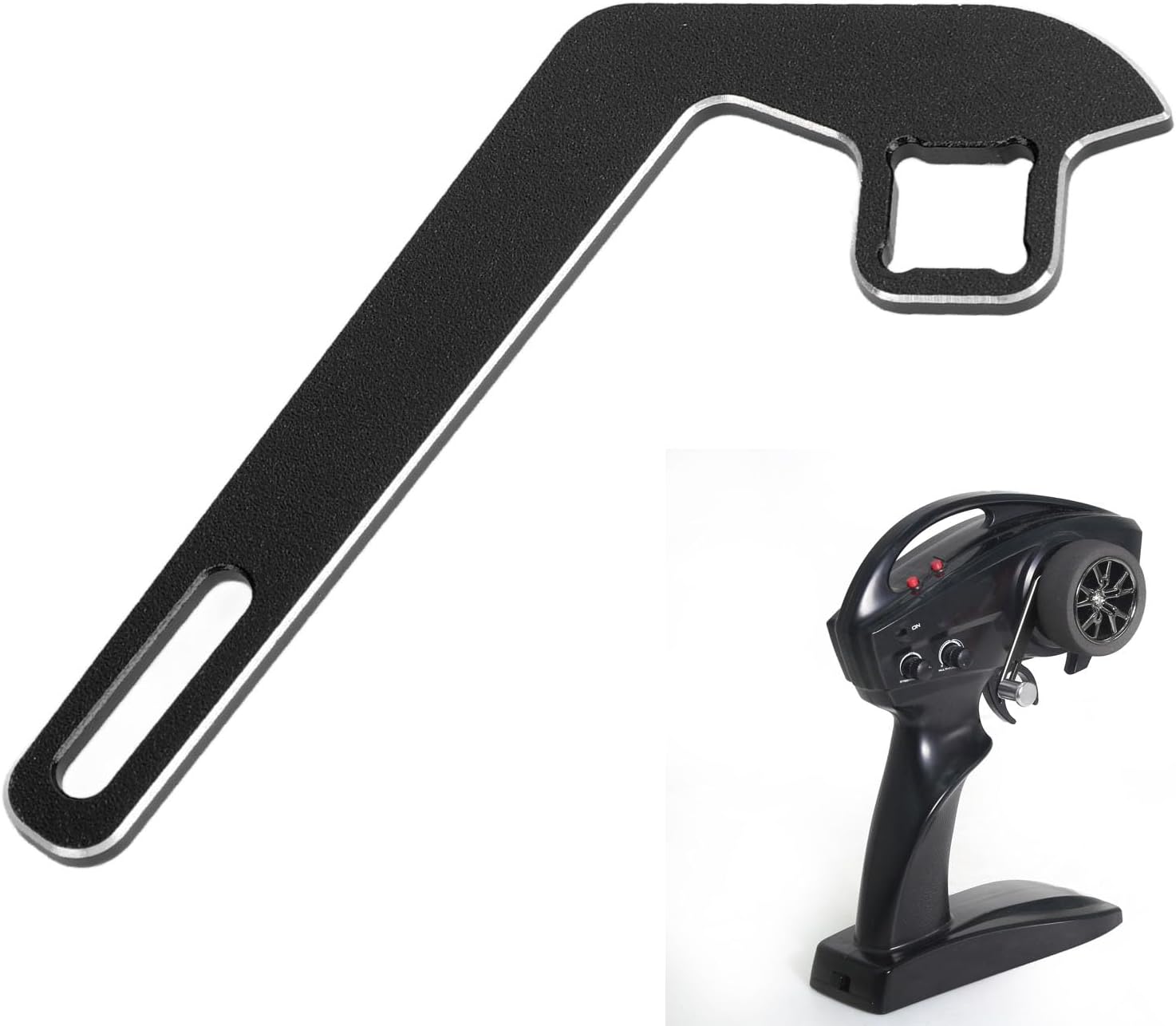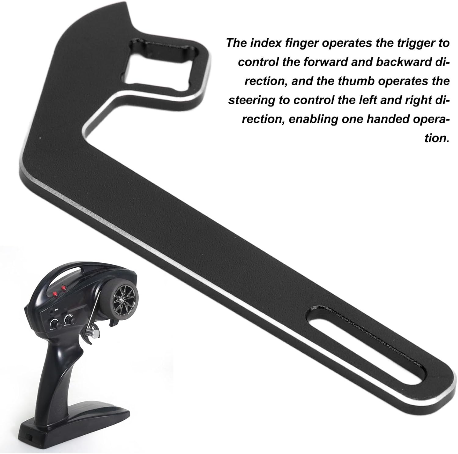[Eccellente materiale in lega di alluminio]: realizzato in lega di alluminio premium, questo kit di adattatore di controllo a una mano è la durata, resistenti all'abrasione e garantisce una lunga durata. [Facile da operare]: Controlla senza sforzo la tua auto RC con solo il dito indice per l'accelerazione e la frenata e il pollice per lo sterzo, consentendo operativo con una sola mano senza soluzione di continuità. [Compatto e leggero]: con il suo design piccolo e leggero, questo volante per trasmettitori RC è altamente portatile e conveniente per l'uso in movimento. [Buona compatibilità]: questo volante del trasmettitore in lega di alluminio è compatibile con una vasta gamma di auto RC, rendendolo una sostituzione adeguata per parti vecchie o danneggiate. [Applicazione ampia]: Adatto per l'uso a casa o all'aperto, questo controller del volante con una mano è ideale per riparare, modificare e aggiornare l'auto RC, fornendo versatilità e comodità.