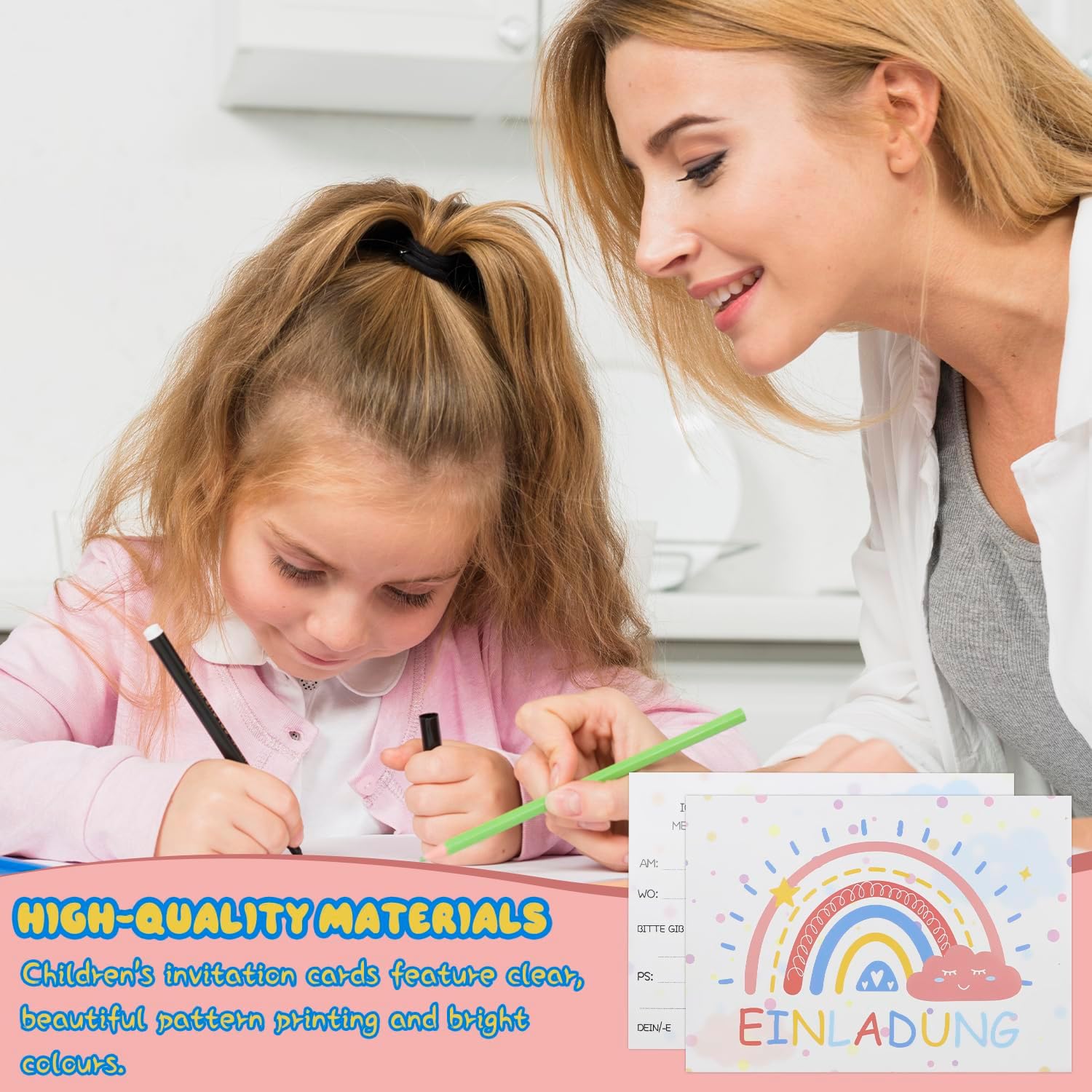 Contenuto della confezione: la confezione contiene 12 biglietti d'invito per compleanno per bambini e 12 buste. Ricche combinazioni per soddisfare tutte le tue esigenze. La dimensione dei nostri biglietti di compleanno è di 15 x 10,8 cm, la dimensione della busta è di 15,5 x 11,5 cm Materiale: il biglietto d'invito per bambini è realizzato in carta, con motivo stampato chiaro e bello e colori vivaci, tutti i biglietti d'invito si adattano alle buste, utilizzate il nostro set di inviti per creare un ricordo unico per il vostro bambino Design unico: un biglietto di invito di compleanno stampato su entrambi i lati con motivo arcobaleno, spazio sufficiente sul retro per tutte le informazioni importanti. Perfetto per feste di compleanno a tema arcobaleno che rendono speciale il vostro invito alla festa Ampia gamma di utilizzi: il nostro set di biglietti d'invito è adatto per diverse feste, compleanni per bambini, feste per ragazze, attività all'aperto e altre feste a tema. Una lettera di invito adatta invita te o tutti gli amici di tuo figlio a condividere questa esperienza unica Servizio post-vendita: se avete domande sul nostro set di biglietti d'invito, non esitate a contattarci e vi risponderemo al più presto possibile. Buon shopping
