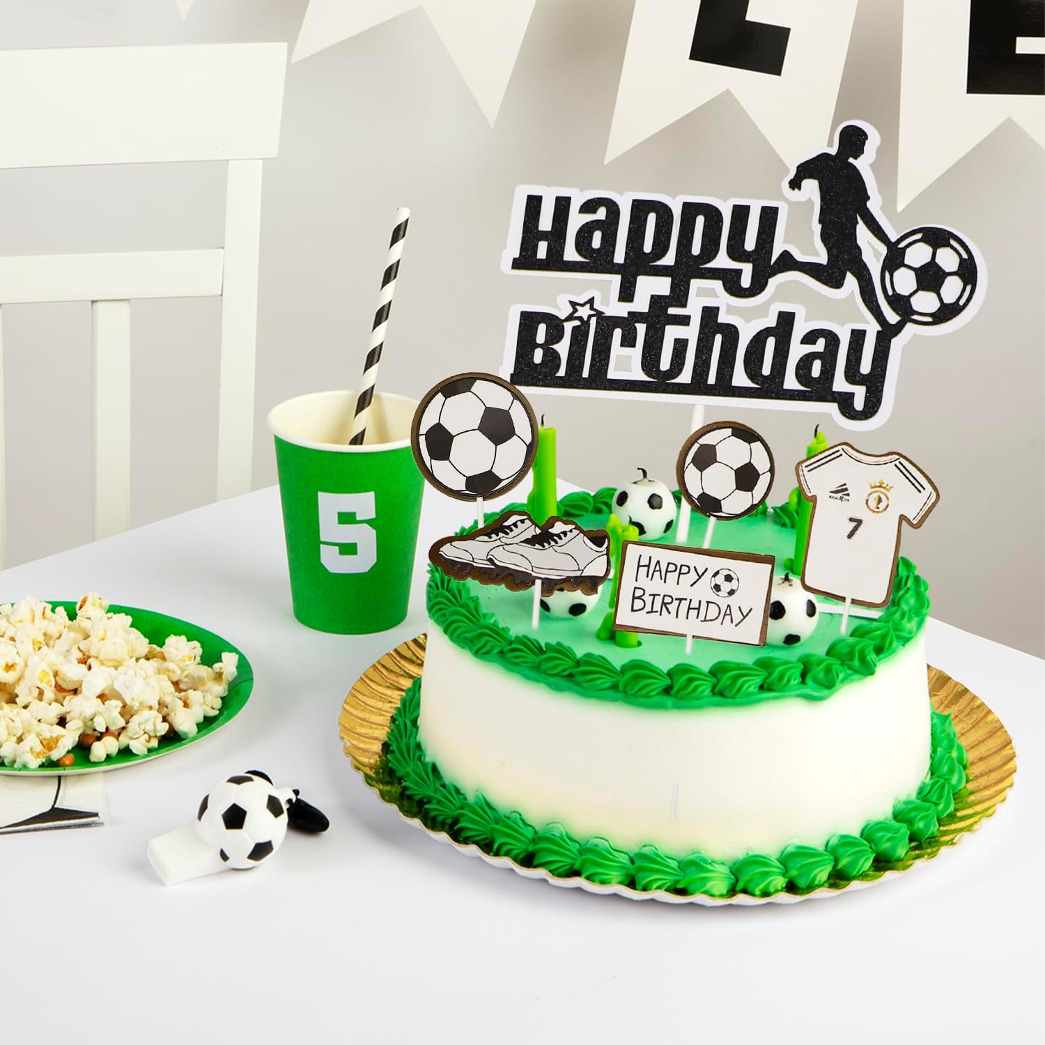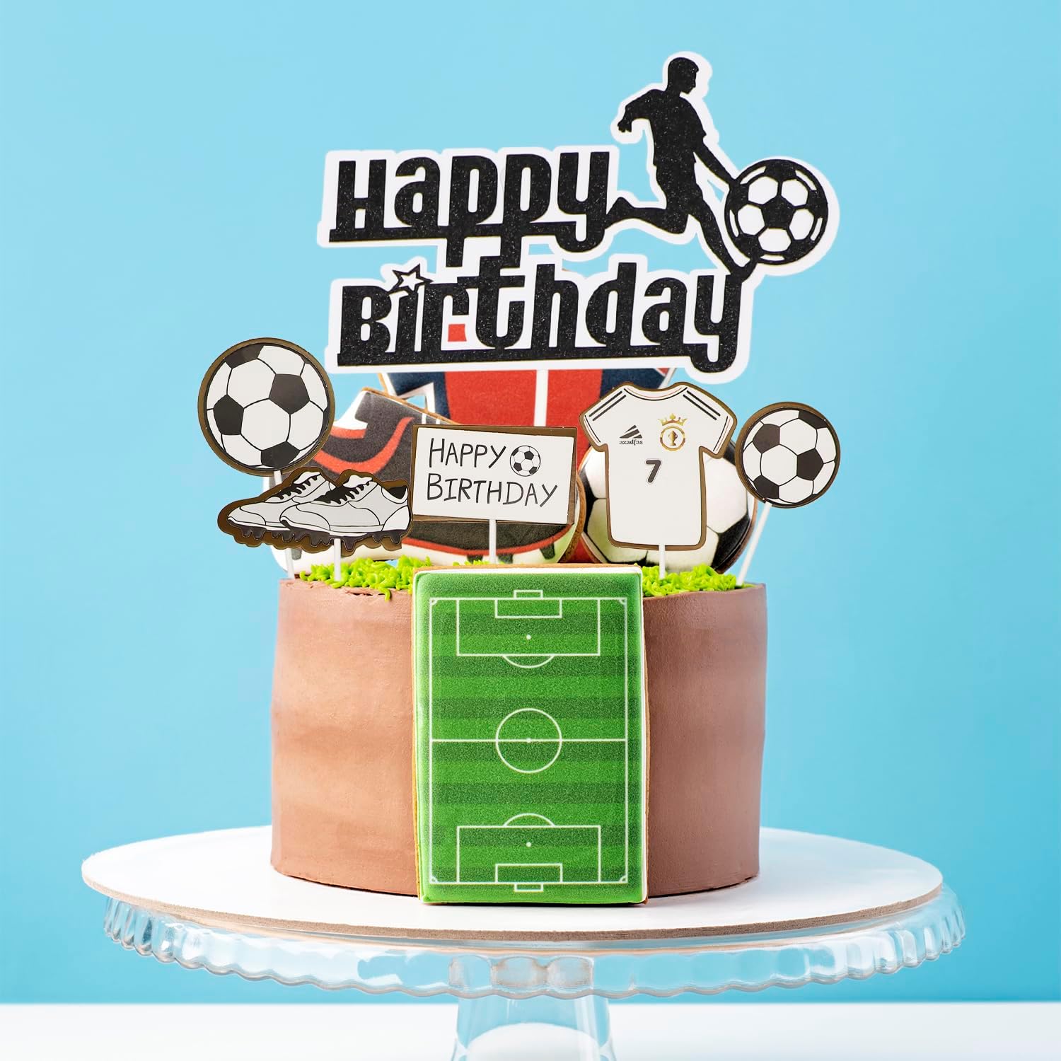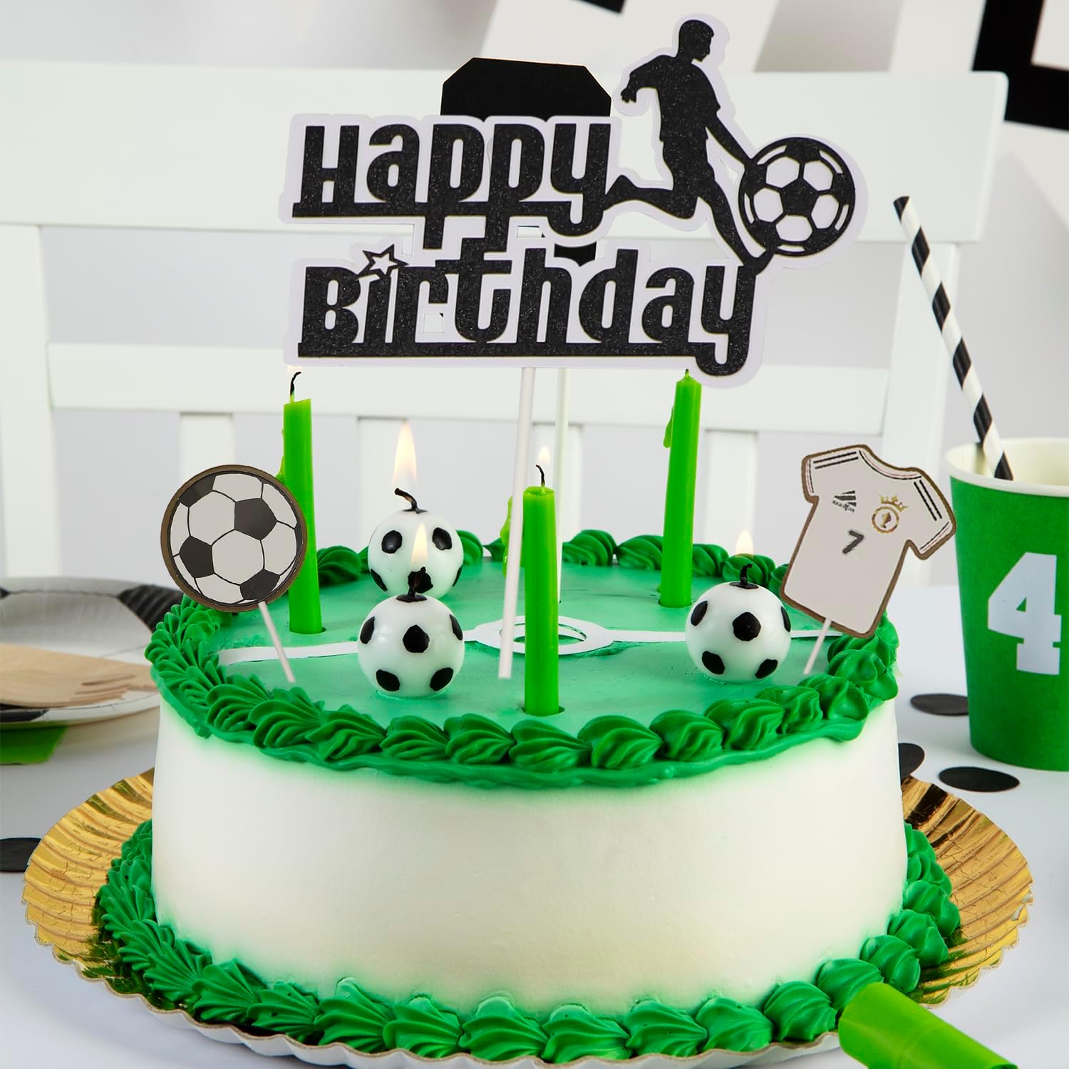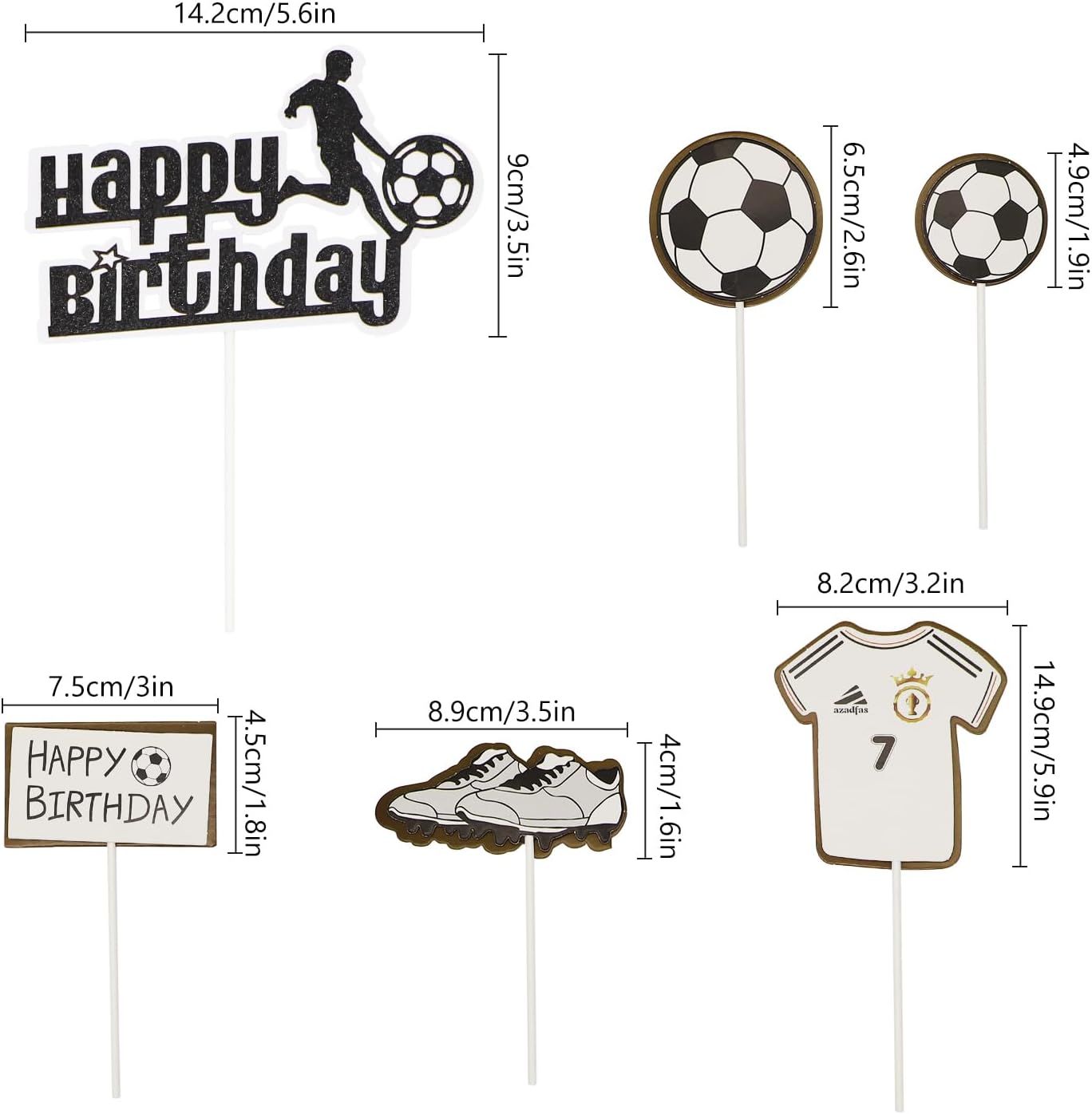 Il pacchetto include: Topper per torta da calcio Il pacchetto include: 6 x Topper per torta da calcio Questi topper per torta da calcio sono preassemblati, puoi usarli direttamente quando li ricevi Materiale selezionato: I nostri toppers per torta sono realizzati in cartone doppio spessore di alta qualità per uso alimentare e cannula bianca, sono atossici, inodori e non facili da rompere, il che li rende sicuri e affidabili Realizza la tua torta: fai da te una torta carina con i tuoi bambini. Queste esclusive decorazioni di compleanno per ragazzi stimoleranno l'immaginazione di tuo figlio e porteranno molto divertimento alla sua festa di compleanno per creare un ricordo indimenticabile Ampia applicazione: Decorazione perfetta per cupcake, biscotti, torte, frutta, brownies, gelati e altro, particolarmente adatta per feste a tema calcio, feste a tema calcio sportivo, baby shower, compleanni di bambini, decorazioni per cupcake Servizio clienti: Se hai domande, non esitare a contattarci via e-mail, vogliamo che tutti i nostri clienti siano felici e soddisfatti, faremo sempre tutto per te nel tuo migliore interesse