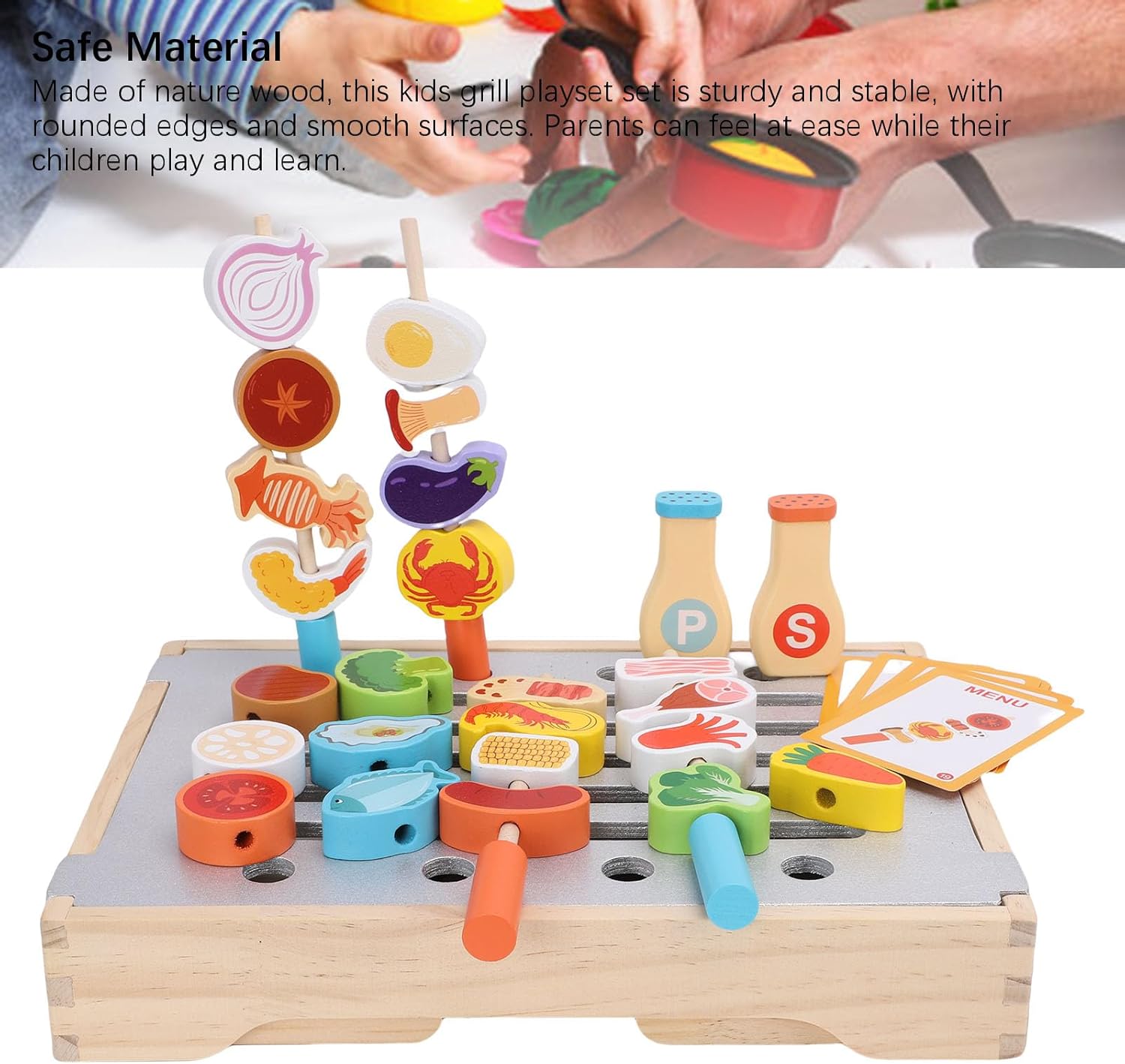 Set da gioco multifunzionale per barbecue in legno: griglia finta interattiva con oltre 20 accessori (manopole/pinze/cibo) per giochi di ruolo realistici, dimensioni 29x22 cm perfette per le mani dei più piccoli Esperienza di finta cucina per lo sviluppo di abilità: sviluppa la coordinazione occhio-mano e le abilità sociali attraverso simulazioni di cucina interna/esterna, ideali per attività di gioco in famiglia Costruzione durevole in legno naturale: il design con bordi arrotondati resiste al gioco dei bambini in età prescolare, le superfici non tossiche garantiscono sessioni fantasiose senza preoccupazioni Gioco portatile dal cortile al soggiorno: la griglia compatta trasforma sandbox/patio/sala giochi in zone cottura interattive, include un design facile da riporre Apprendimento precoce delle materie STEM attraverso il gioco: esercizi colorati di smistamento del cibo e manipolazione degli strumenti favoriscono il pensiero logico negli chef di età superiore ai 3 anni