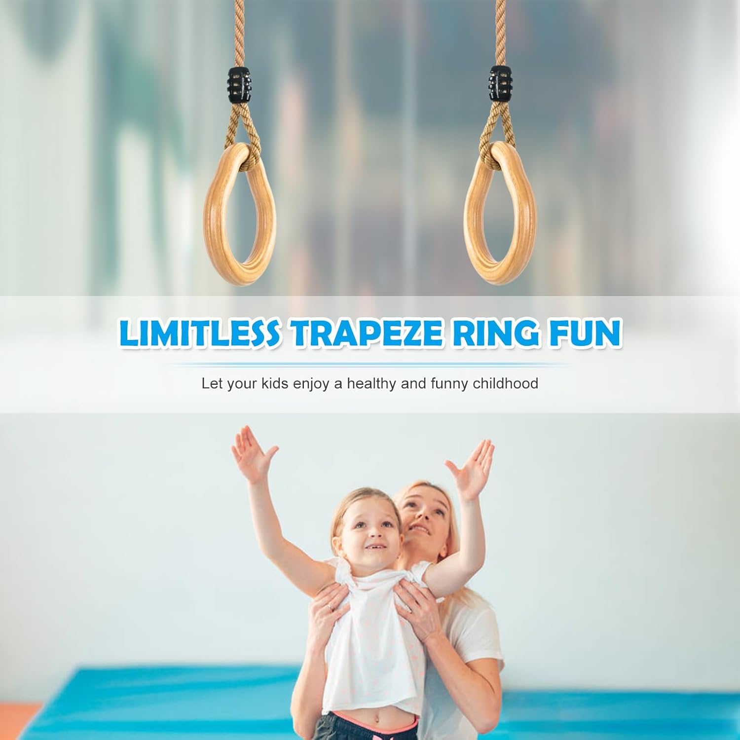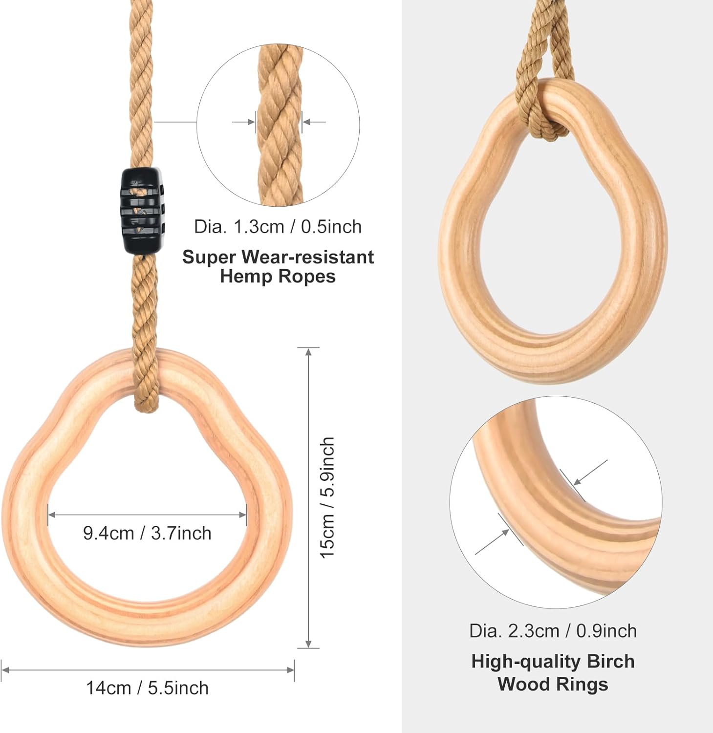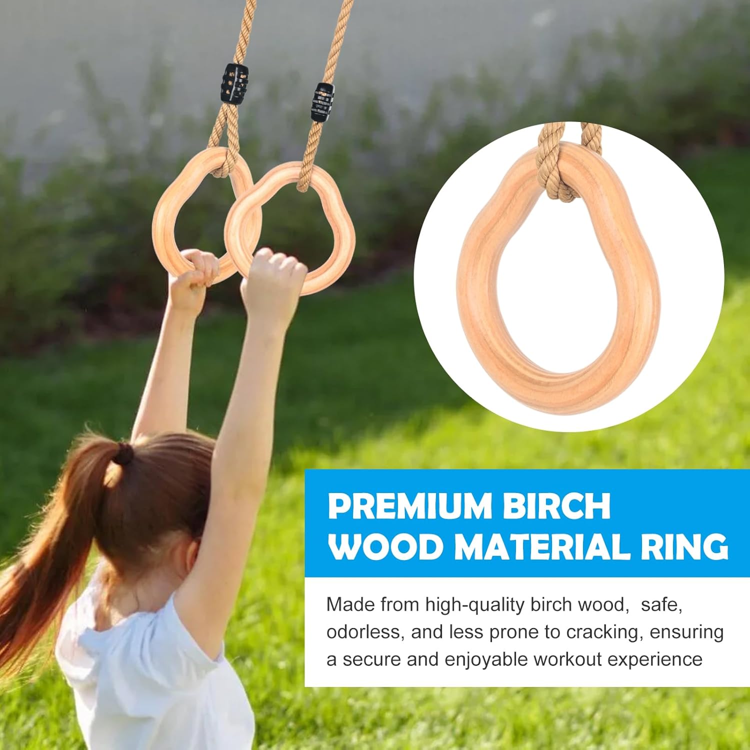 【Altalena a trapezio con anelli per ginnastica】 Il legno duro dell'altalena a trapezio con anelli è realizzato in pino massiccio. Anelli da ginnastica diametro 3,4 cm, design per bambini dai 3 anni in su, in legno massiccio che può sostenere fino a 100 kg. Combinazione di altalena a trapezio per esterni Lyndwin per uso interno ed esterno 【Corda di canapa morbida e regolabile】 La corda ad anello, altalena a trapezio per struttura da arrampicata realizzata in comoda corda di canapa, uso morbido e durevole per una lunga durata, è regolabile in lunghezza da 94 cm a 140 cm, il diametro della corda è di 1,3 cm, migliore sensazione della mano per i bambini Tiralo fuori e appendilo per ore all'aperto, trasformando qualsiasi giardino in un parco giochi sicuro. Lyndwin inventa sempre la tua barra trapezio da gioco all'aperto per aiutare te e i tuoi bambini a costruire ricordi che durino tutta la vita.,Installazione rapida: puoi appendere l'anello da ginnastica in legno su un robusto ramo di un albero o su un telaio nel tuo garage. Quindi lega la corda per appendere il ramo dell'albero. Viene fornito con due anelli di connessione facili da montare e smontare. Che si tratti del cortile, del giardino, del parco o della casa, l'area giochi dei tuoi bambini. Lascia che i tuoi bambini si godano l'infanzia con tutta la famiglia.,Attrezzatura per arrampicata di buona qualità Altalene: l'altalena a trapezio Lyndwin con anelli ha una superficie liscia e senza sbavature, facile da impugnare. I bambini devono essere accompagnati da un adulto durante il gioco. Si prega di non esporre l'altalena a trapezio alla luce solare diretta o all'umidità per un periodo di tempo prolungato
