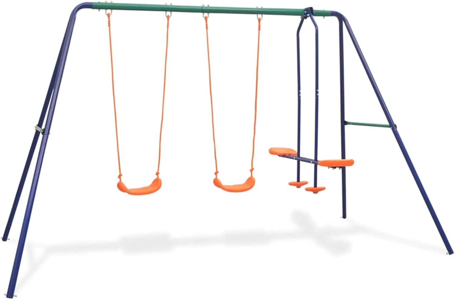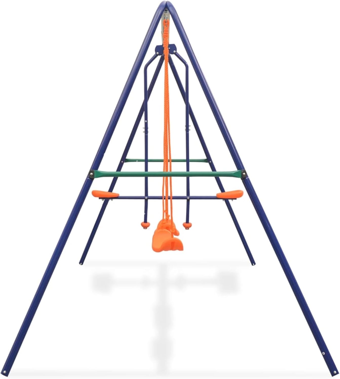Questa altalena è costituita da un robusto telaio ad A in metallo con 2 sedili da altalena individuali e un sedile da altalena tandem. Giocare su questa altalena diventerà l'attività all'aperto preferita dei tuoi bambini! Fino a 4 bambini possono giocare contemporaneamente godendosi la brezza fresca o la giornata di sole. L'altalena tandem è adatta per due bambini contemporaneamente. Giocare su questa altalena diventerà l'attività all'aperto preferita dei tuoi bambini! Fino a 4 bambini possono giocare contemporaneamente godendosi la brezza fresca o una giornata di sole. Tutte le altalene sono fissate saldamente alla robusta traversa con telaio ad A con robuste staffe, bulloni, ganci e corde