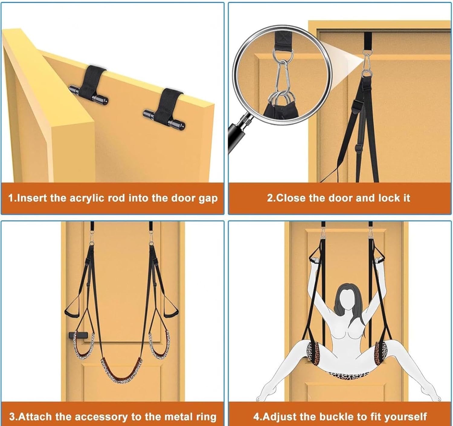 3,615 / 5,000 2. Agganciare le due cinghie di fissaggio al telaio della porta e chiudere la porta. 3. Facile smontaggio e montaggio, regolazione rapida. 4. In caso di domande, non esitate a contattarci. 4. Se hai domande durante l'uso, non esitare a contattarci.